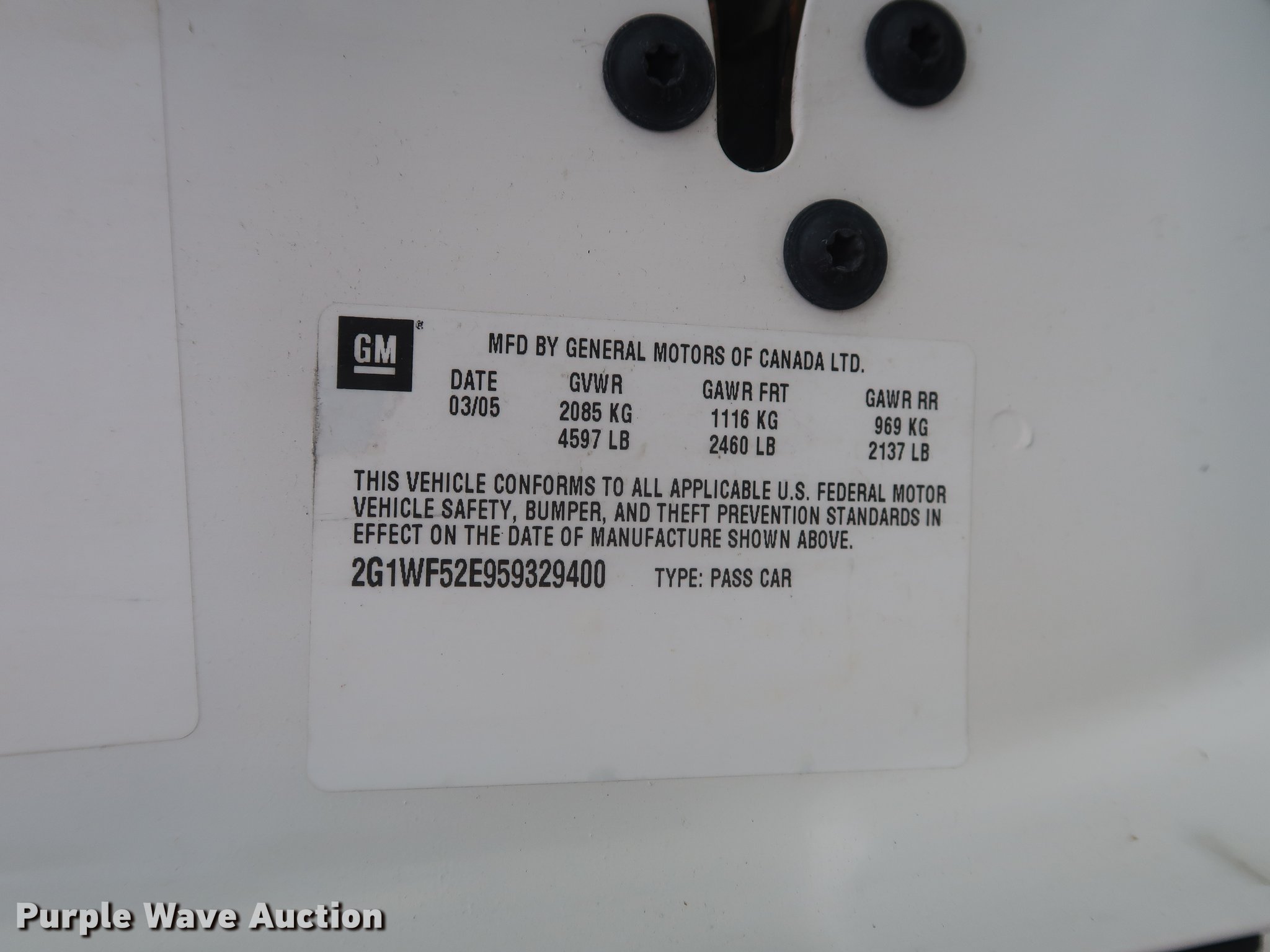 Purple Wave is selling a used Passenger Vehicle in Kansas. This item is a 2005 Chevrolet Impala with the following: 149,541 miles on odometer, 3.4L V6 OHV 12V gas engine, Automatic transmission, AC and heat, Tilt, Cruise, AM/FM, Power windows, locks, and mirrors, Cloth interior, 225/60R16 tires, Unit# 52