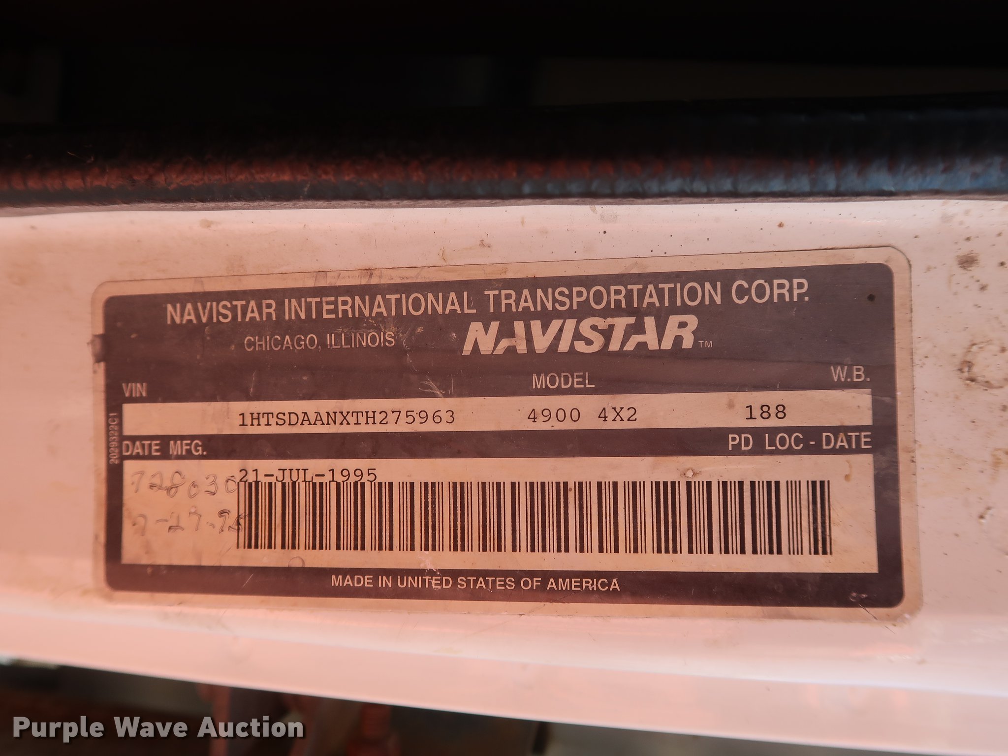 Purple Wave is selling a used Service Truck in Kansas. This item is a 1996 International 4900 service truck with the following: 130,131 miles on odometer, 11,961 hours on meter, International DT466 7.6L L6 turbo diesel engine, Allison automatic transmission, Heat, AM/FM/CD player, PTO, Service bed, Generator, Air compressor, Hydraulic power unit, 787 hours on meter,, Air brakes, Spring suspension, 295/75R22.5 tires, Unit# 546