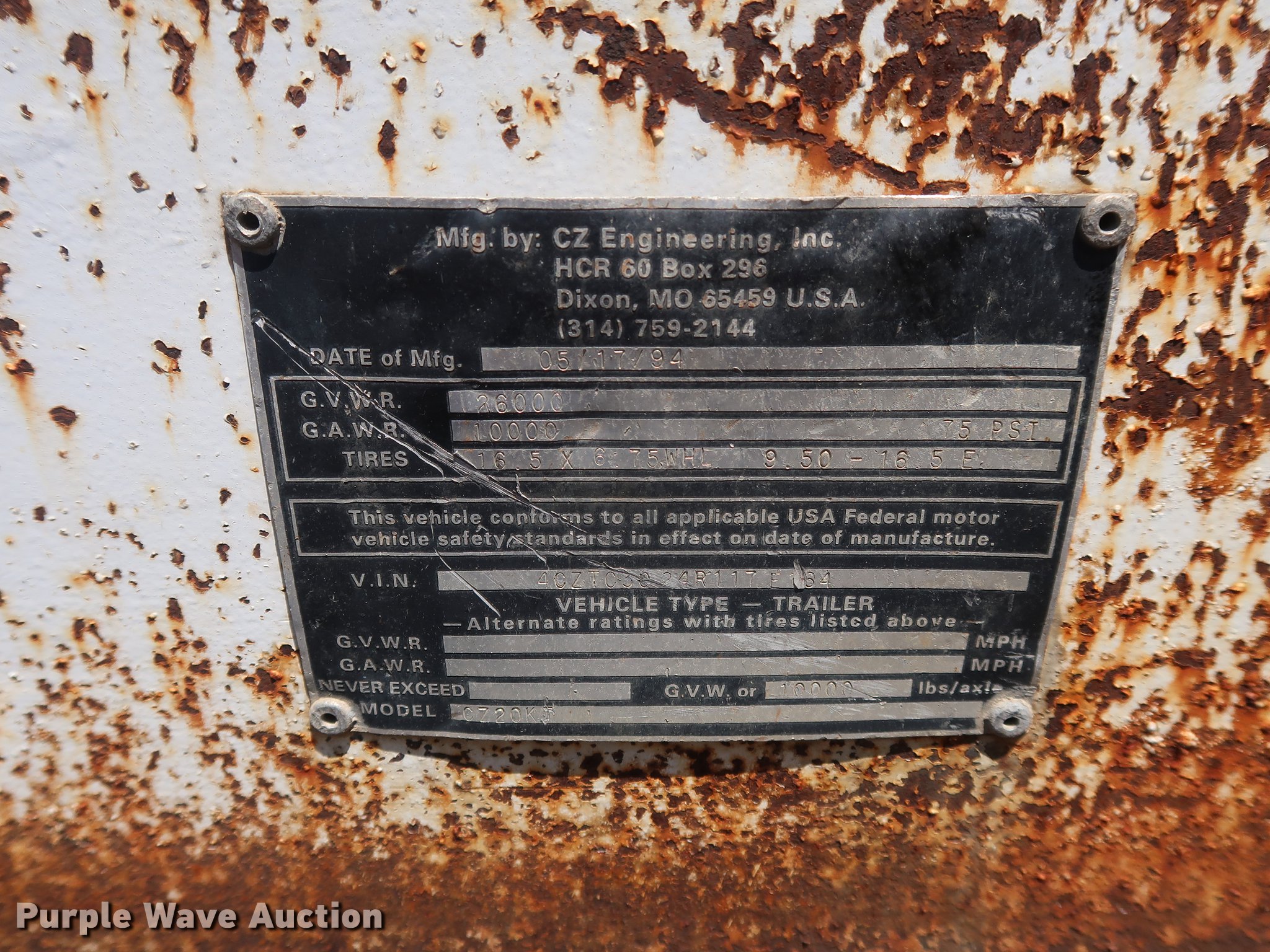 Take a look at this used 1994 CZ Engineering CZ20KT equipment trailer being sold on August 21st, 2018 in the SOLD! August 21 Government Auction made by CZ Engineering. Take a look at all of the item information below or take a look at similar auctions for Trailers.