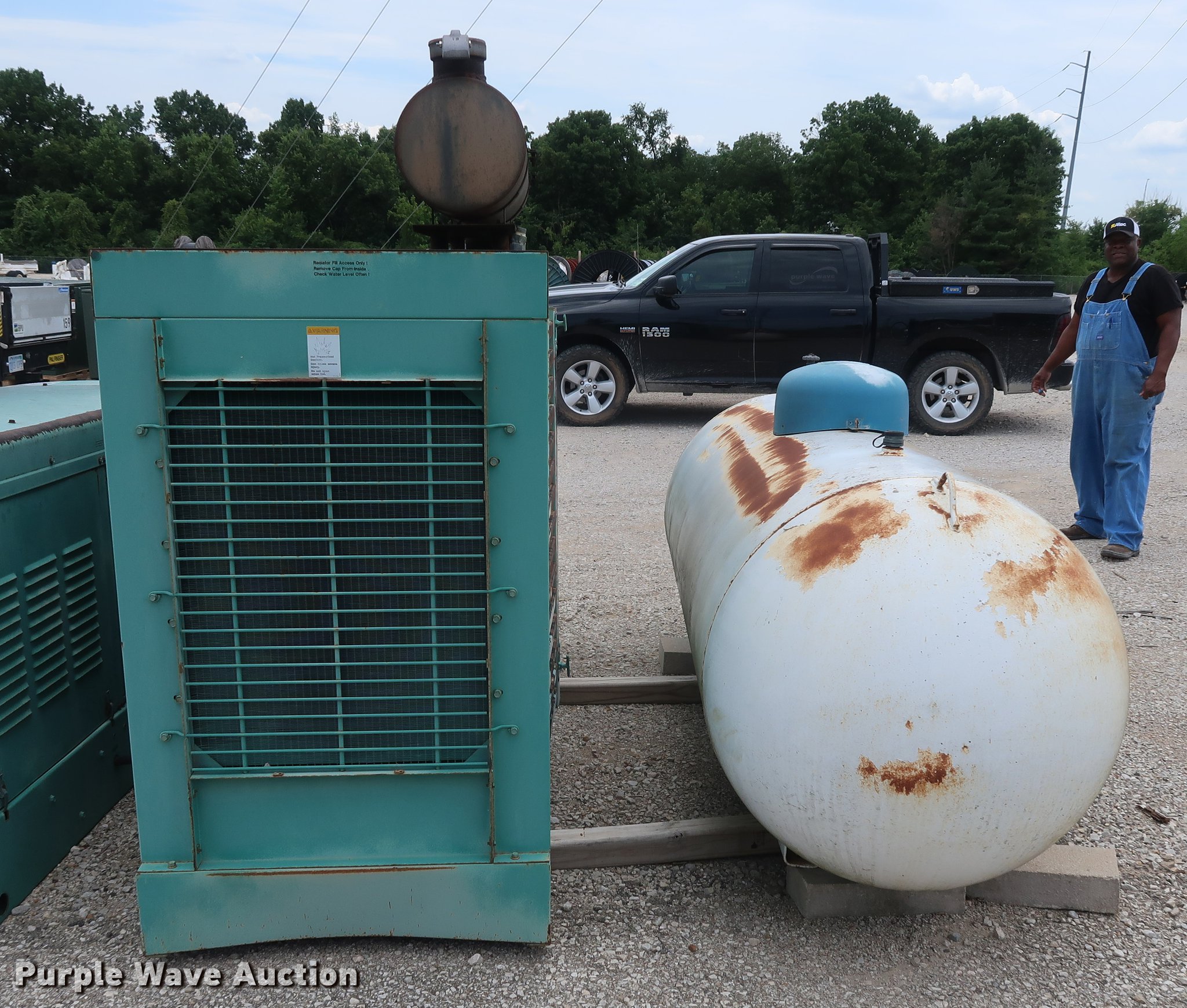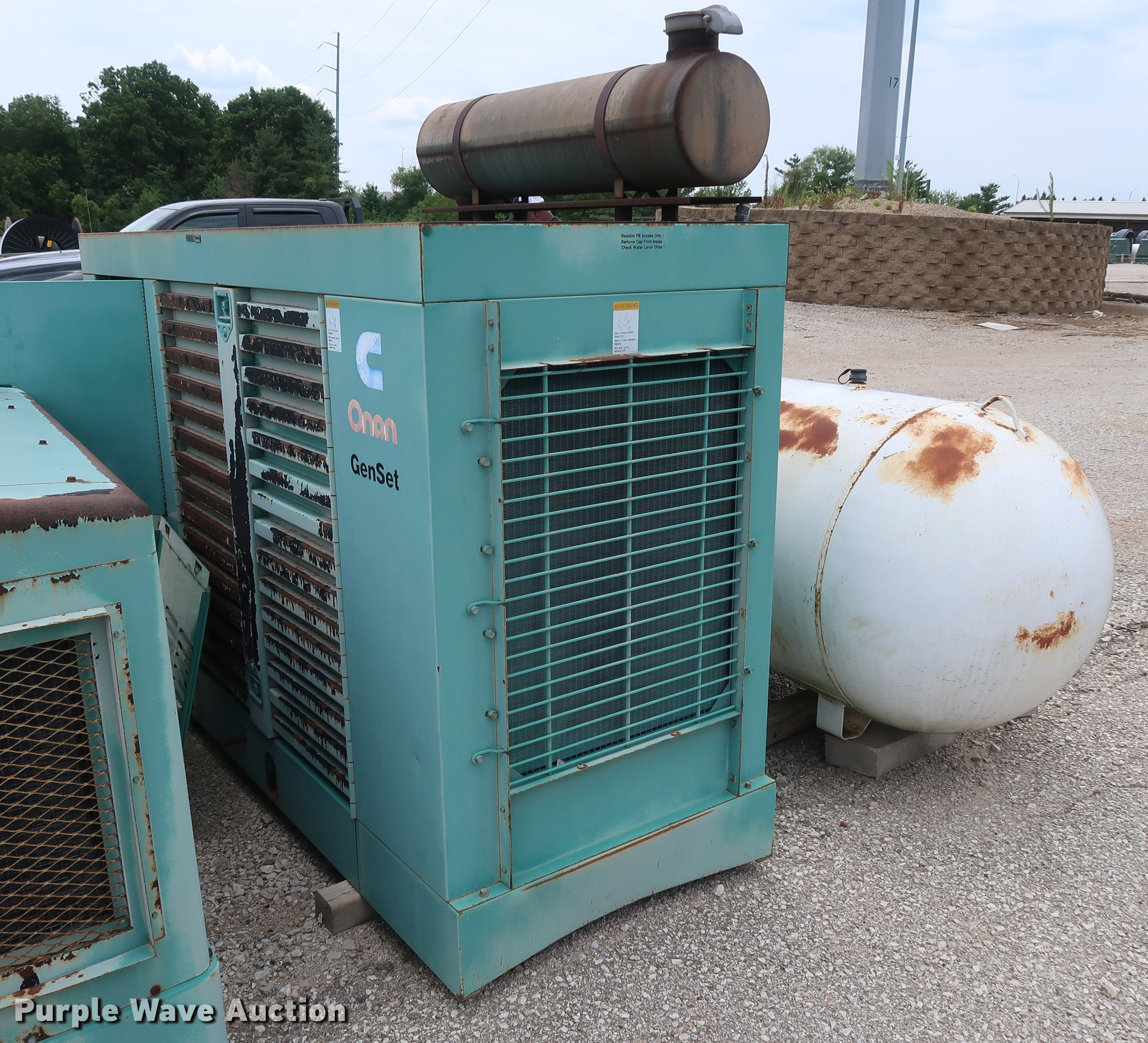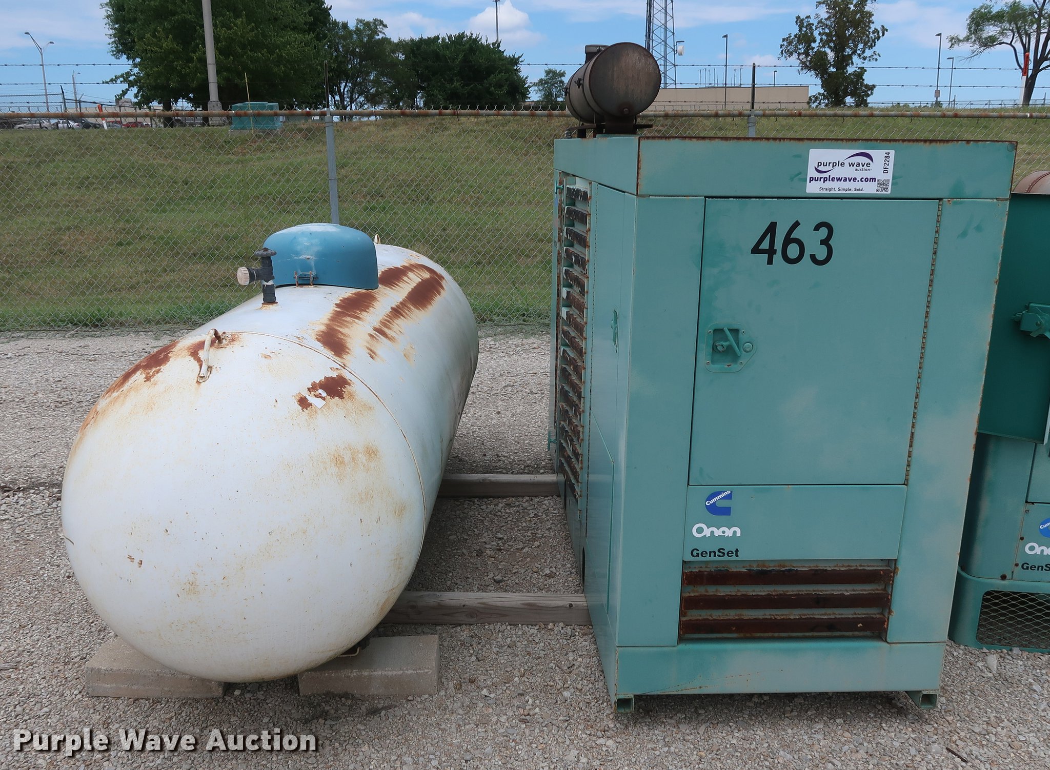 Purple Wave is selling a used Generator Set in Kansas. This item is a Onan 75ENAD generator with the following: 115 hours on meter, Eight cylinder propane engine, Propane tank, Unknown operating condition, Serial H950585044, Unit# 463