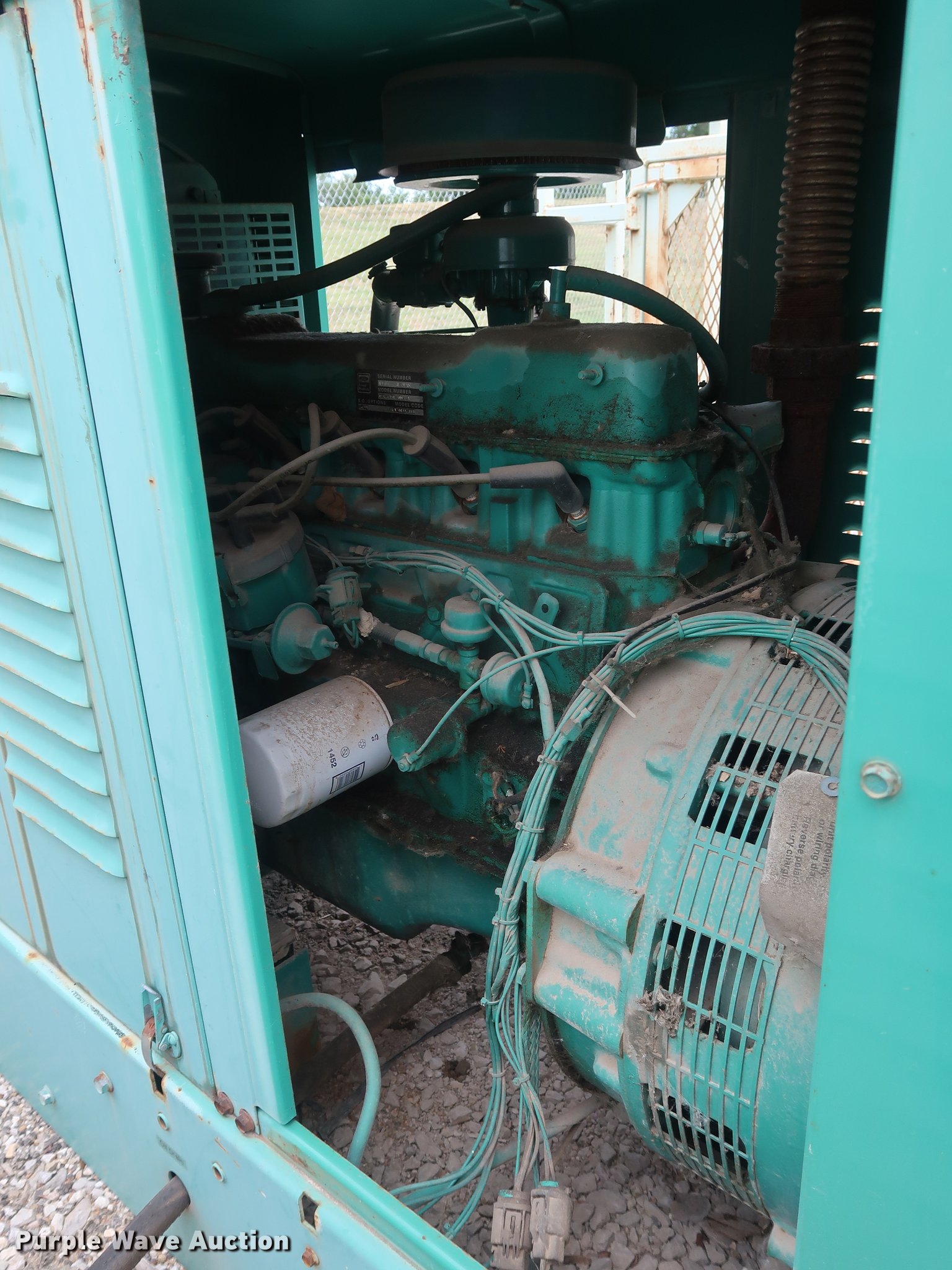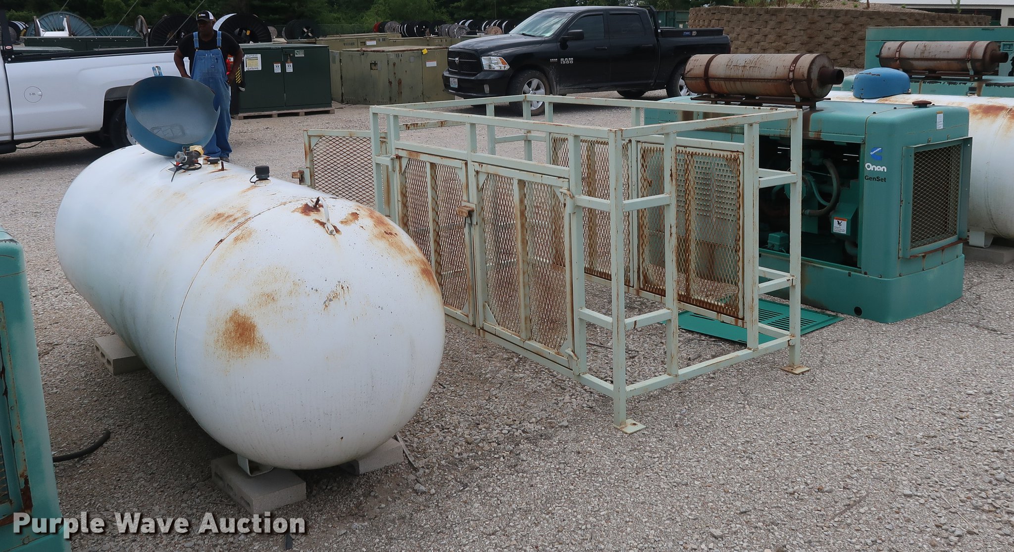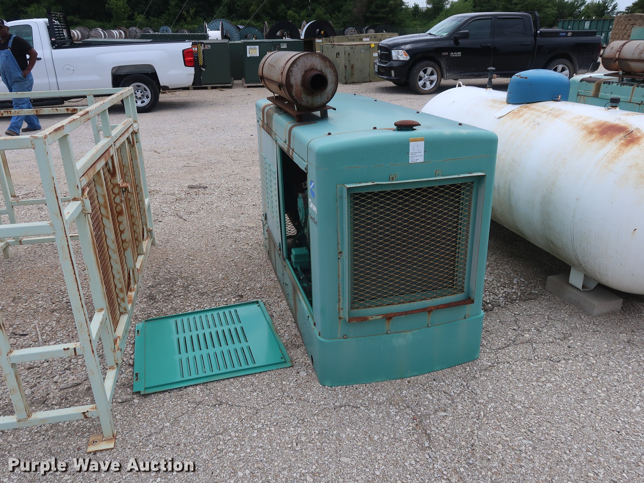 Purple Wave is selling a used Generator Set in Kansas. This item is a Onan 45EM generator with the following: 889 hours on meter, Six cylinder propane engine, Propane tank, Steel enclosure, Unknown operating condition, Serial H950585108