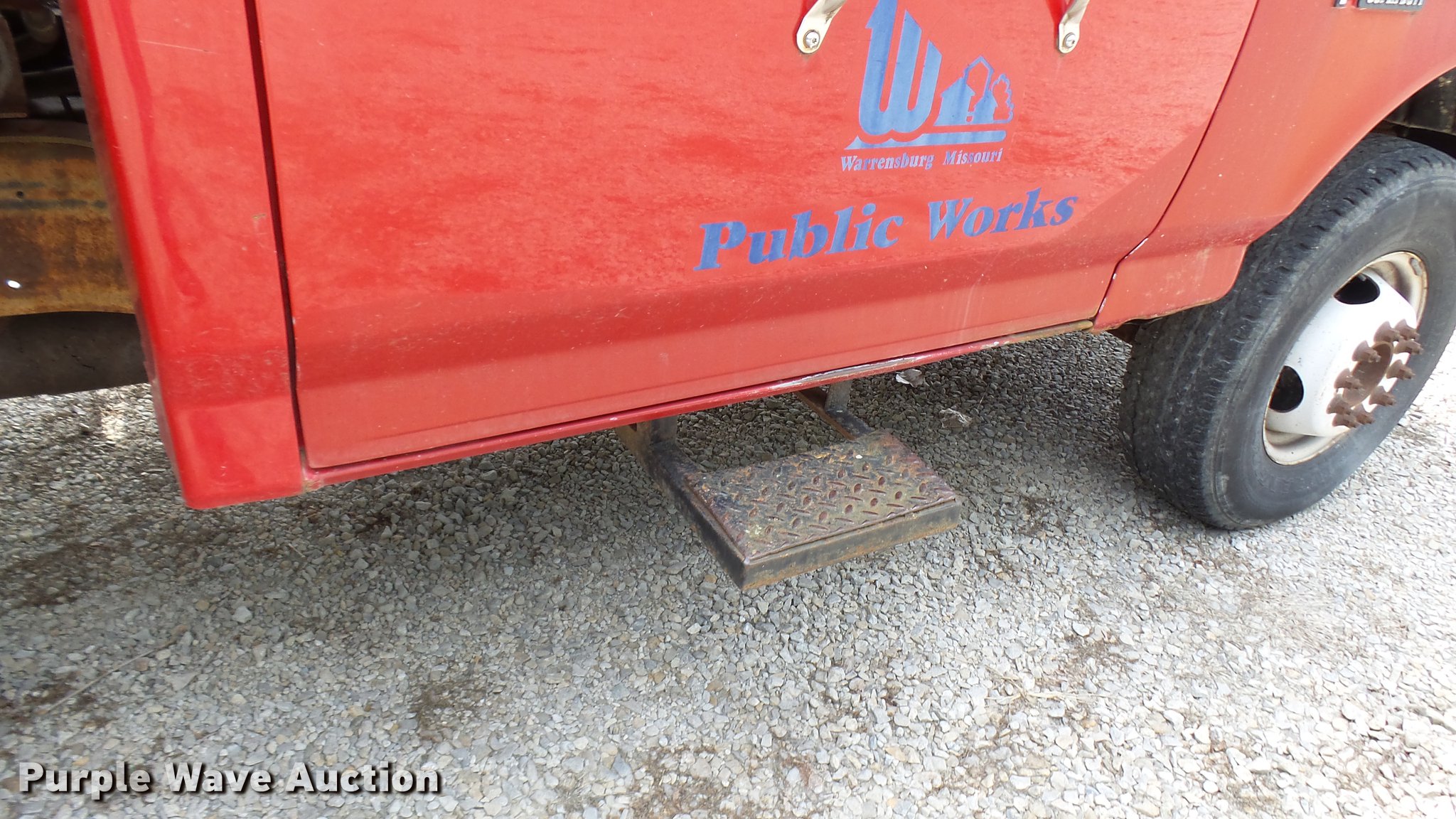 1996 Ford F450 Super Duty dump truck. 7.5L V8 gas engine, Five speed manual transmission, Single axle, Heat, AM/FM, Heil YDB2 steel dump bed 8'L x 76"W, Single ram hoist, Manual end gate, Set up for Western snow plow In-cab controls, Plow not inclueed, Dual fuel tanks, Trailer wiring, Spring suspension, Hydraulic brakes, 235/85R16 tires, GVWR 16,000 lbs, FAWR 5,000 lbs, RAWR 11,000 lbs, Unit will not start, Rodent damage to wiring. Missouri title. 1FDLF47G7TEA49947. City of Warrensburg. 102 S Holden St. Warrensburg, MO 64019