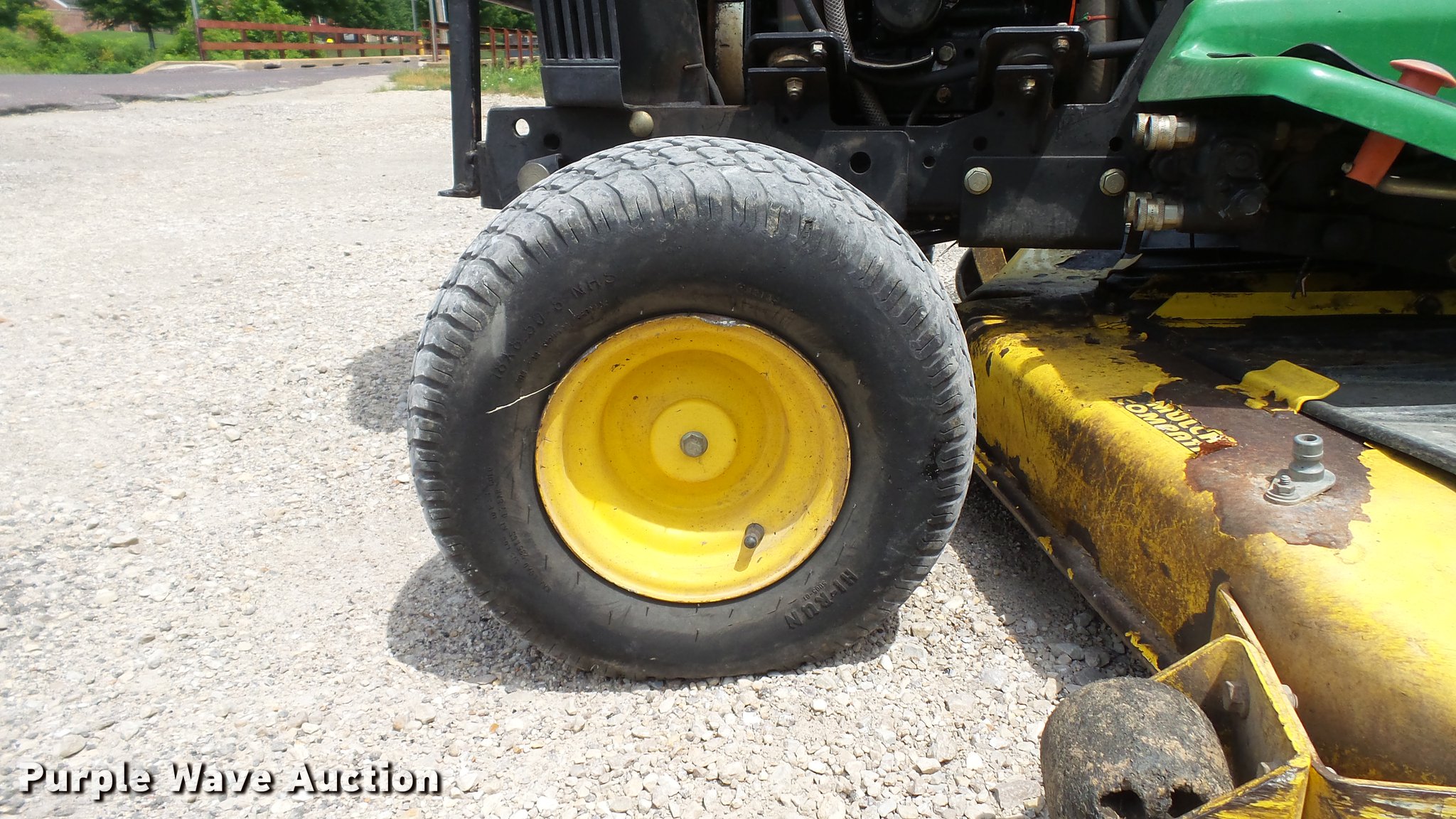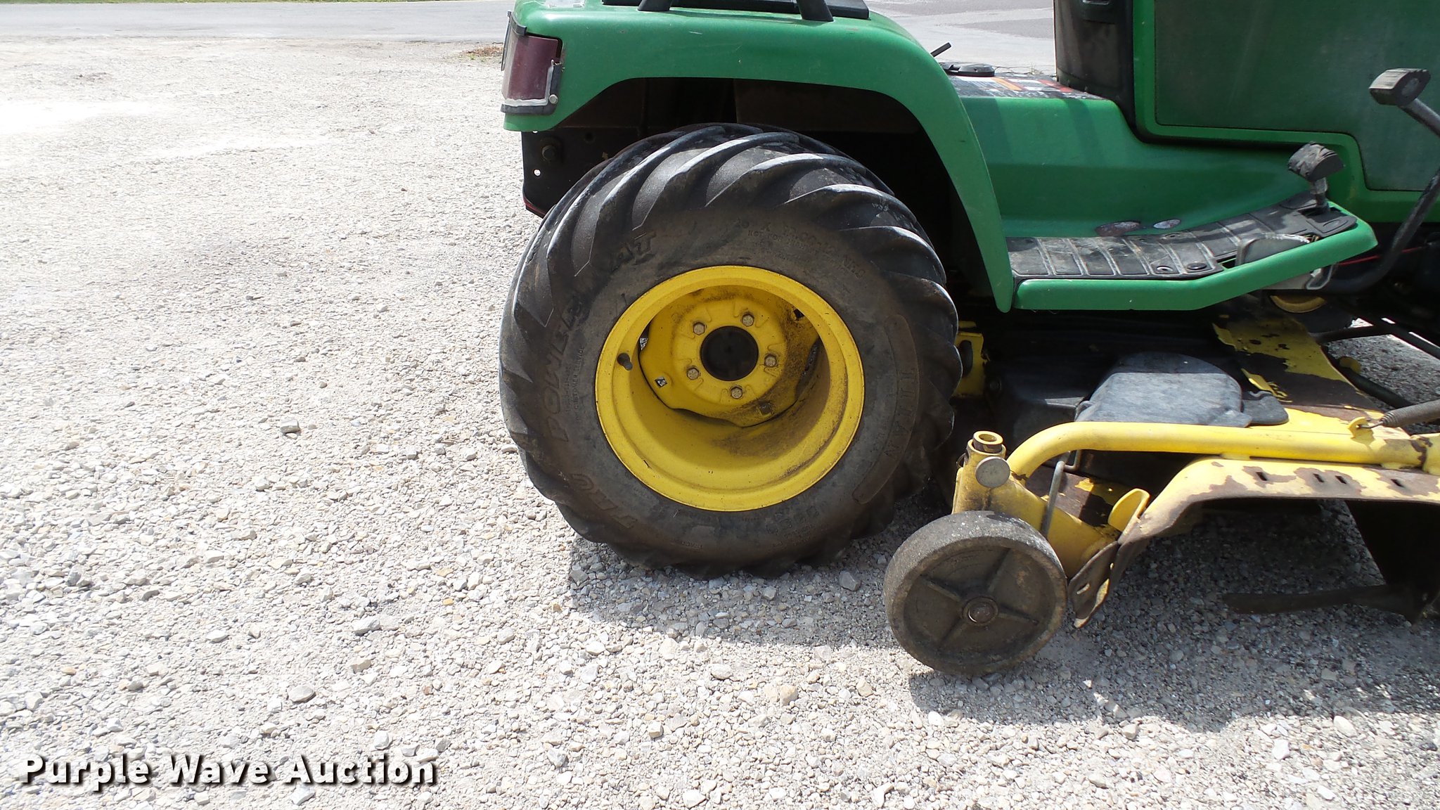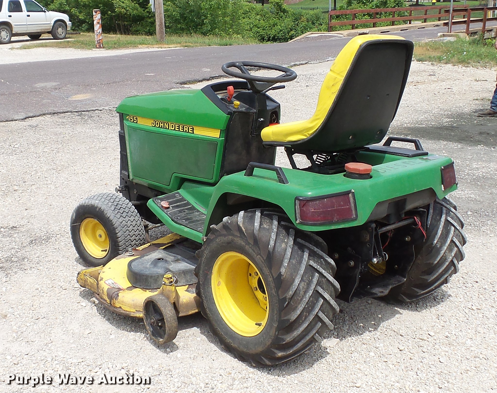 Purple Wave is selling a used Commercial Turf Mower in Missouri. This item is a 1999 John Deere 455 lawn mower with the following: 2,773 hours on meter, 60"W cutting capacity, Yanmar 3TNA72UJ3 three cylinder diesel engine, Hydrostatic transmission, Differential lock, Front hydraulic remote sets, Rear hydraulic remote sets, 26 x 12.00-12 front tires, 18 x 8.50-8 rear tires, Serial M00455C072662