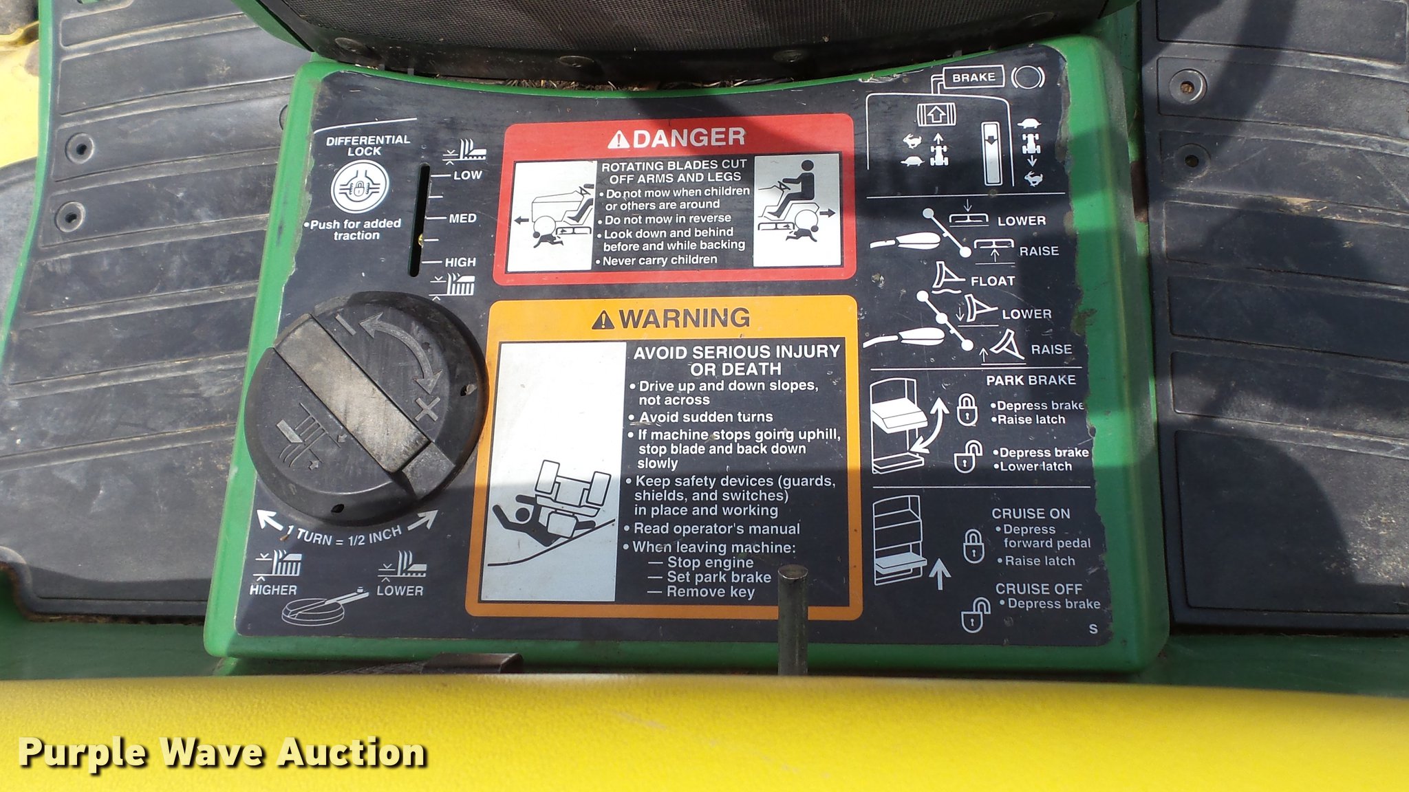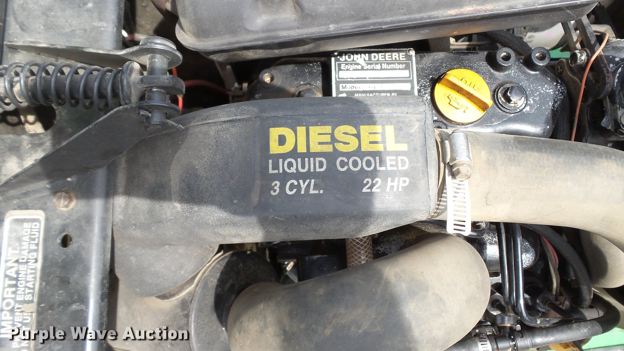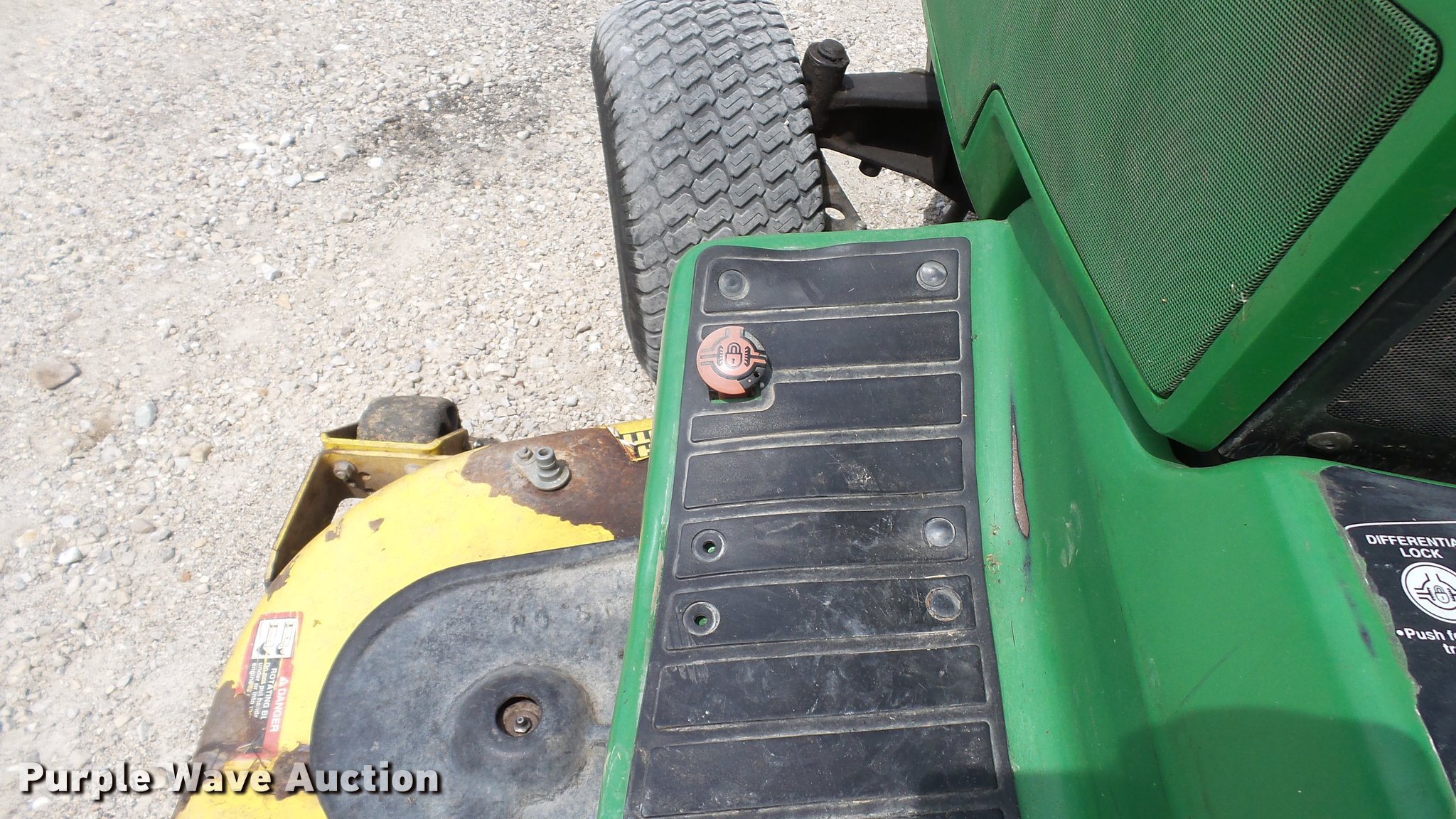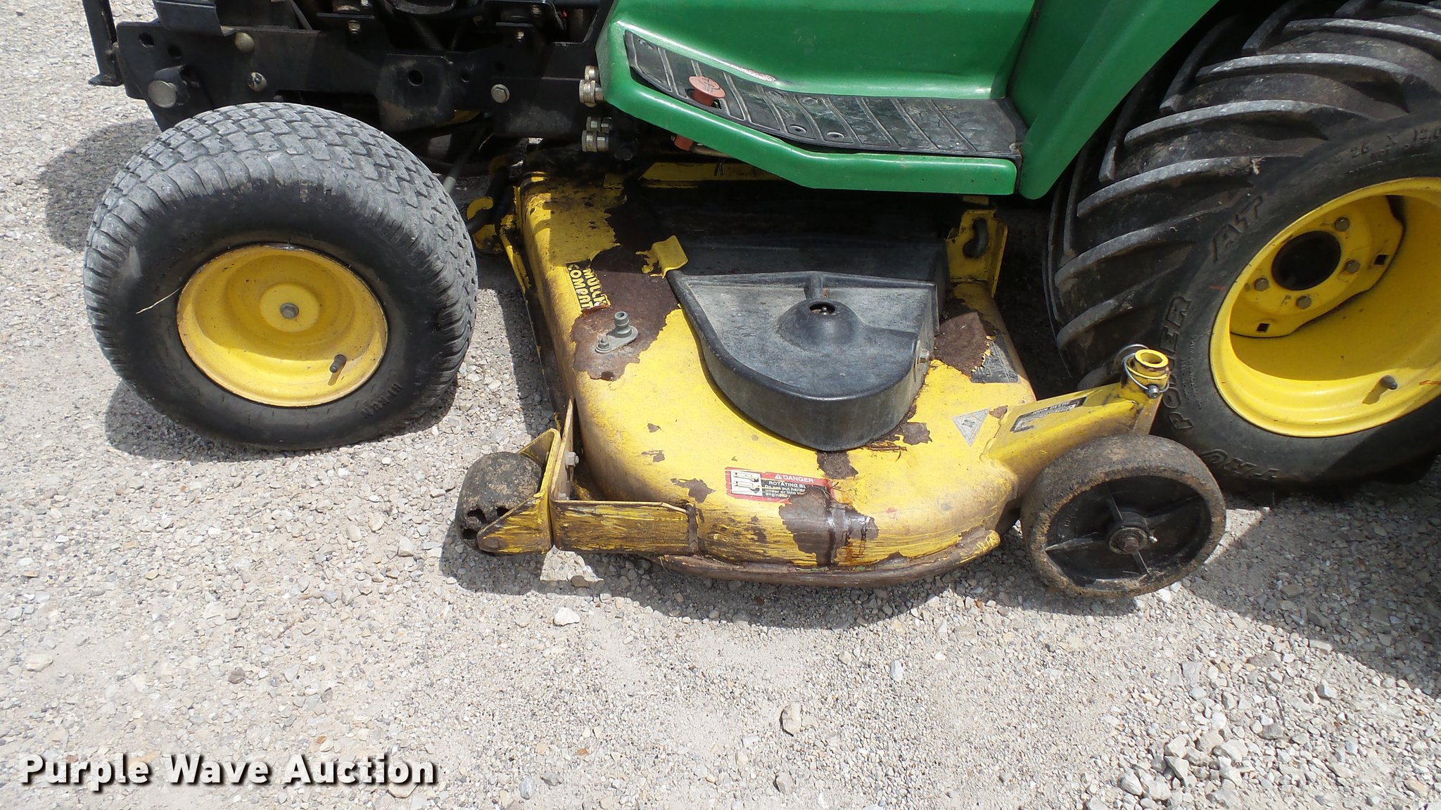 Purple Wave is selling a used Commercial Turf Mower in Missouri. This item is a 1999 John Deere 455 lawn mower with the following: 2,773 hours on meter, 60"W cutting capacity, Yanmar 3TNA72UJ3 three cylinder diesel engine, Hydrostatic transmission, Differential lock, Front hydraulic remote sets, Rear hydraulic remote sets, 26 x 12.00-12 front tires, 18 x 8.50-8 rear tires, Serial M00455C072662
