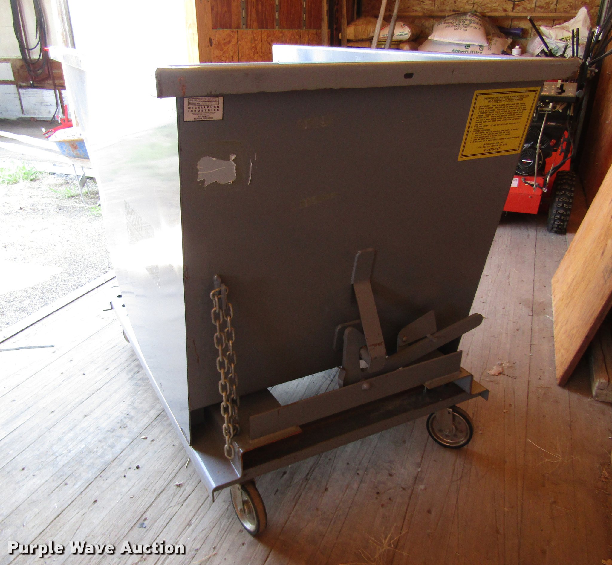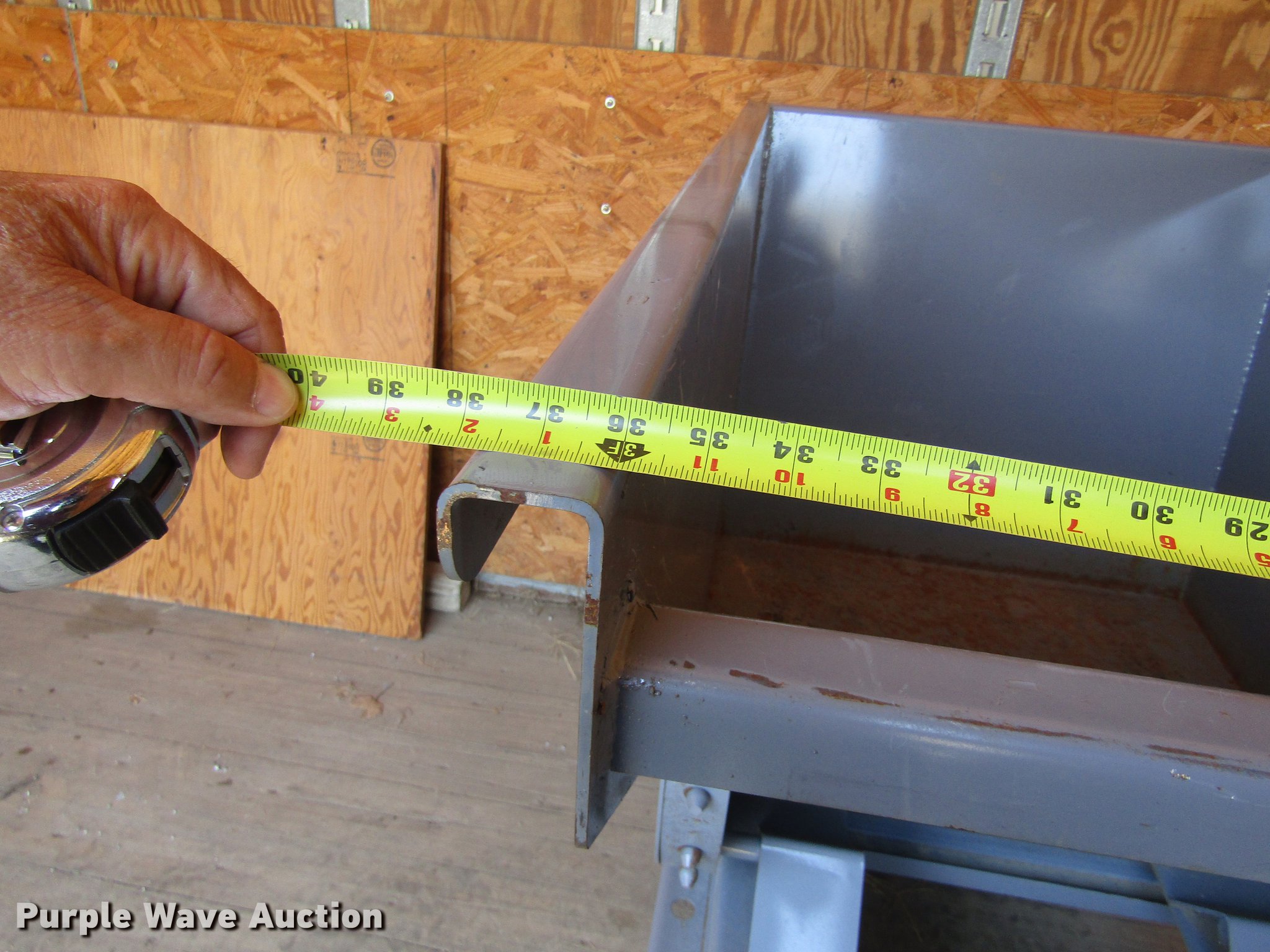 2015 Wright 10077 self-dumping hopper. 3' x 5' x 32" hopper, Pallet fork receiver, Casters, Serial 77-50856. KSU Polytechnic Facilities - Salina. 1832 Burchinal Rd. Salina, KS 67401