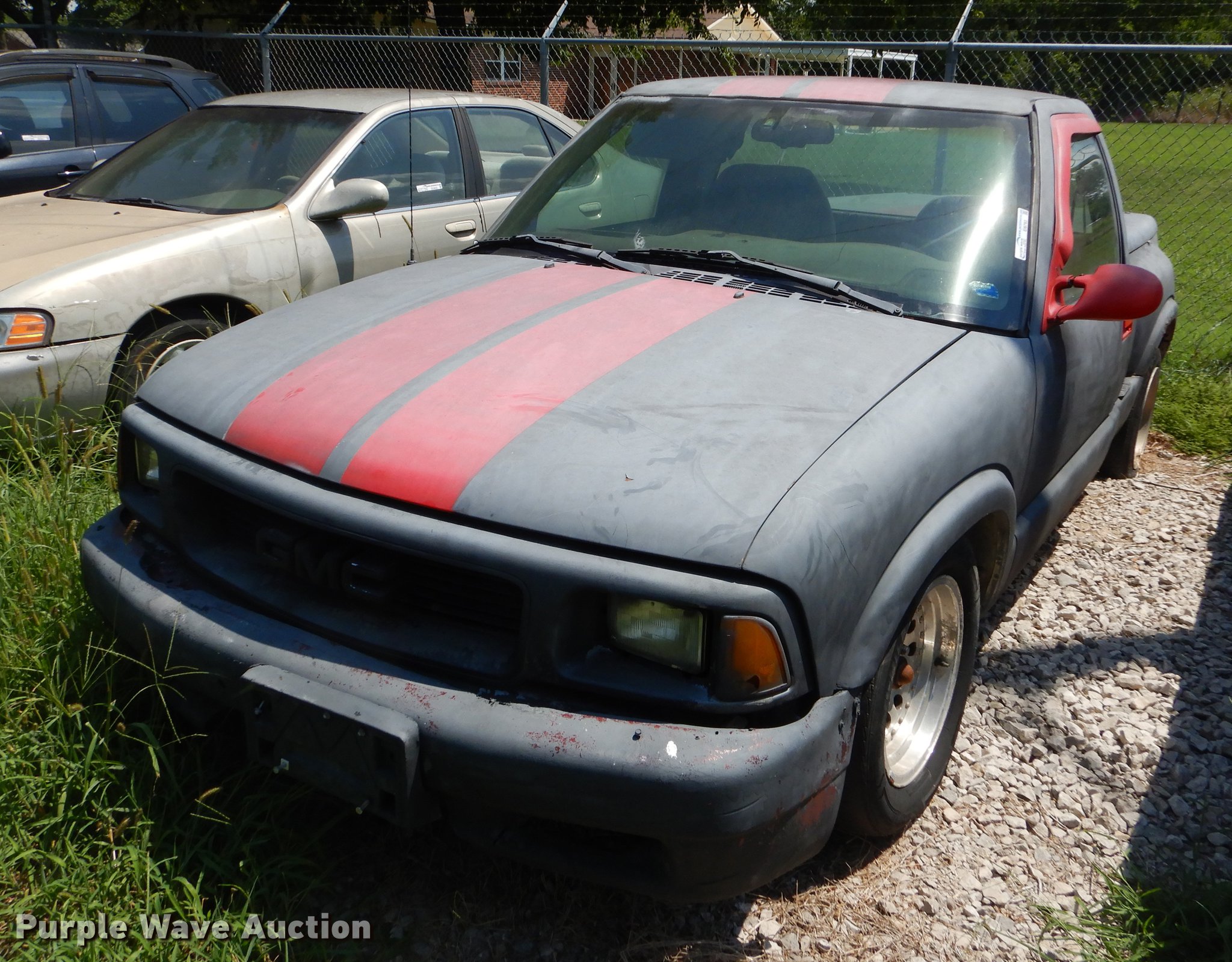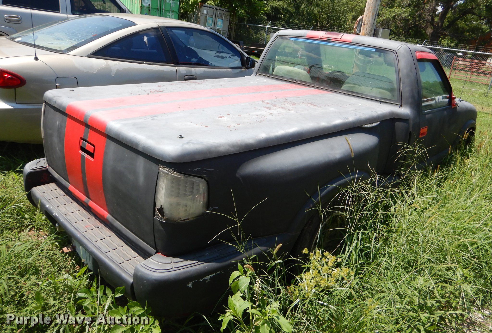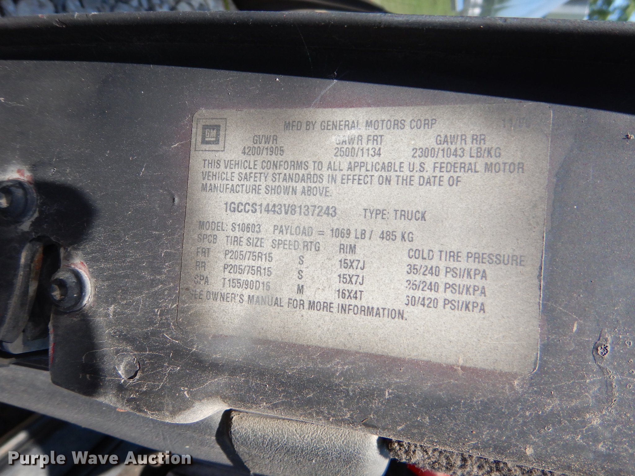 Purple Wave is selling a used Compact Pickup or Van in Oklahoma. This item is a 1997 Chevrolet S10 pickup truck with the following: 173,348 miles on odometer, 2.2L L4 OHV 8V gas engine, Four speed manual transmission, AC and heat, Tilt, Cruise, AM/FM/CD, Manual windows and locks, Cloth interior, Bed cover, 215/60R15 tires, Passenger side mirror missing, Unknown operating condition
