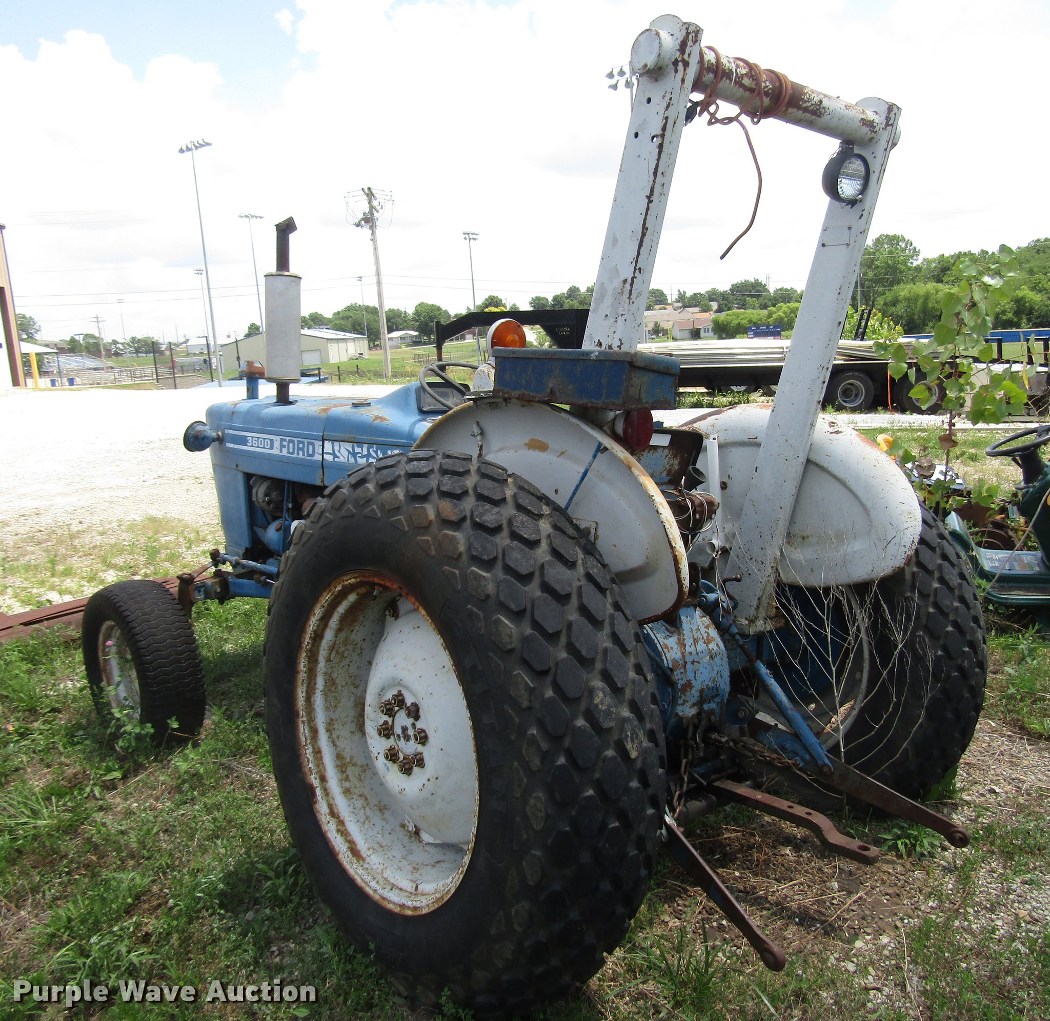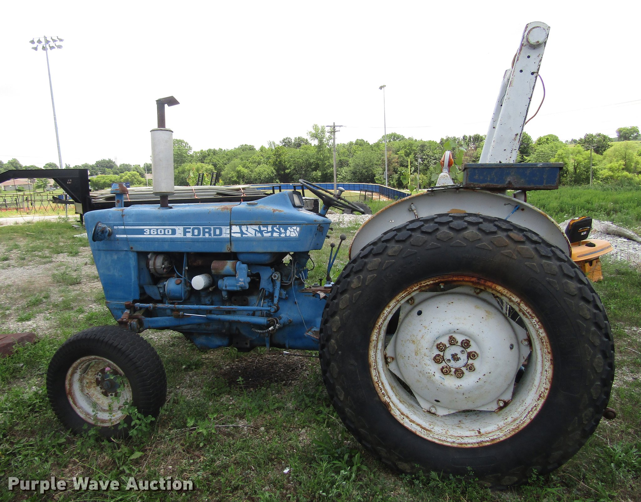 Purple Wave is selling a used Tractor in Missouri. This item is a Ford 3600 tractor with the following: 1,905 hours on meter, Three cylinder diesel engine, Model 6B13B, Manual transmission, Differential lock, Suspension seat, Three point, 540 PTO, 27x9.5 front tires, 13.6-28 rear tires, Unknown operating condition, Serial C498838