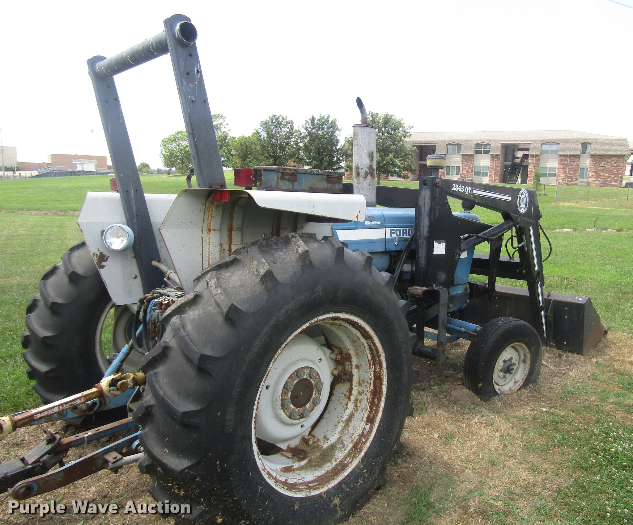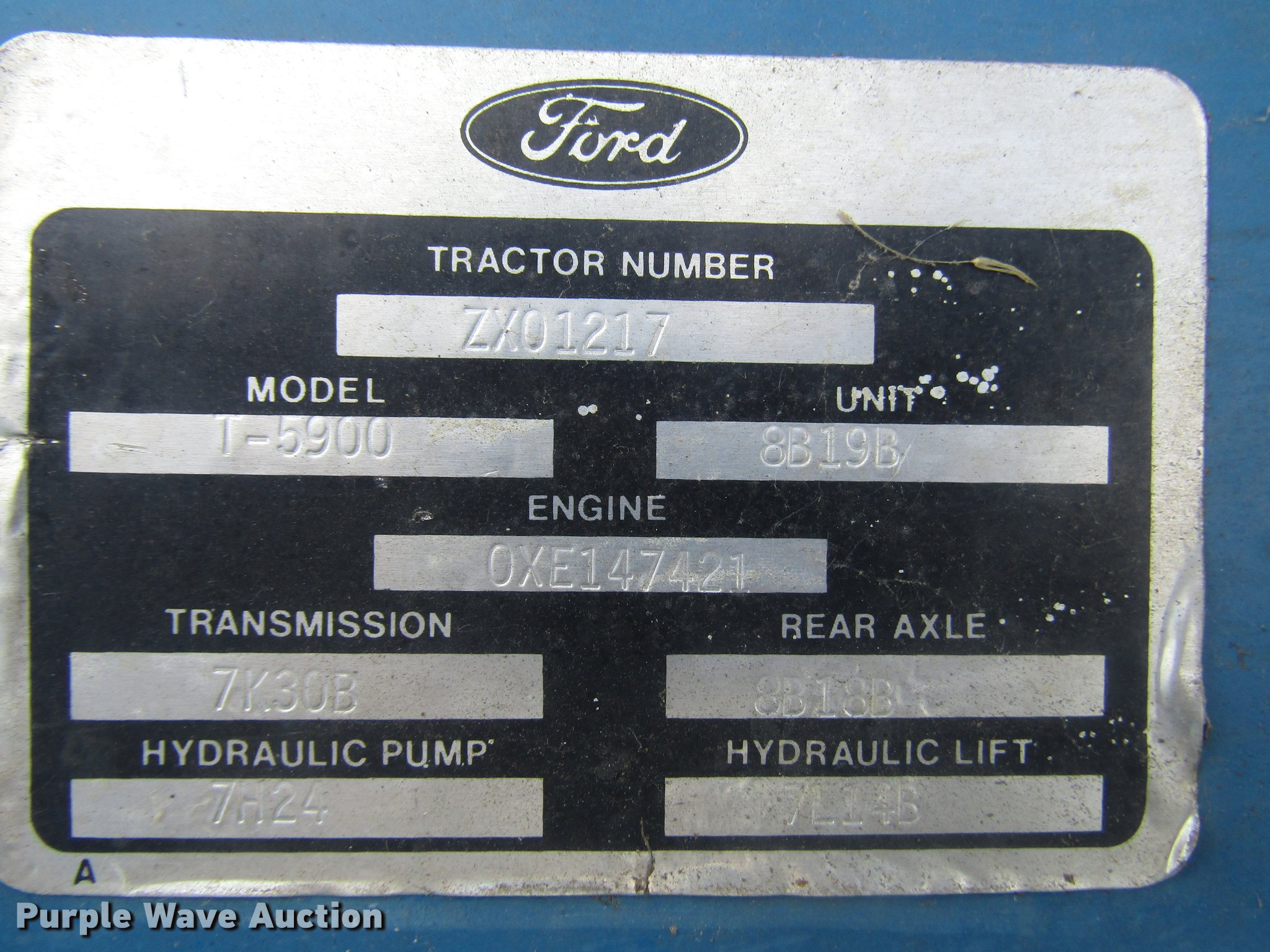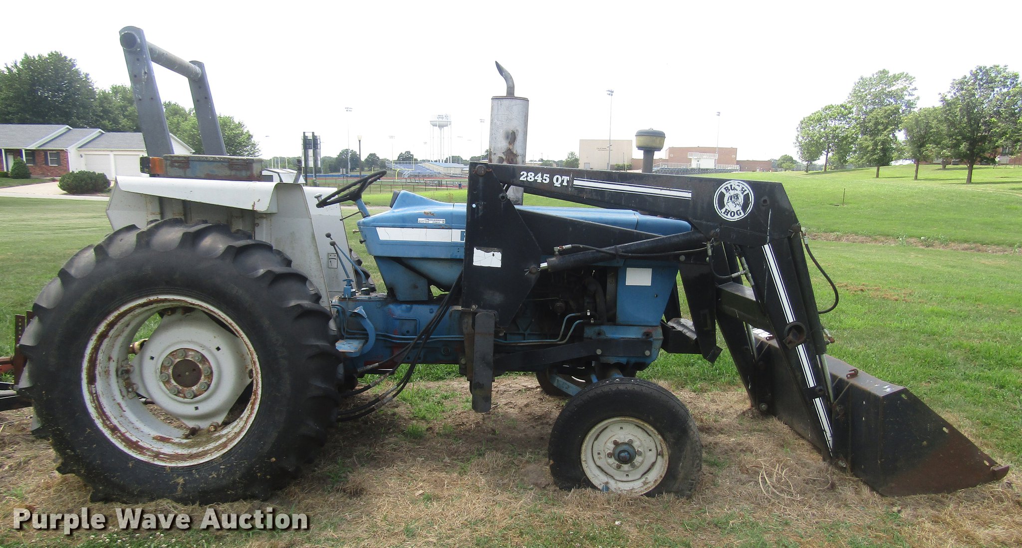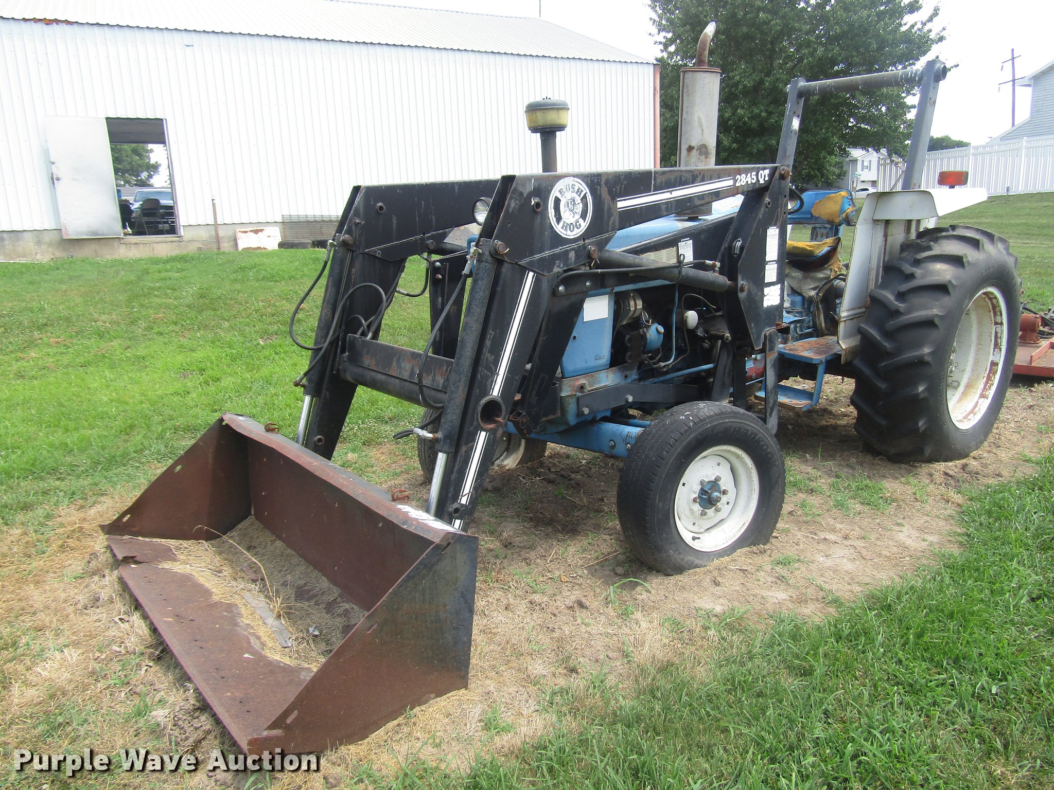 Purple Wave is selling a used Tractor in Missouri. This item is a 1988 Ford 5900 tractor with the following: 4,132 hours on meter, Four cylinder diesel engine, Model OXE147421, Manual transmission, Differential lock, Bush Hog 2845QT loader, 6'W bucket, Serial 12-01570, Three point, Top link, 540 PTO, LT245/75R16 front tires, 16.9-30 rear tires, Unknown operating condition, Serial ZX01217