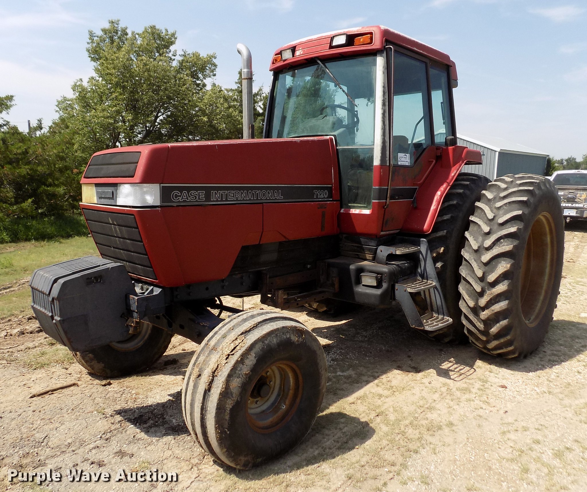 Purple Wave is selling a used Tractor in Kansas. This item is a 1992 Case 7120 Magnum tractor with the following: 9,810 hours on meter, Case IH 6T830 8.3L six cylinder turbo diesel engine, 150 HP, Powershift transmission, 18F-4R gears, Differential lock, AM/FM, Tilt steering wheel, Block heater, Three point, Top link, 540/1000 PTO, (3) rear hydraulic remote sets, (12) suitcase weights, 14L-16.1SL front tires, 18.4R42 dual rear tires, Possible hydraulic oil leak, Steering hydraulic cylinder broken, Unknown operating condition of AC and heat, Serial JJA0042196