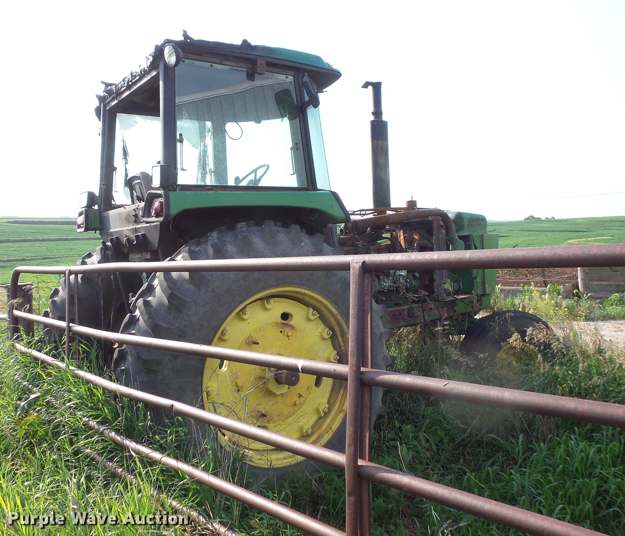 Purple Wave is selling a used Tractor in Iowa. This item is a 1976 John Deere 4430 tractor with the following: John Deere 6.6L six cylinder turbo diesel engine, Quad-Range transmission, 16F-2R gears, Tilt steering wheel, AM/FM, Suspension seat, Visor, Three point, Seven pin outlet, 540 PTO, (3) rear hydraulic remote sets, 11.00-16 front tires, 18.4-38 rear tires, Fire damage, Non-operational unit, Serial 443PH054653R