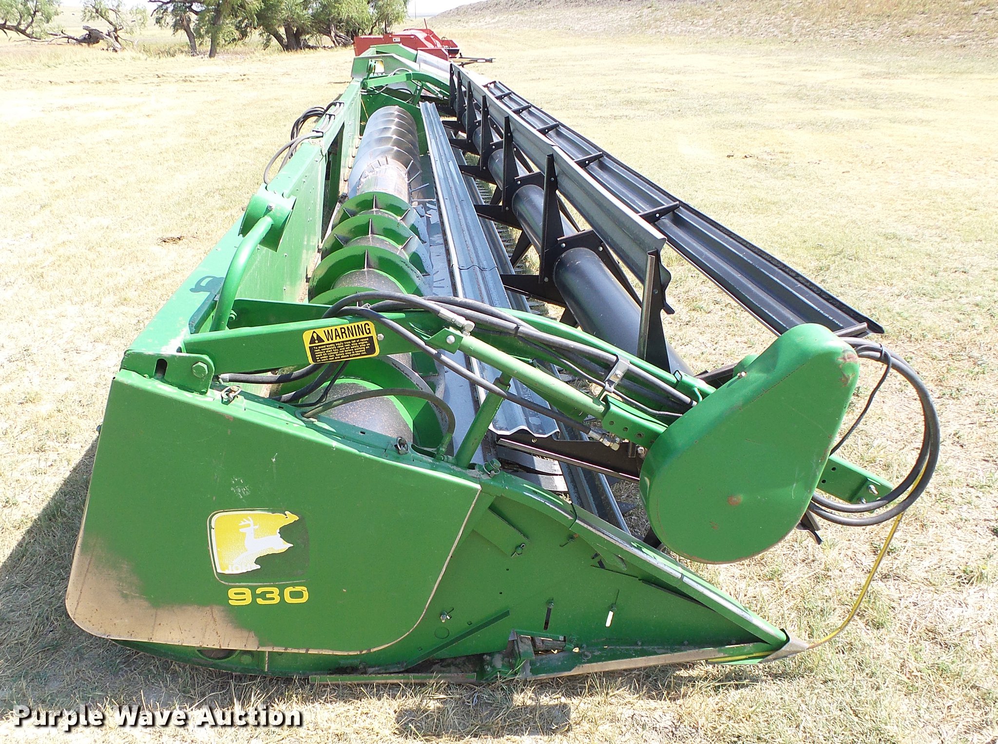 Purple Wave is selling a used Platform or Stripper Head in Kansas. This item is a John Deere 930 platform head with the following: 30'W, Bat reel, Hydraulic fore/aft, Hydraulic reel height control, Milo guard, Transport lights, Work lights, Dual drivelines, Serial H00930P651703