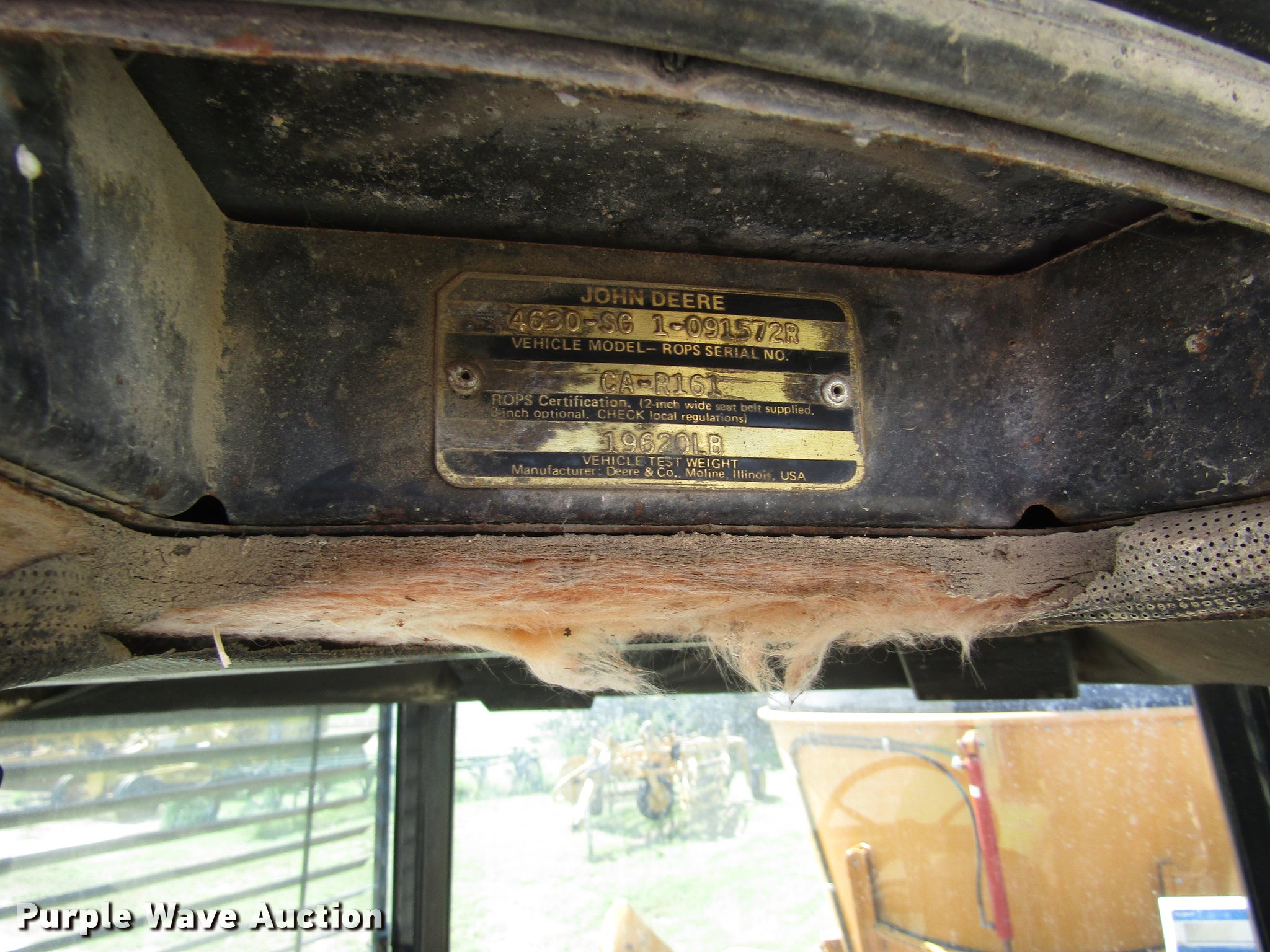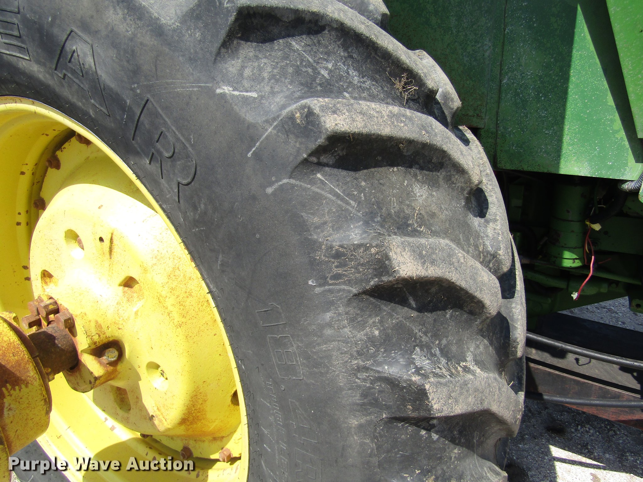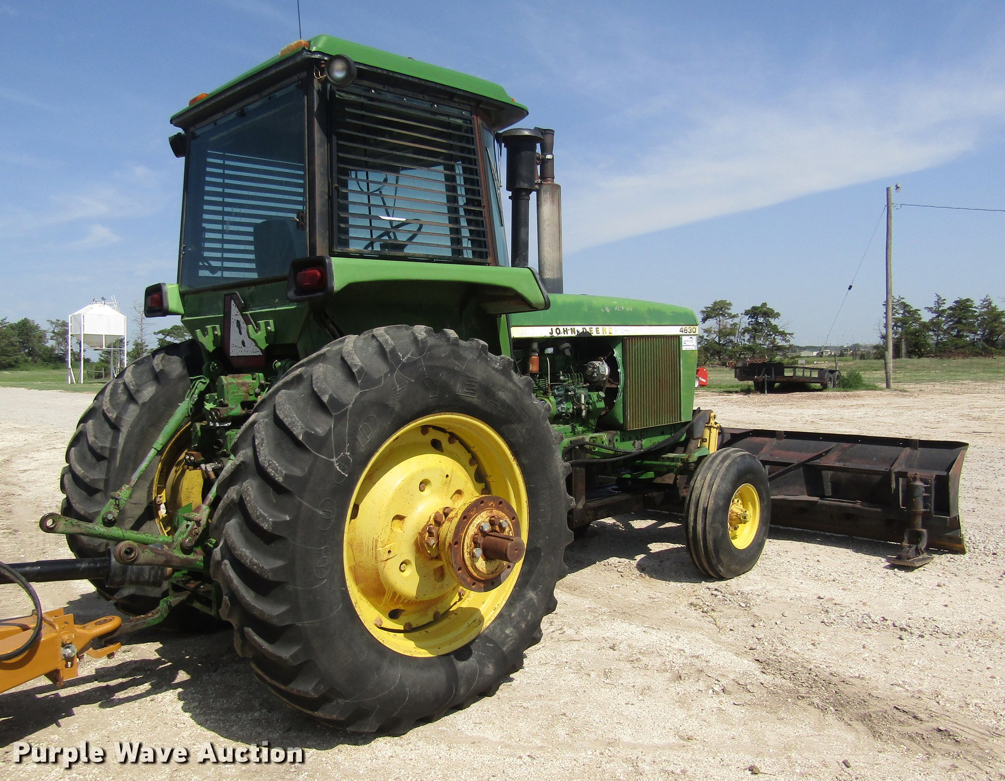Purple Wave is selling a used Tractor in Kansas. This item is a 1976 John Deere 4630 tractor with the following: 3,039 hours on meter, John Deere 6.6L six cylinder turbo diesel engine, 131 HP, Serial 6404AR-11458347R, Powershift transmission, 8F-4R gears, ROPS, AC and heat, Tilt steering wheel, AM/FM, Suspension seat, Shade, 144"W front blade, Three point, 540/1000 PTO, (3) rear hydraulic remote sets, 10.00-16 front tires, 18.4-38 rear tires, Front hydraulic leak, Serial 4630P02224DR