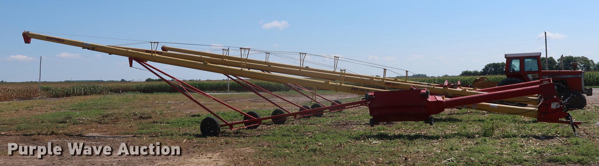 Purple Wave is selling a used Auger or Conveyor in Missouri. This item is a Westfield MK100-71 grain auger with the following: 71'L x 10" diameter auger, 66" x 40" hopper, 540 PTO, Pin hitch, Jack stand, 235/75R15 tires, Serial 212405