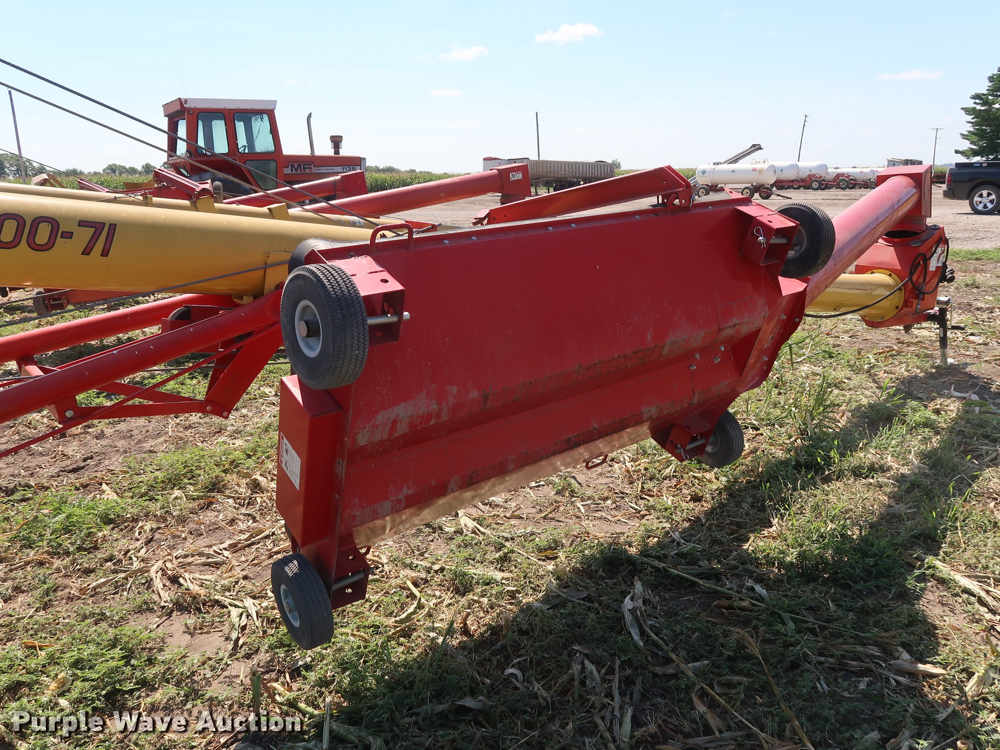 Westfield MK100-71 grain auger. 71'L x 10" diameter auger, 66" x 40" hopper, 540 PTO, Pin hitch, Jack stand, 235/75R15 tires, Serial 212405. Wright Farms. 9012 Long Lake Rd. Richmond, MO 64085