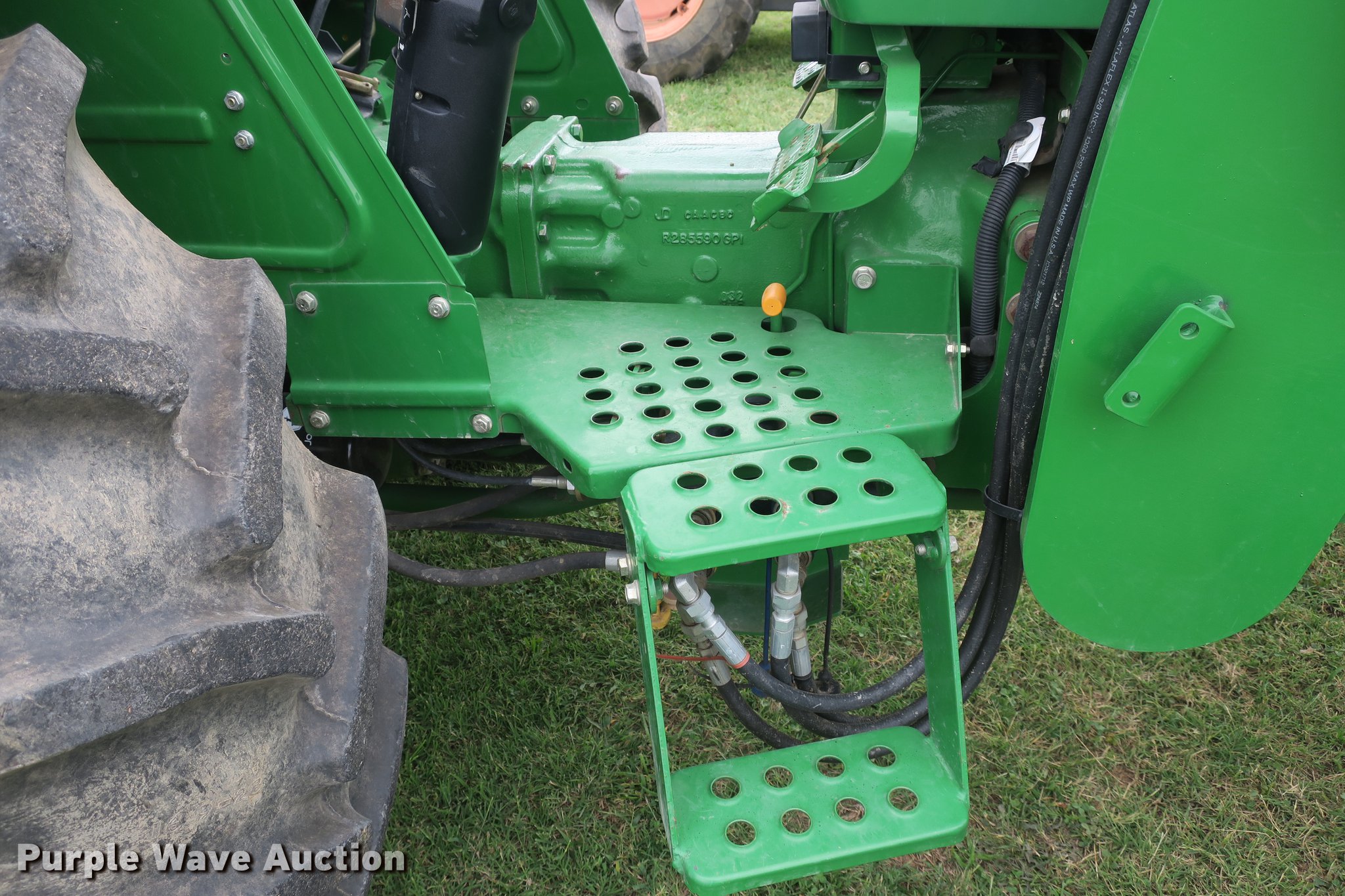 Purple Wave is selling a used Tractor in Arkansas. This item is a 2012 John Deere 5055E MFWD tractor with the following: 483 hours on meter, Three cylinder turbo diesel engine, Synchro shuttle shift transmission, 9F-3R gears, Differential lock, Suspension seat, Loader, 73"W, Joystick controls, Three point, 540 PTO, Rear hydraulic remote set, 9.5-24 front tires, 16.9-28 rear tires, Serial 1PY5055EKCB009062, Unit# 027621
