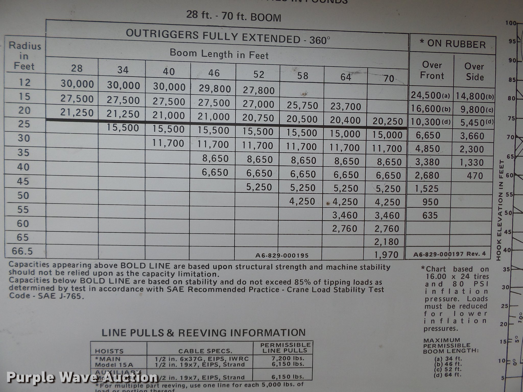 Purple Wave is selling a used Rough or All Terrain Crane in Missouri. This item is a 1972 Grove RT59S crane with the following: 6,726 hours on meter, Caterpillar 3208 eight cylinder diesel engine, Automatic transmission, Tandem axle, Suspension seat, Stick crane controls, Work lights, Backup alarm, Telescopic hydraulic boom, 70'L boom, 23'L jib, Three boom sections, 30,000 lbs max lift capacity, 100' max tip height, One winch, In-cab boom controls, (3) sheaves, Crane ball and hook, (4) stabilizers, Certification valid through August 2018, Air brakes, 114" wheelbase, 16.00-24TG tires, Serial 21149, Unit# 124