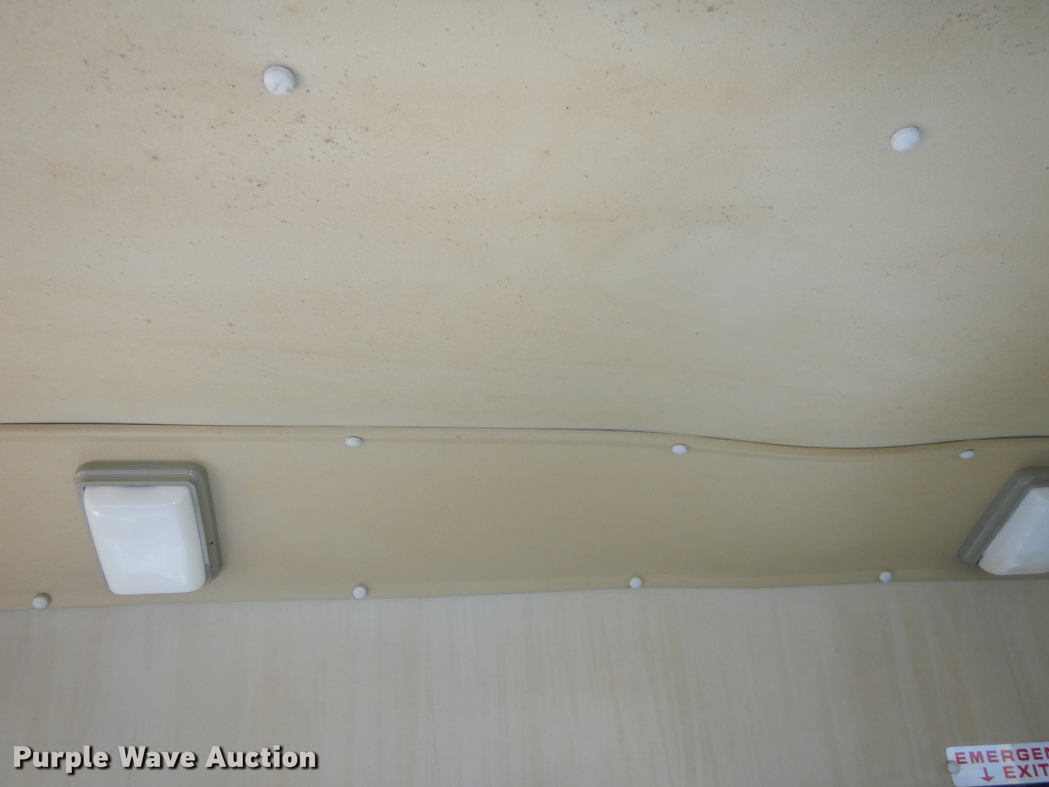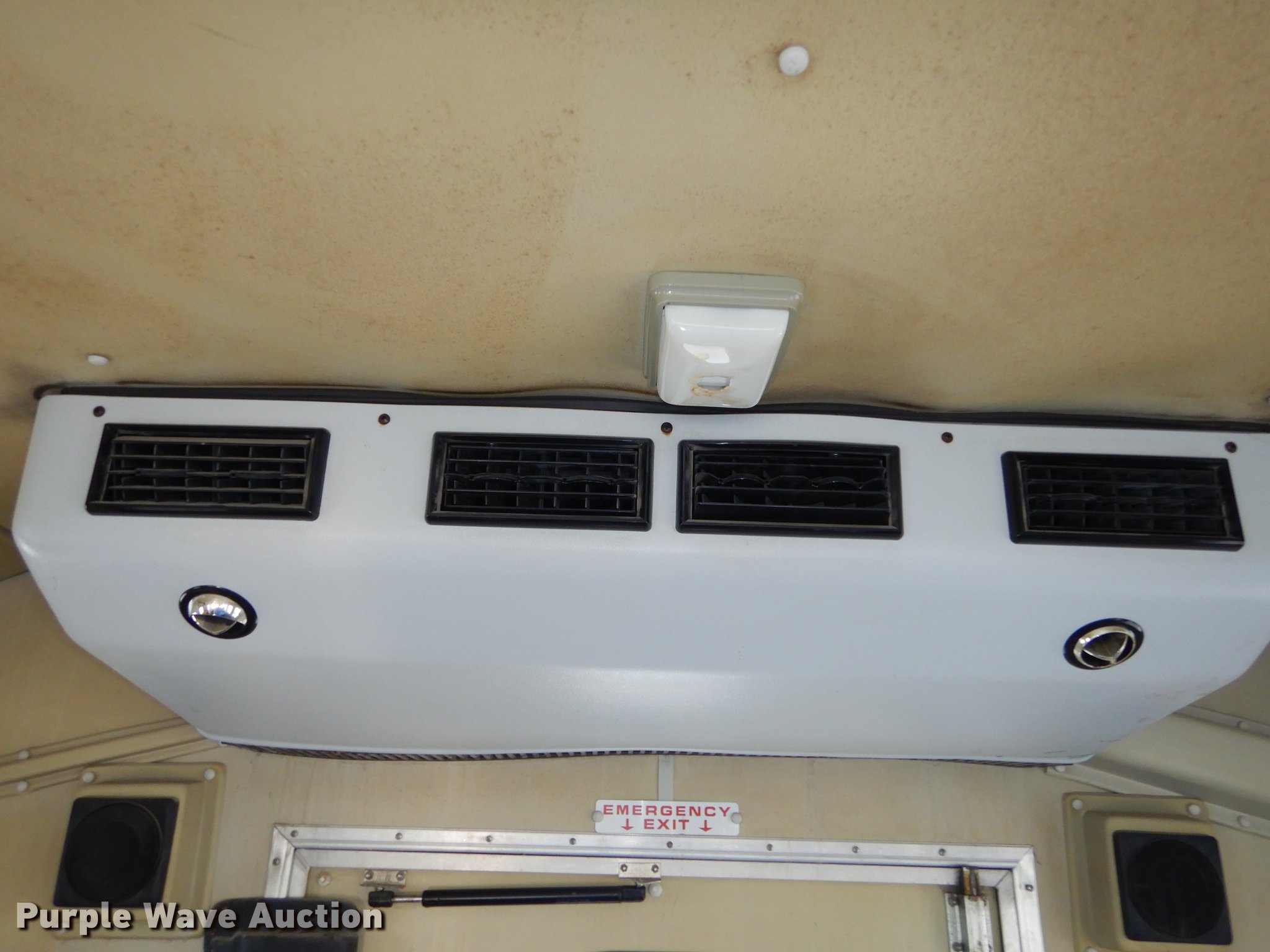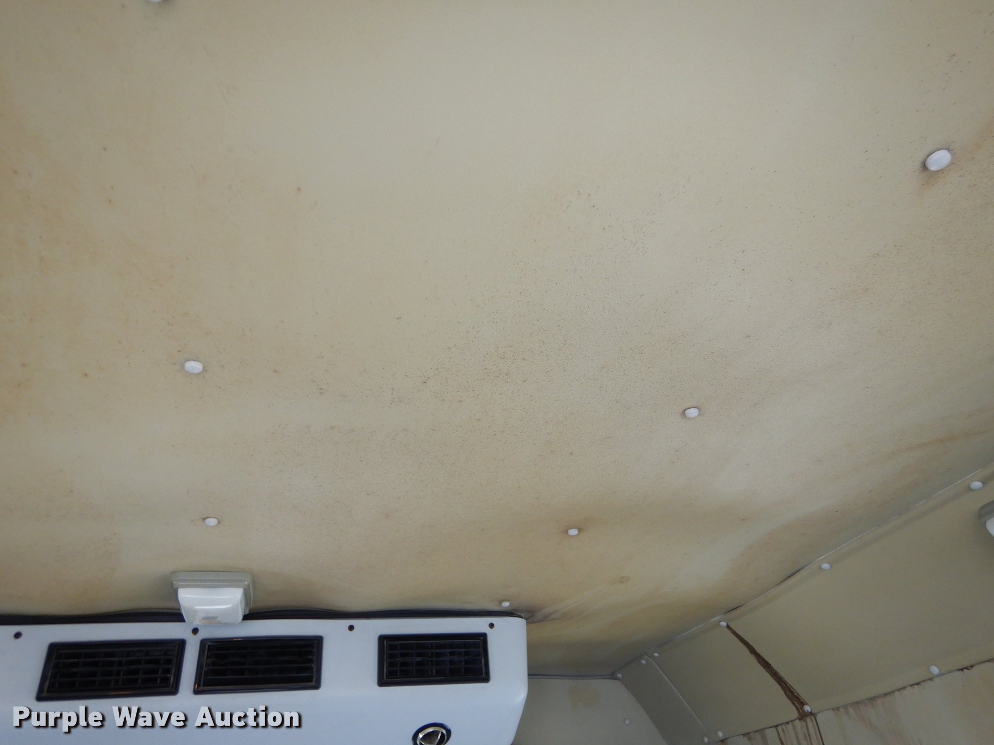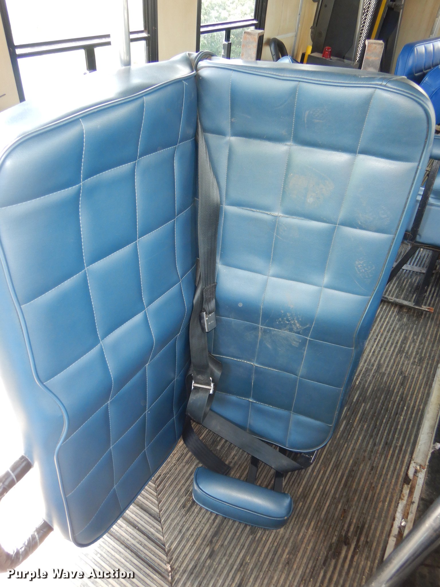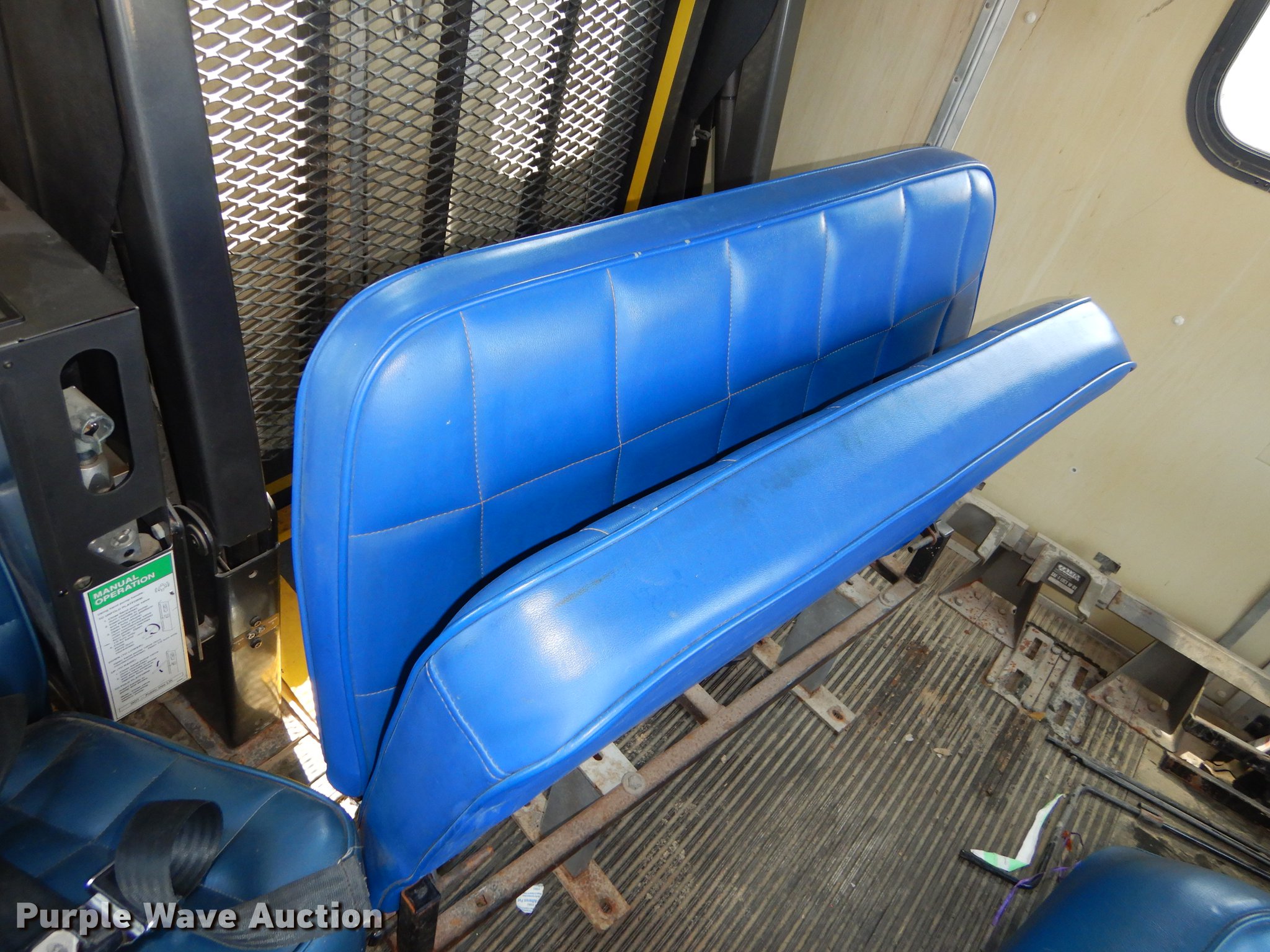 Purple Wave is selling a used Bus in Kansas. This item is a 1995 Ford Econoline E350 shuttle bus with the following: 114,825 miles on odometer, 7.5L V8 OHV 16V gas engine, Automatic transmission, Single axle, AC and heat, Non-operational AC, Tilt, Cruise, Vinyl interior, 10 passenger capacity, Seat belts, 2009 Braun NCL917FFBRP-2 wheelchair lift, 800 lbs capacity, Serial BB-00609, Ceiling, rear, and side emergency exits, Roof AC unit, Backup alarm, Spring suspension, Hydraulic brakes, 136" wheelbase, Goodyear 245/75R16 tires, GVWR 10,500 lbs, Weak battery, Transmission slow to engage, Stereo missing, Ceiling leaks, Seats unattached, but included, Some damaged, Steering and brake work needed, Tires worn
