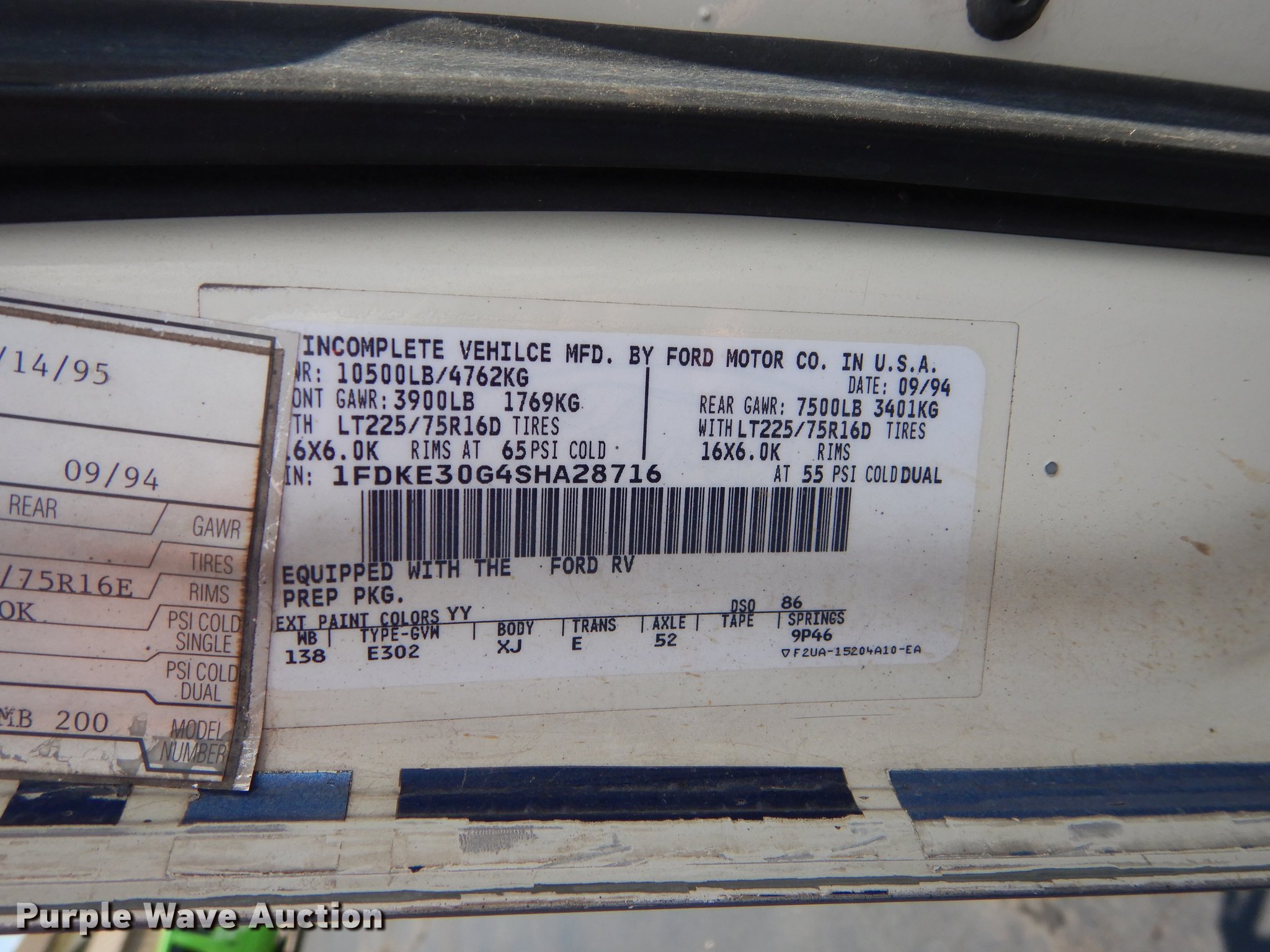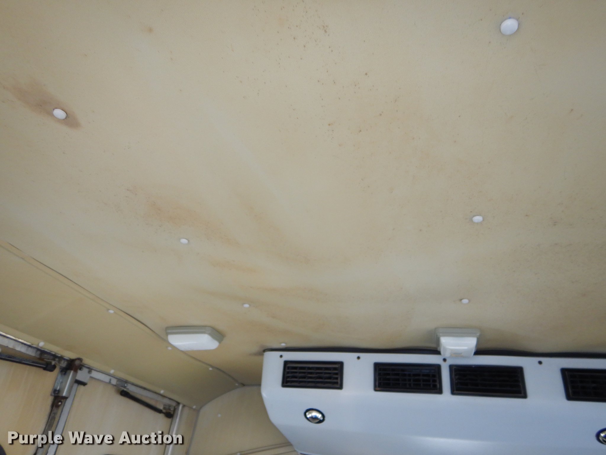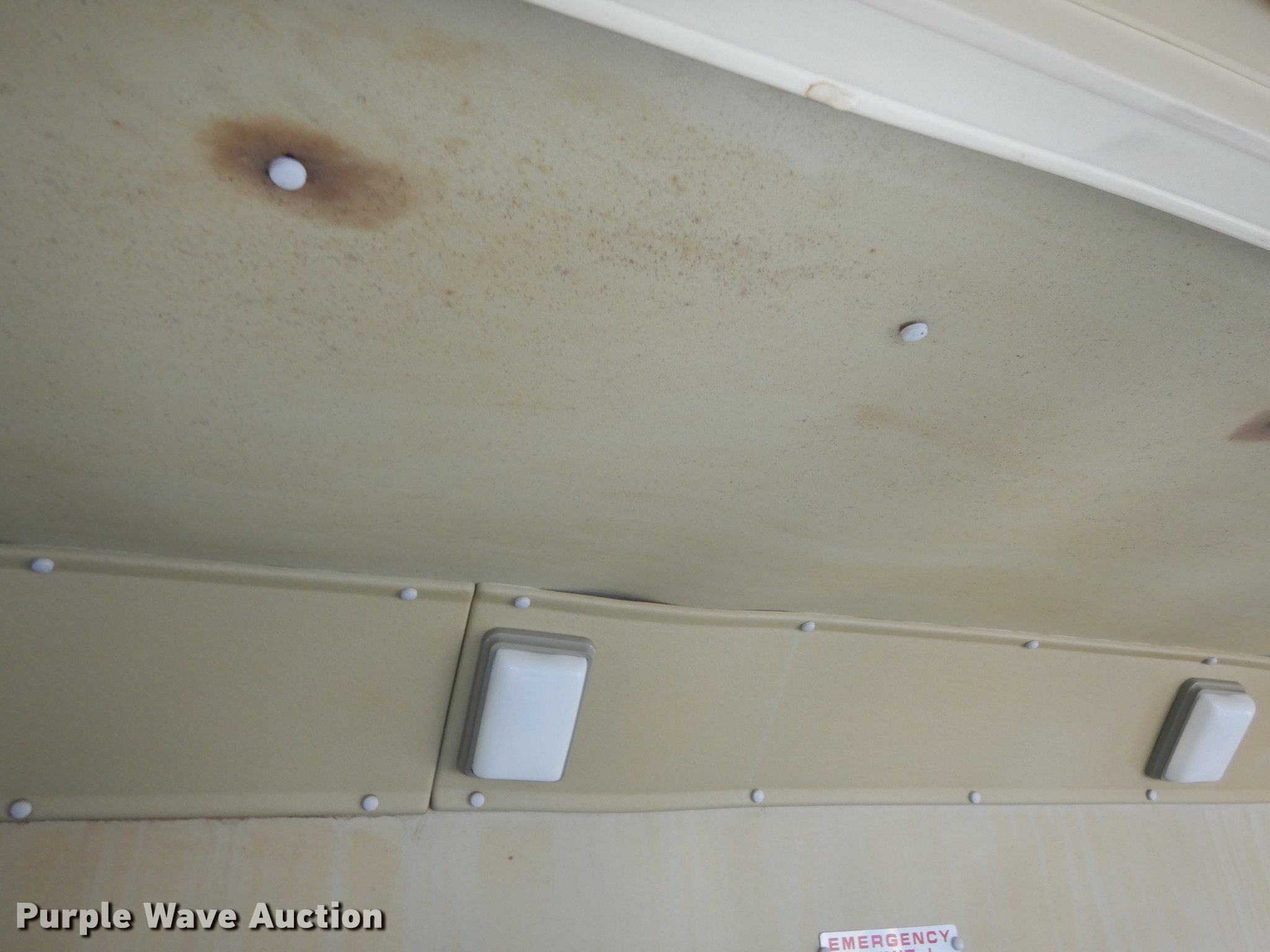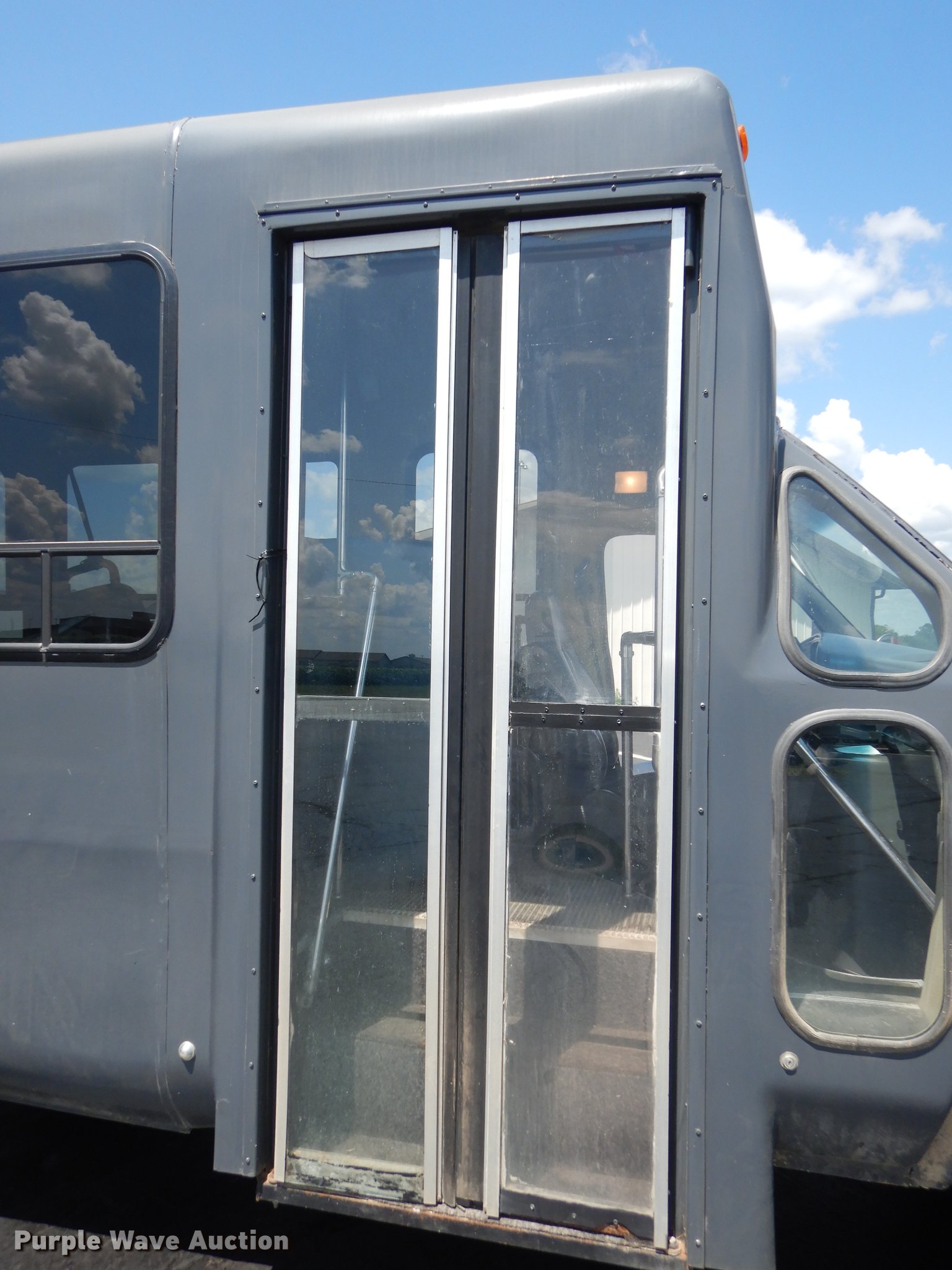Purple Wave is selling a used Bus in Kansas. This item is a 1995 Ford Econoline E350 shuttle bus with the following: 114,825 miles on odometer, 7.5L V8 OHV 16V gas engine, Automatic transmission, Single axle, AC and heat, Non-operational AC, Tilt, Cruise, Vinyl interior, 10 passenger capacity, Seat belts, 2009 Braun NCL917FFBRP-2 wheelchair lift, 800 lbs capacity, Serial BB-00609, Ceiling, rear, and side emergency exits, Roof AC unit, Backup alarm, Spring suspension, Hydraulic brakes, 136" wheelbase, Goodyear 245/75R16 tires, GVWR 10,500 lbs, Weak battery, Transmission slow to engage, Stereo missing, Ceiling leaks, Seats unattached, but included, Some damaged, Steering and brake work needed, Tires worn