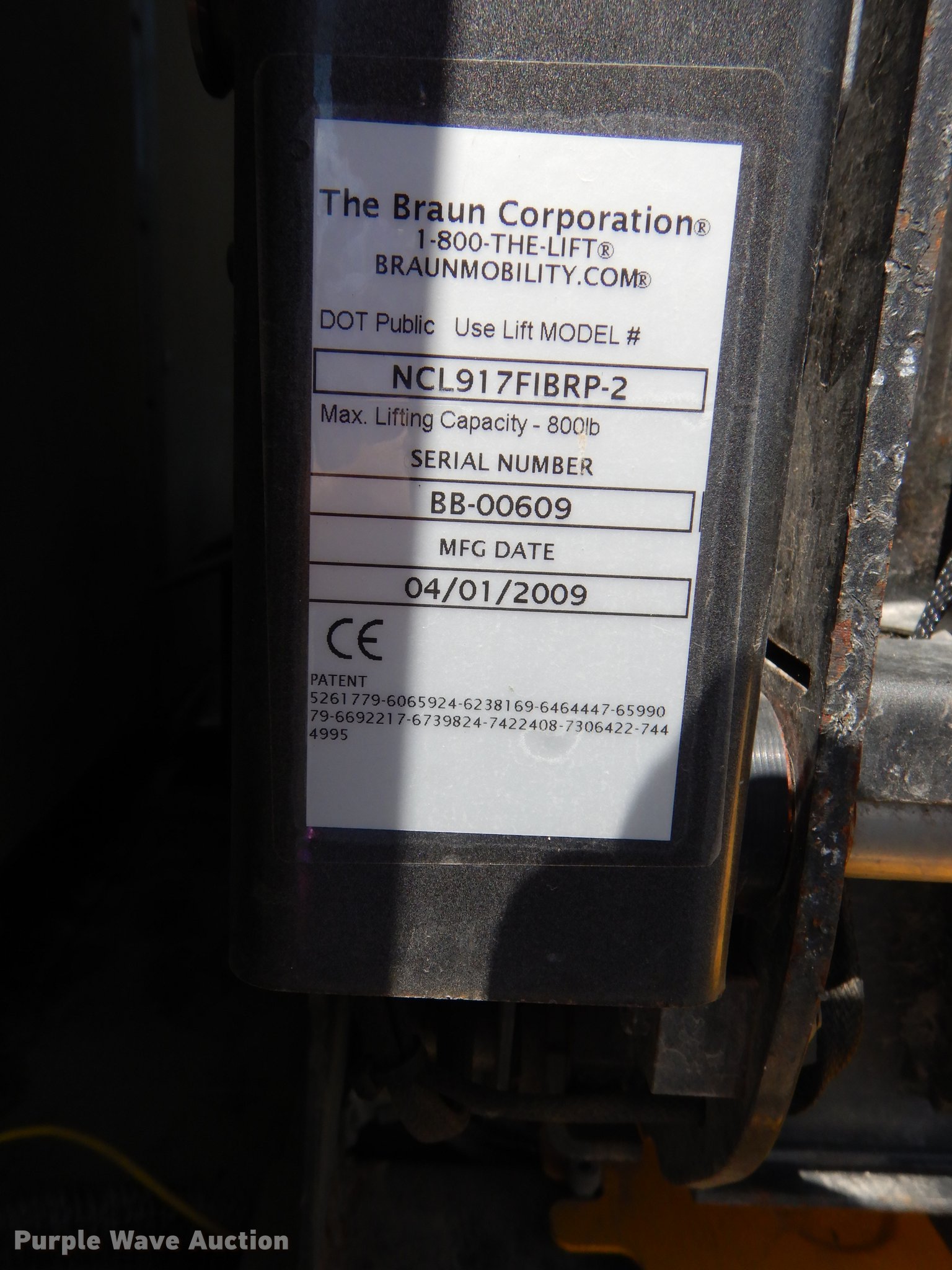 - 2009 Braun NCL917FFBRP-2 wheelchair lift
