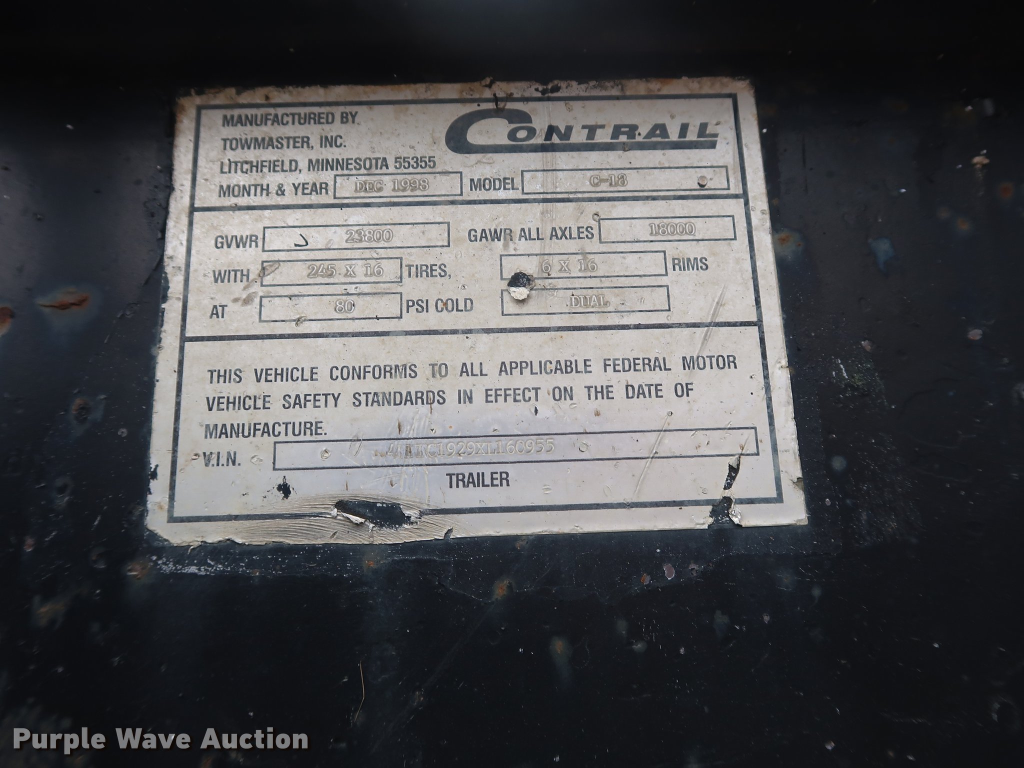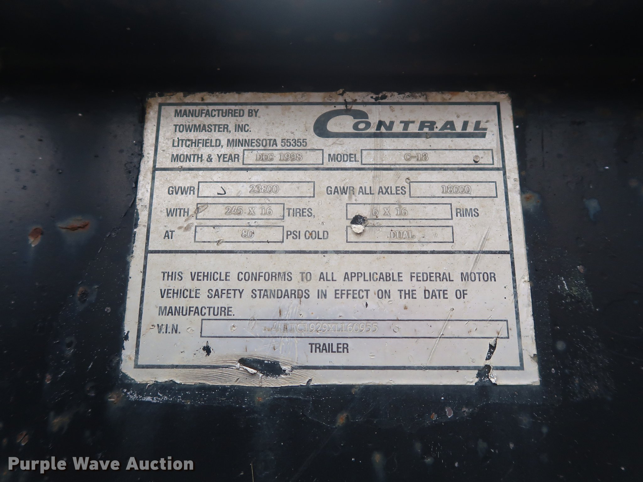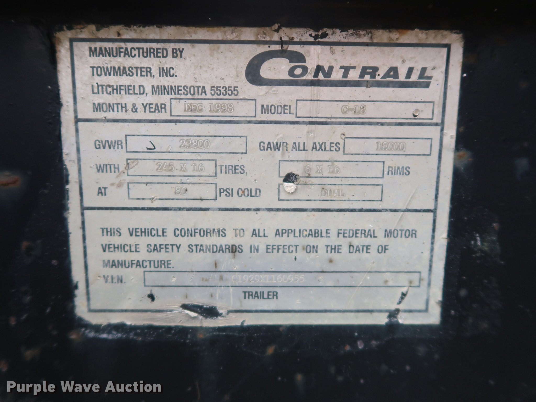 Take a look at this used 1999 Towmaster Contrail equipment trailer being sold on August 29th, 2018 in the SOLD! August 29 Vehicles and Equipment Auction made by Towmaster. Take a look at all of the item information below or take a look at similar auctions for Trailers.