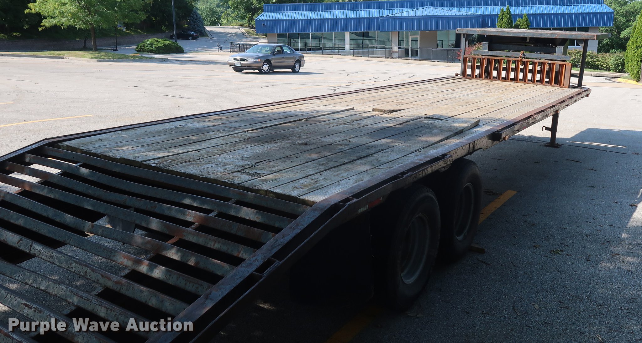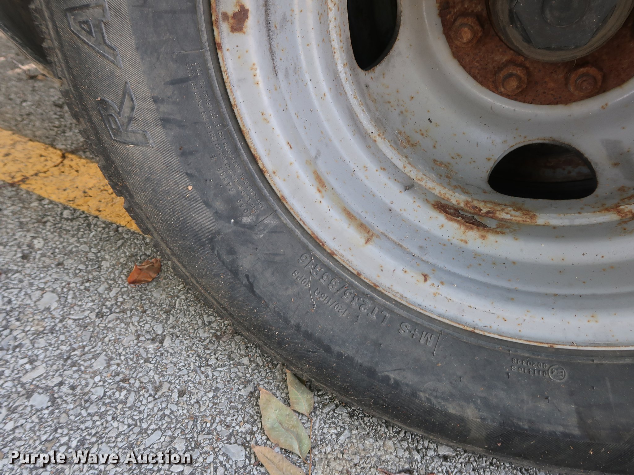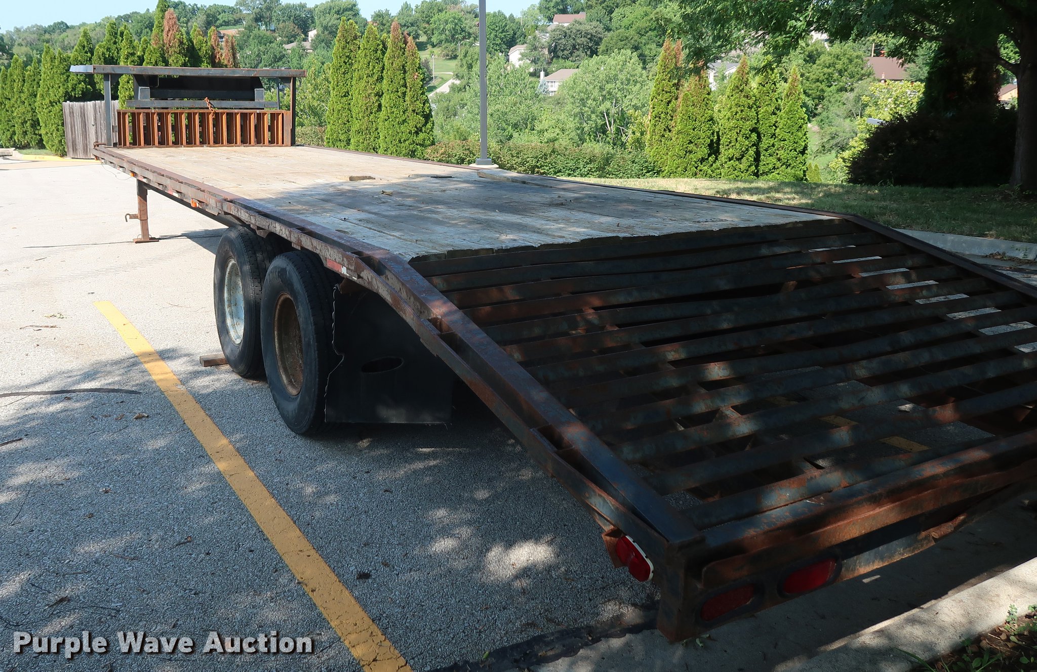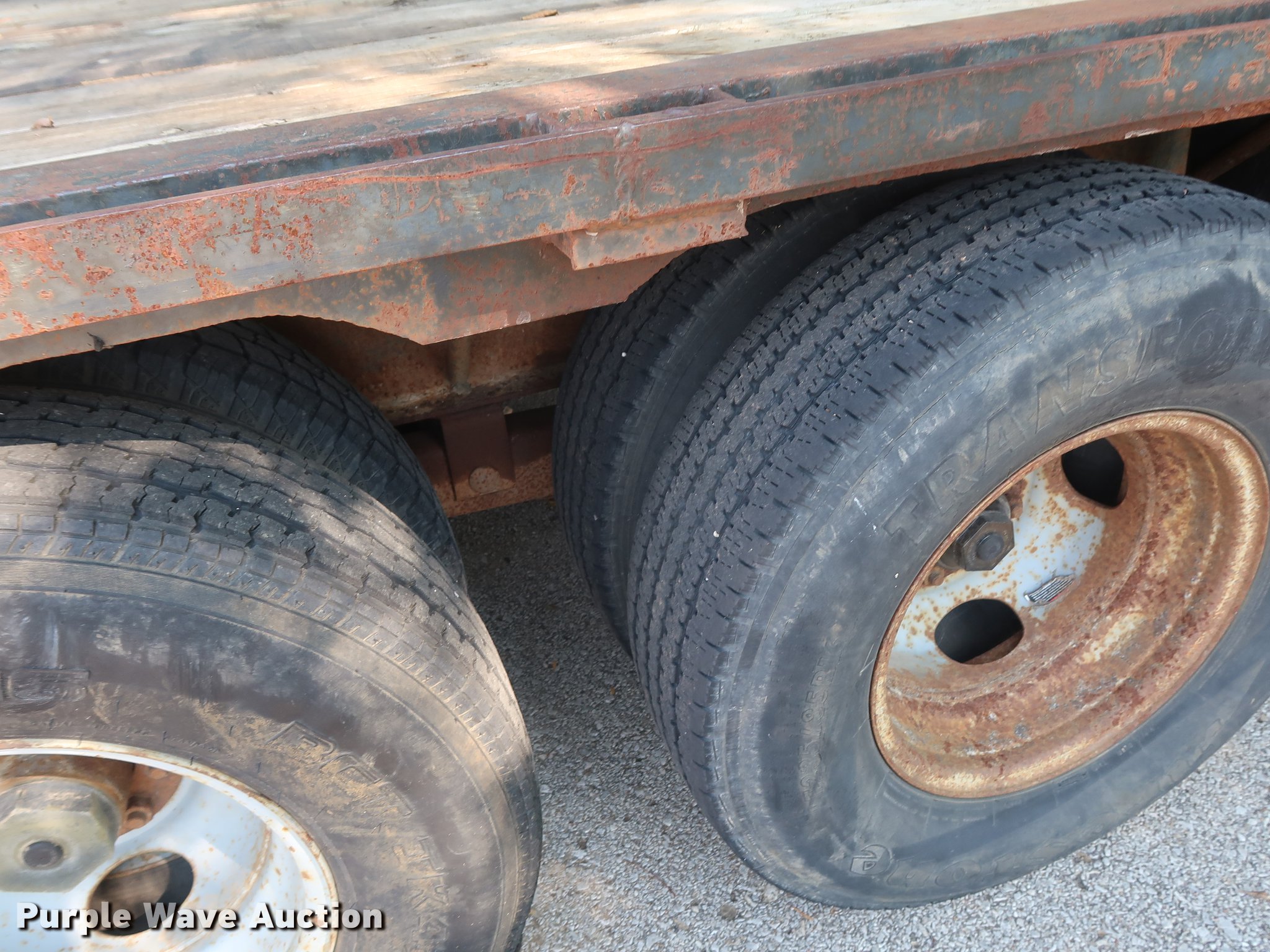 Purple Wave is selling a used Equip. Trailer in Missouri. This item is a 2005 equipment trailer with the following: 25'L x 98"W deck, 77"L x 98"W upper deck, 5'L dovetail, 6'L x 16"W ramps, Gooseneck hitch, Jack stand, Spring suspension, Electric brakes, Tandem axle, 235/85R16 tires, Chains and boomers included, Right front inside tire issue, bubble on sidewall