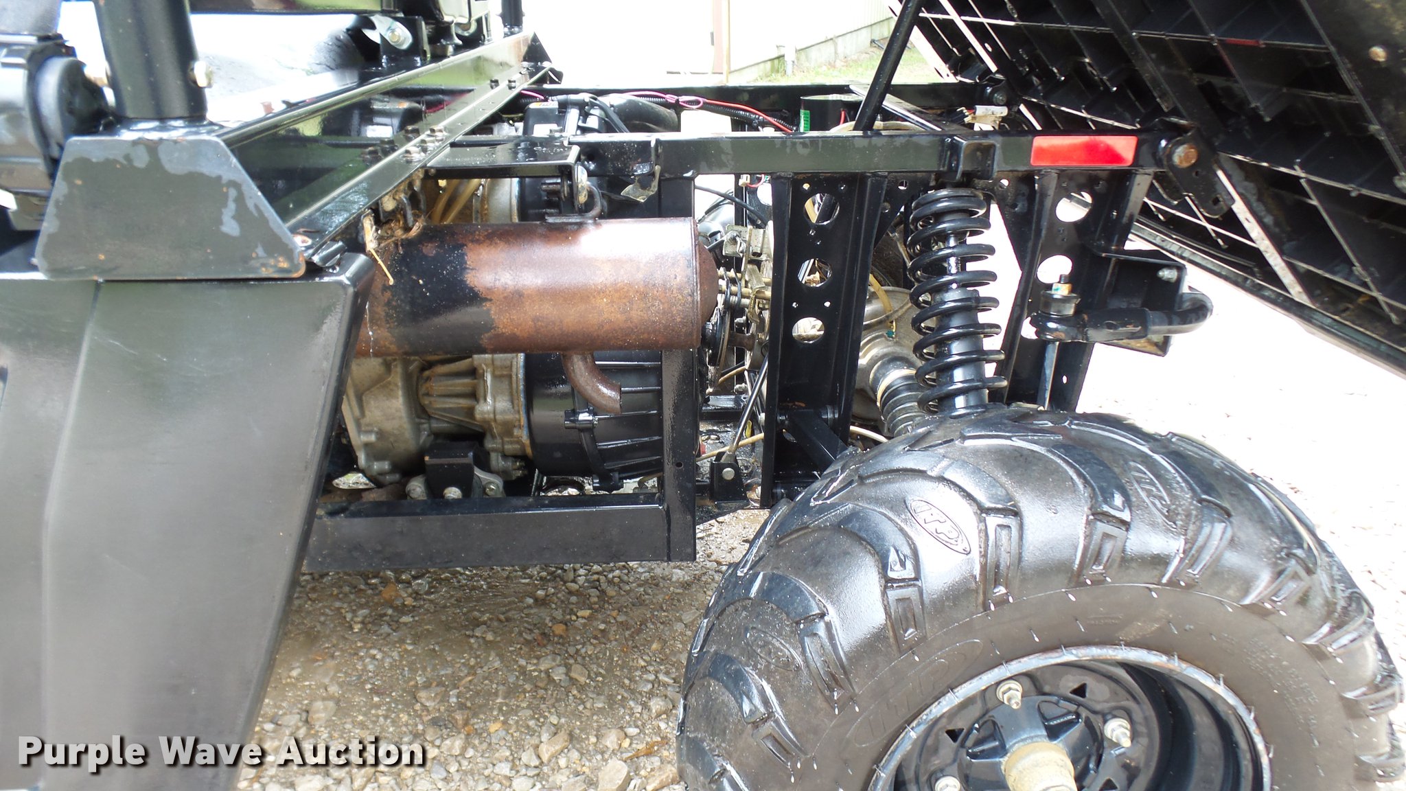 Purple Wave is selling a used Utility Vehicle in Missouri. This item is a 2012 Polaris Ranger 900 utility vehicle with the following: 4,337 miles on odometer, 762 hours on meter, Yanmar 900 three cylinder diesel engine, 18.5 kW, Serial 903, Automatic transmission, Four wheel drive, ROPS canopy, Tilt steering wheel, Seat belts, Headlights, Taillights, Push bumper, Dump bed, Receiver hitch, Four wheel independent suspension, 25x8x12 front tires, 25x10-12 rear tires