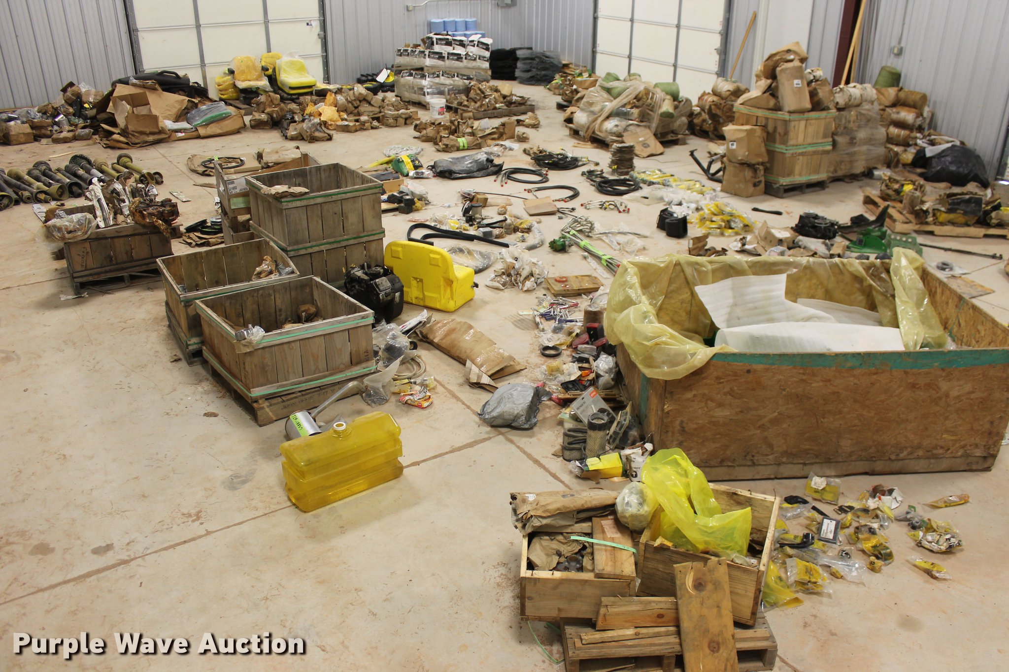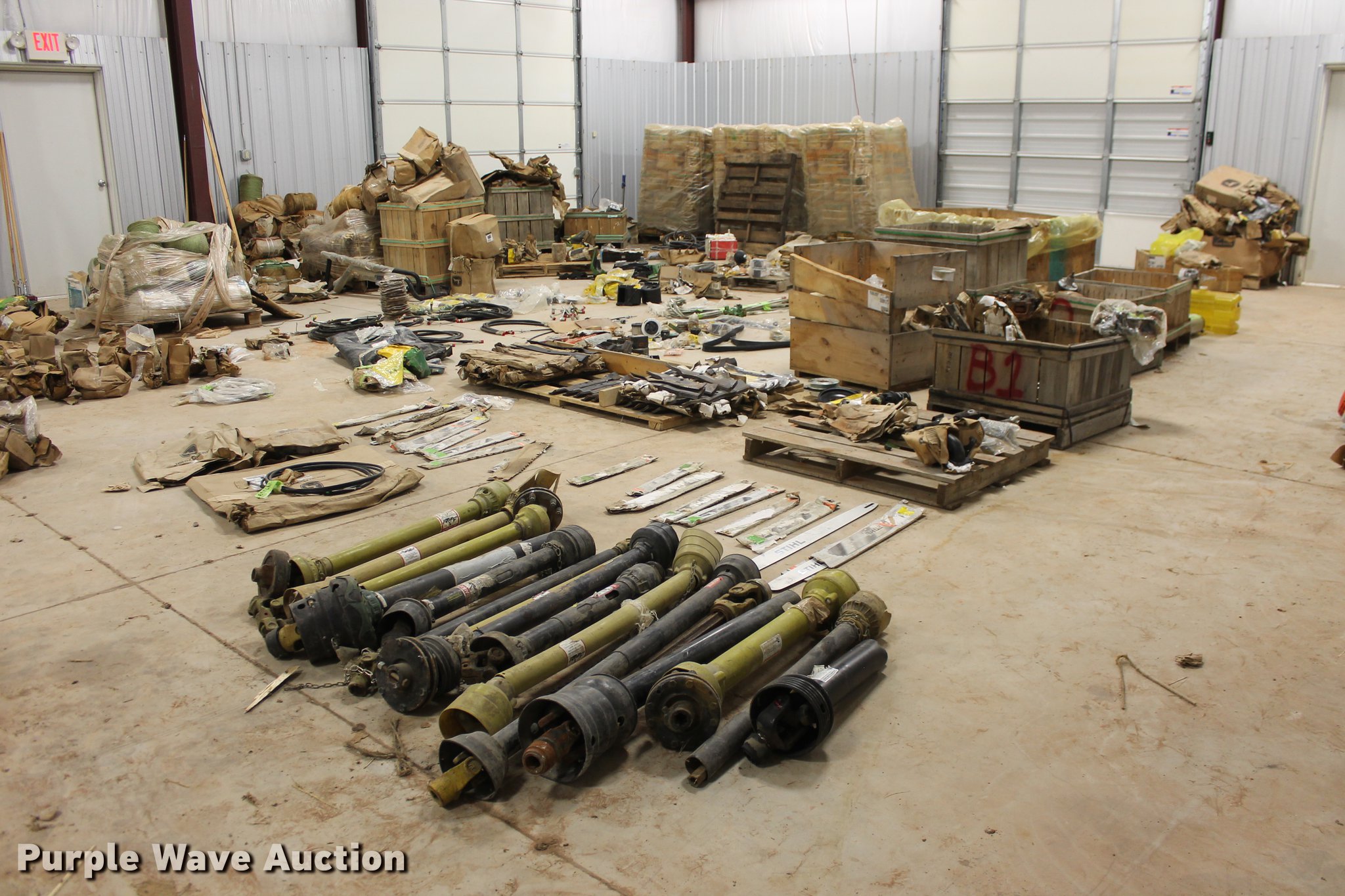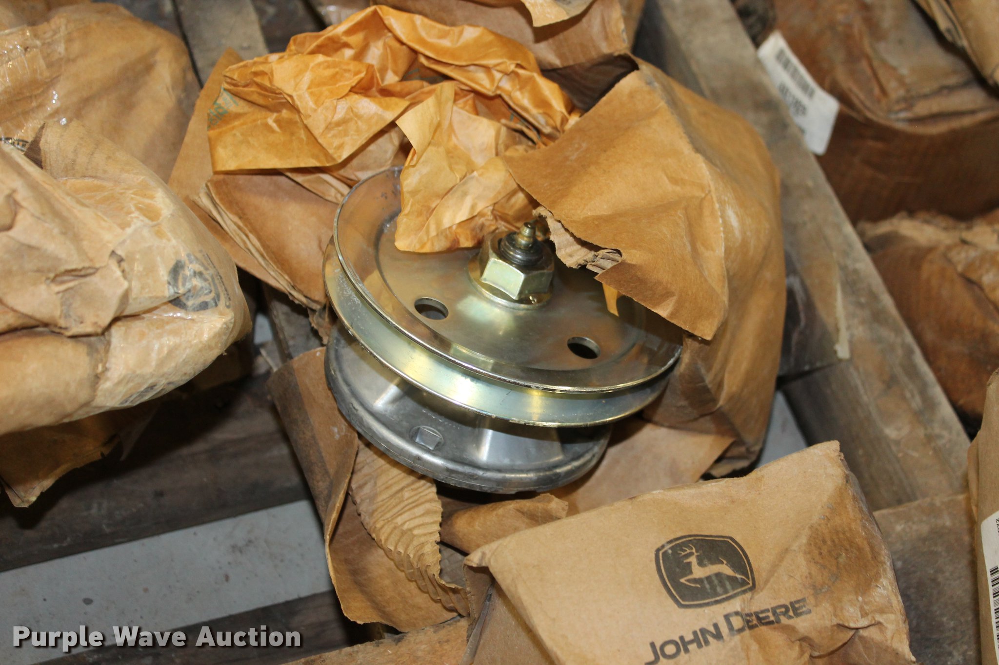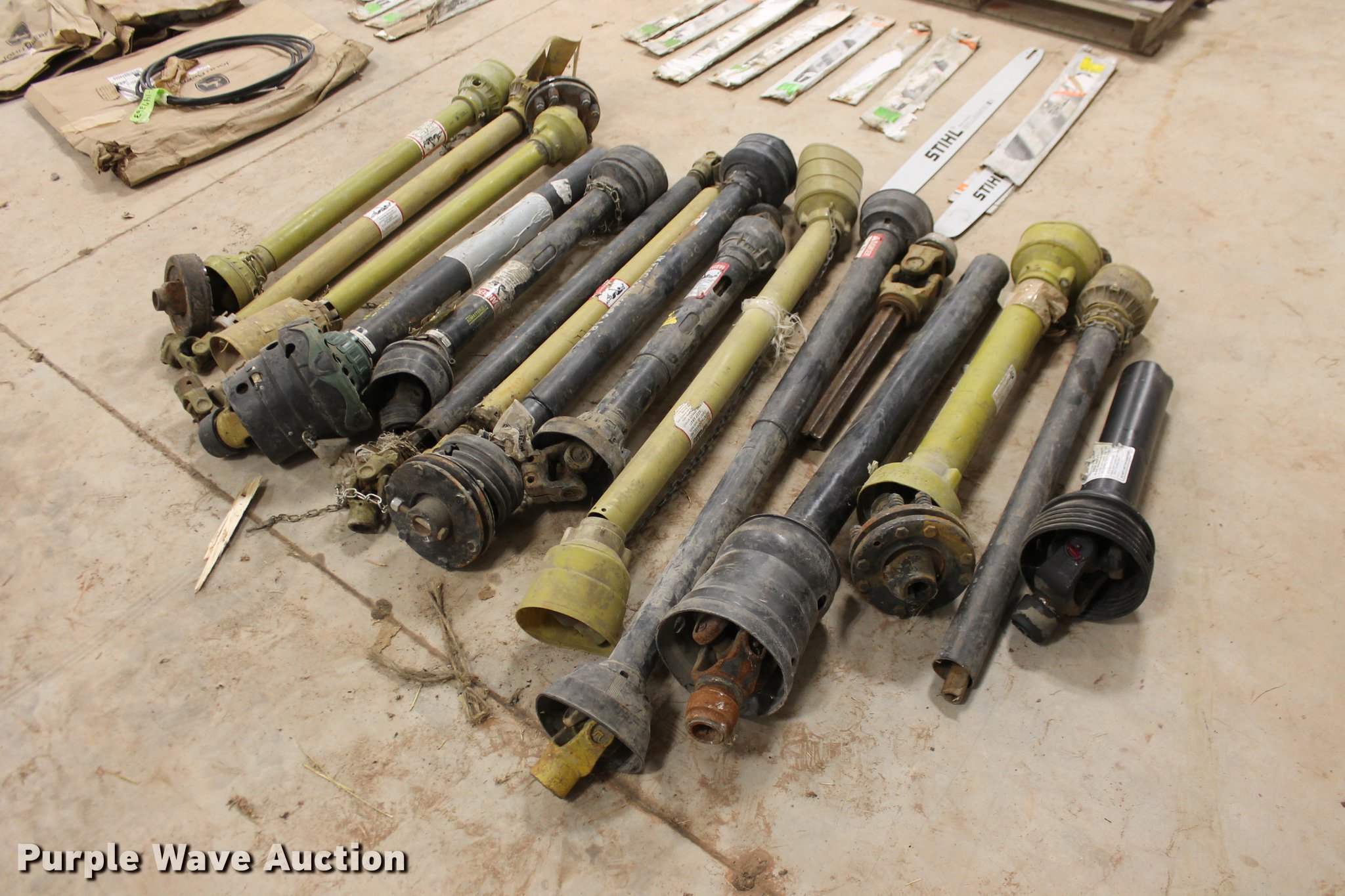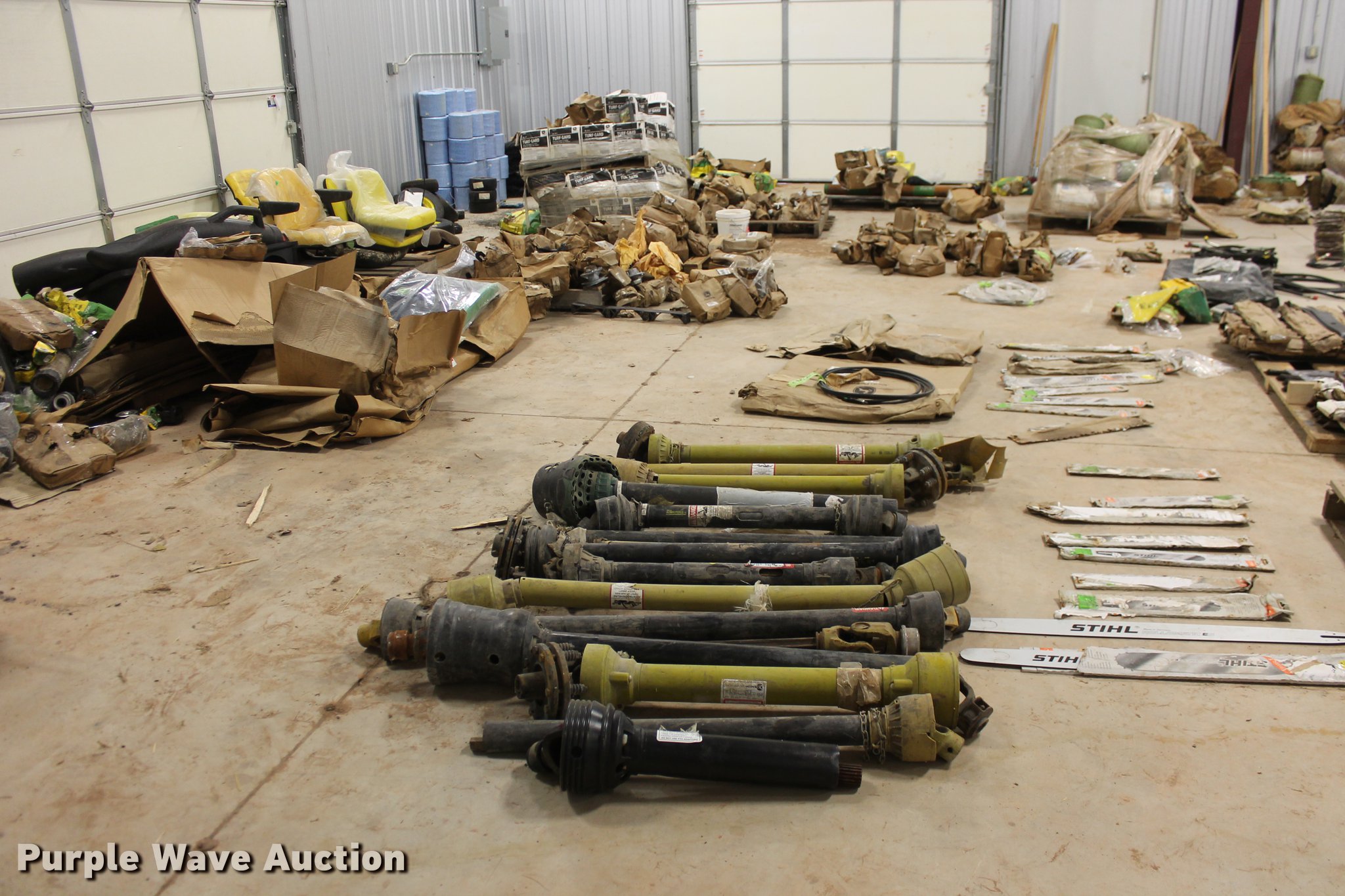 Purple Wave is selling a used Tools in Oklahoma. This item is a John Deere parts and hardware with the following: Drivelines, PTO shafts, Saw blades, Equipment seats, Bale twine, Gears, Pulleys, Bearings, Spindles, Cables and more, Unused
