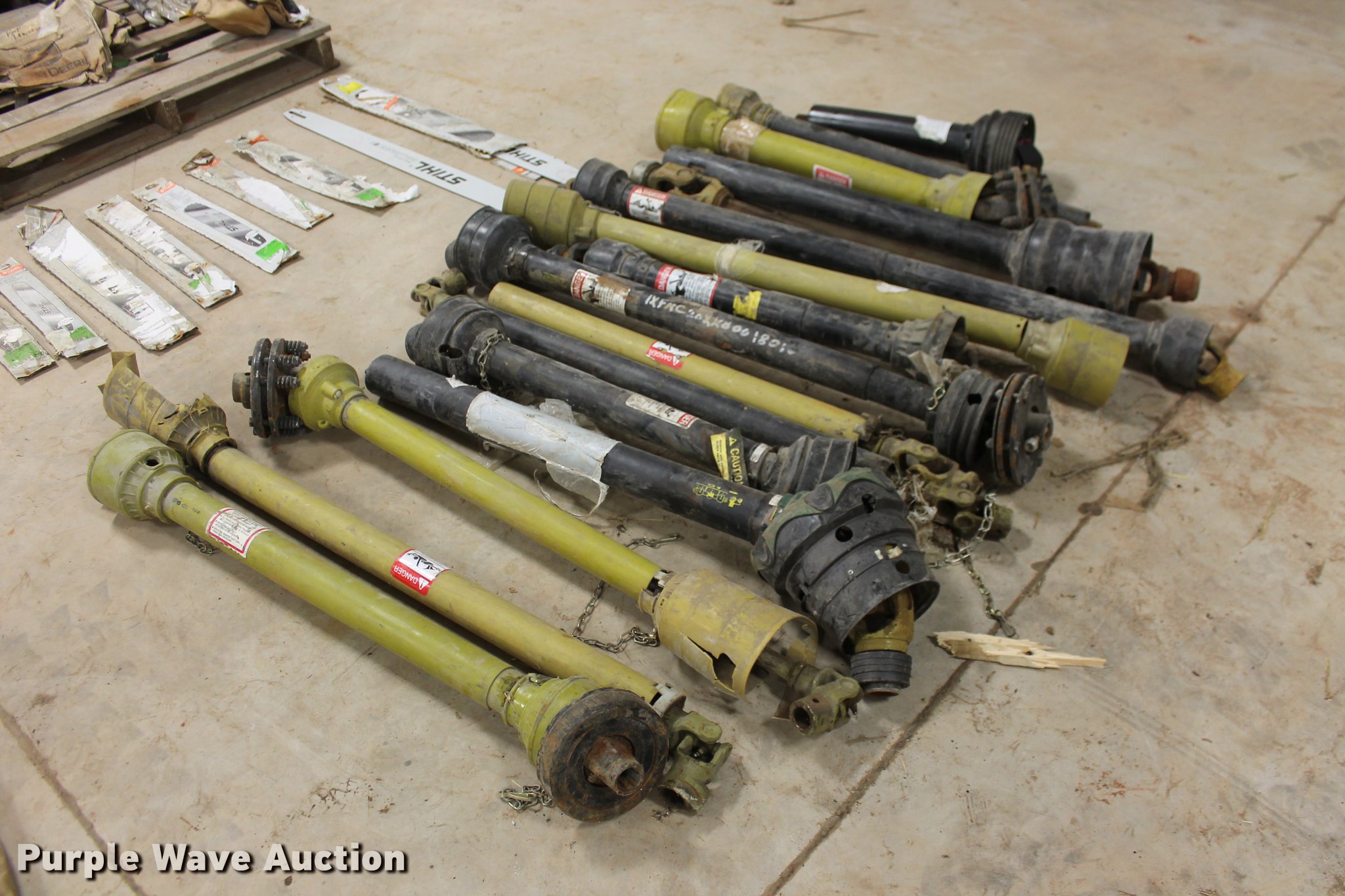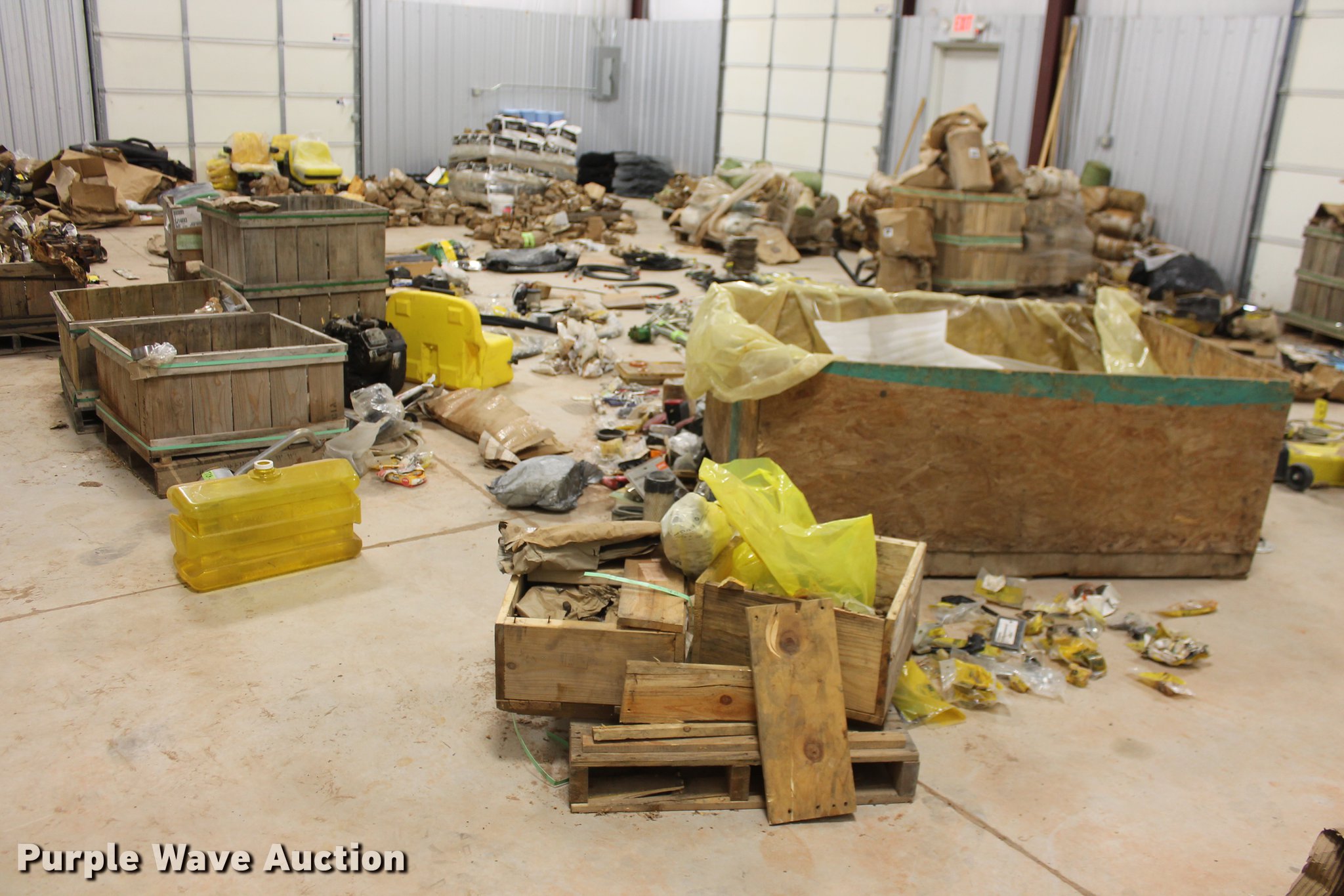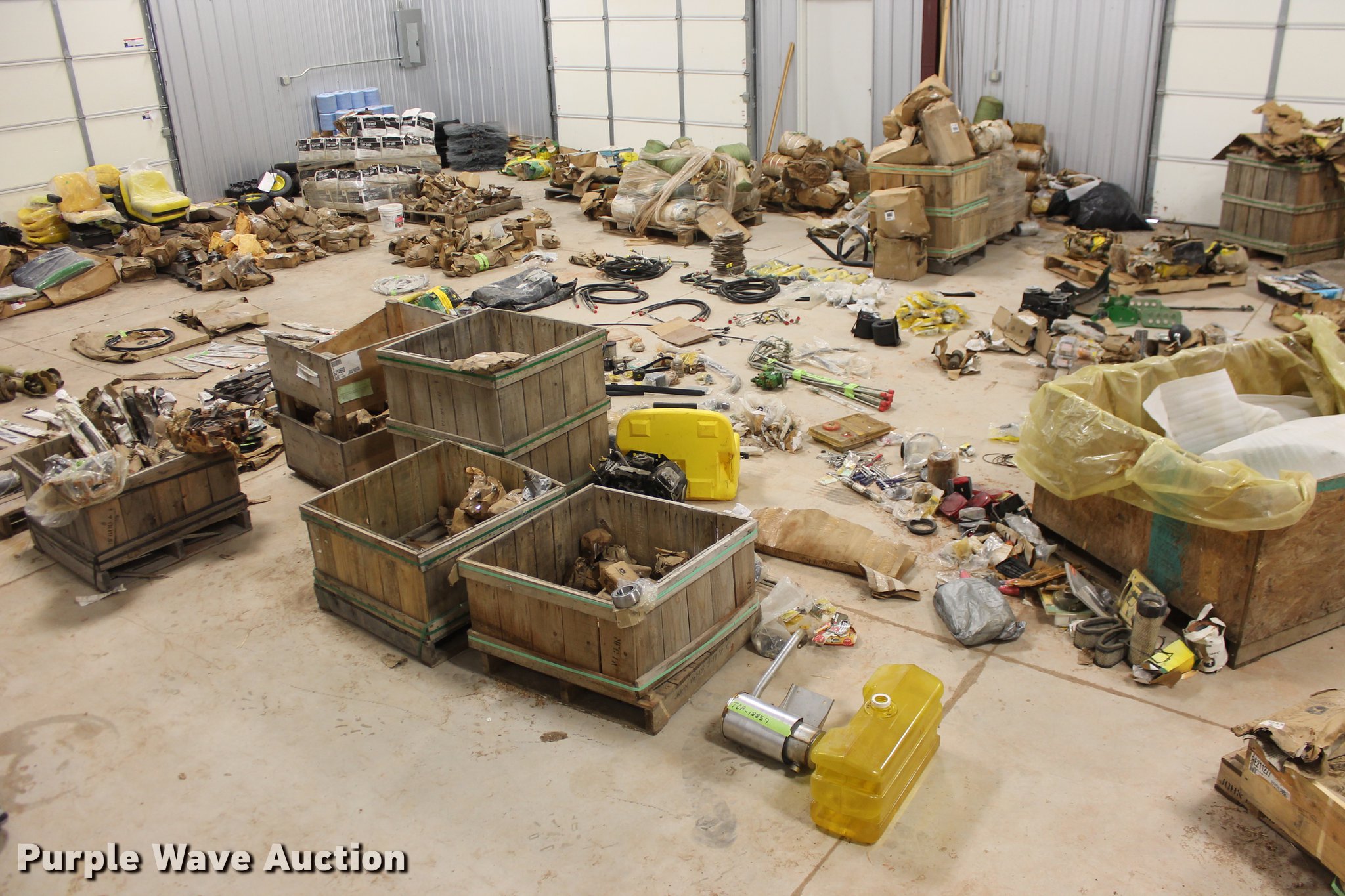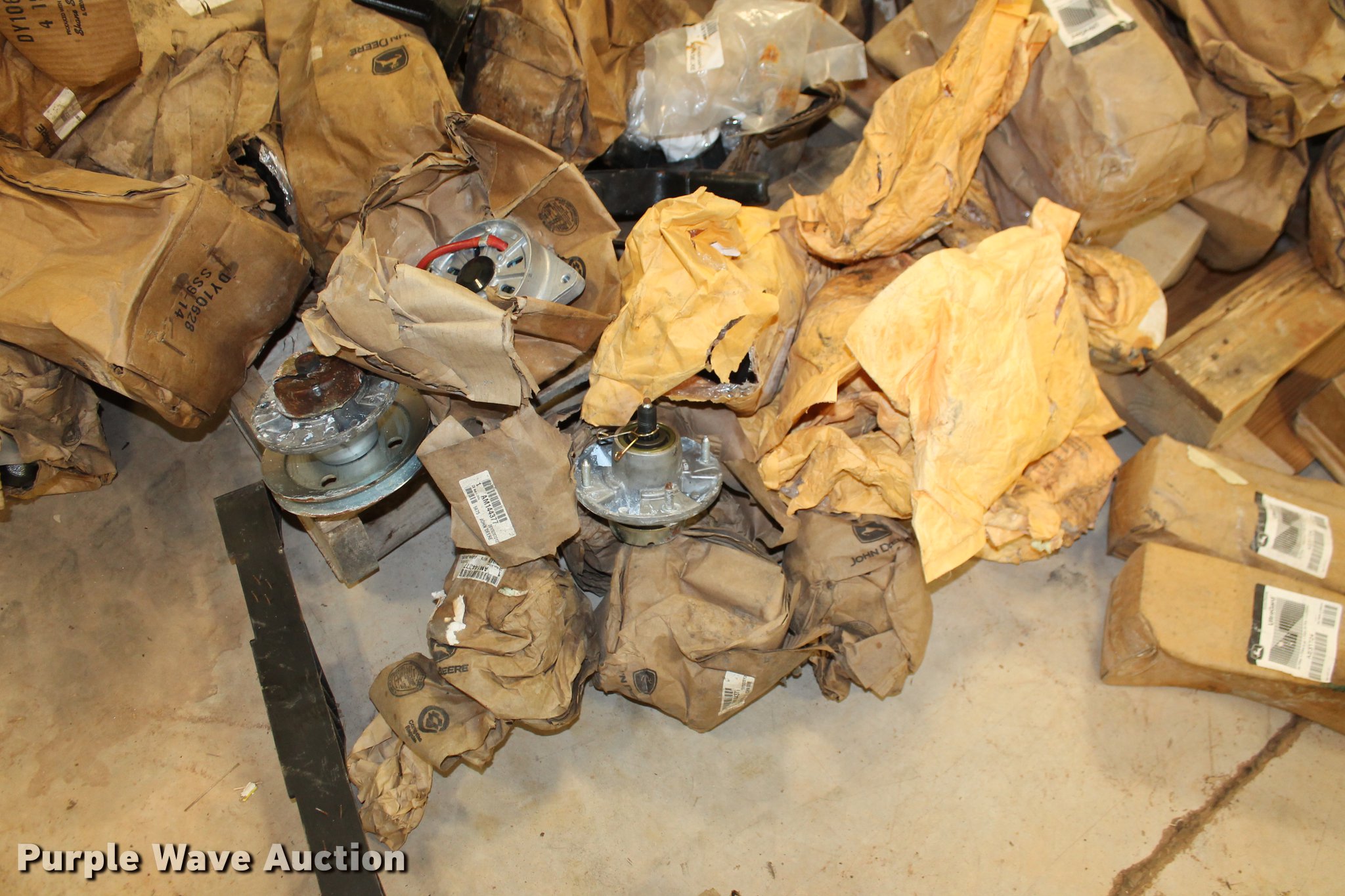 Purple Wave is selling a used Tools in Oklahoma. This item is a John Deere parts and hardware with the following: Drivelines, PTO shafts, Saw blades, Equipment seats, Bale twine, Gears, Pulleys, Bearings, Spindles, Cables and more, Unused