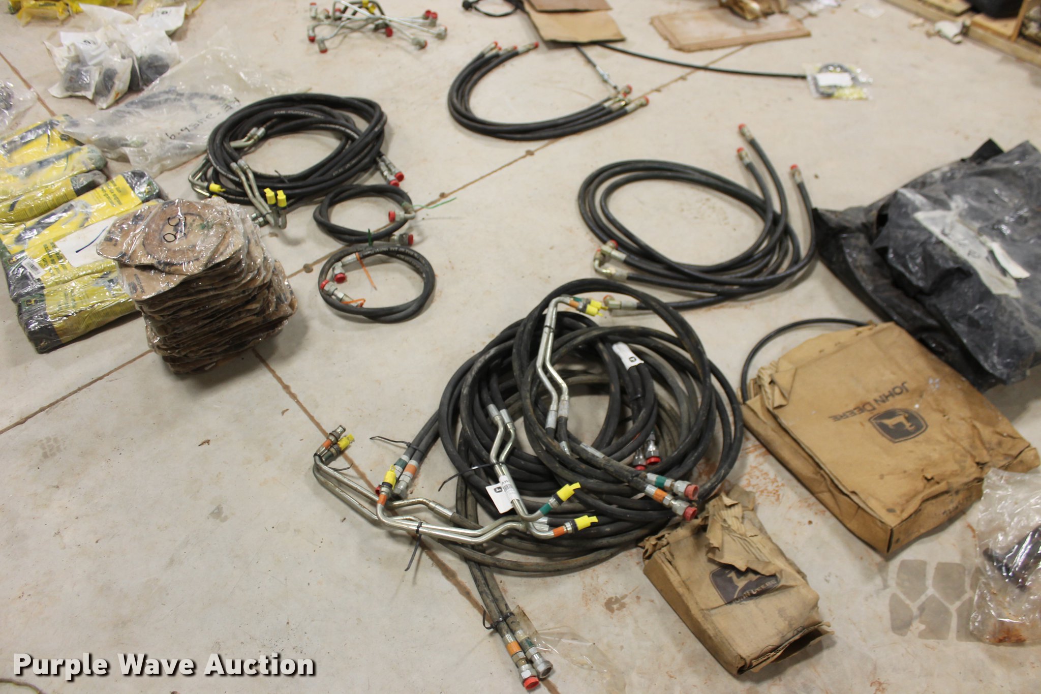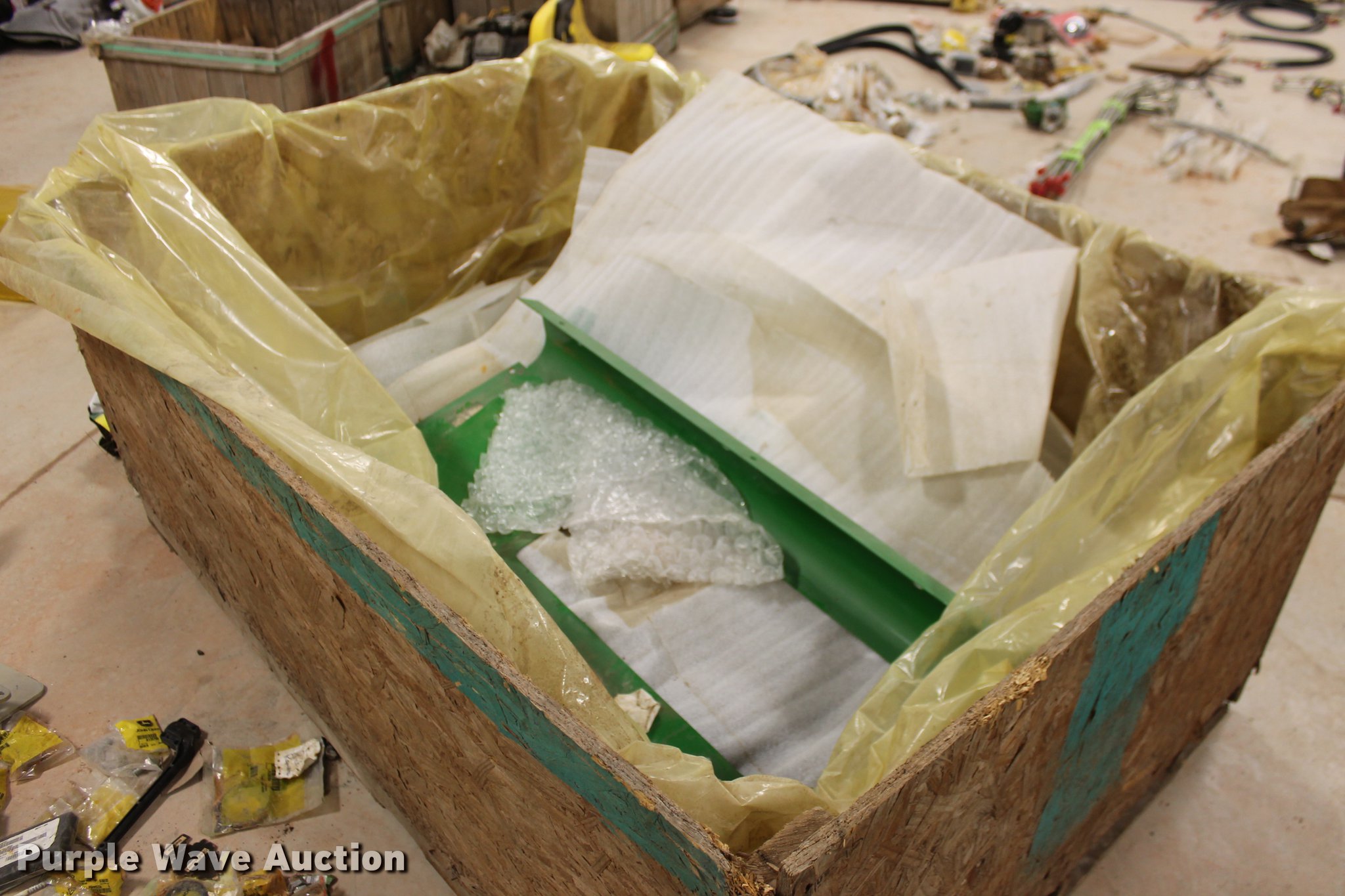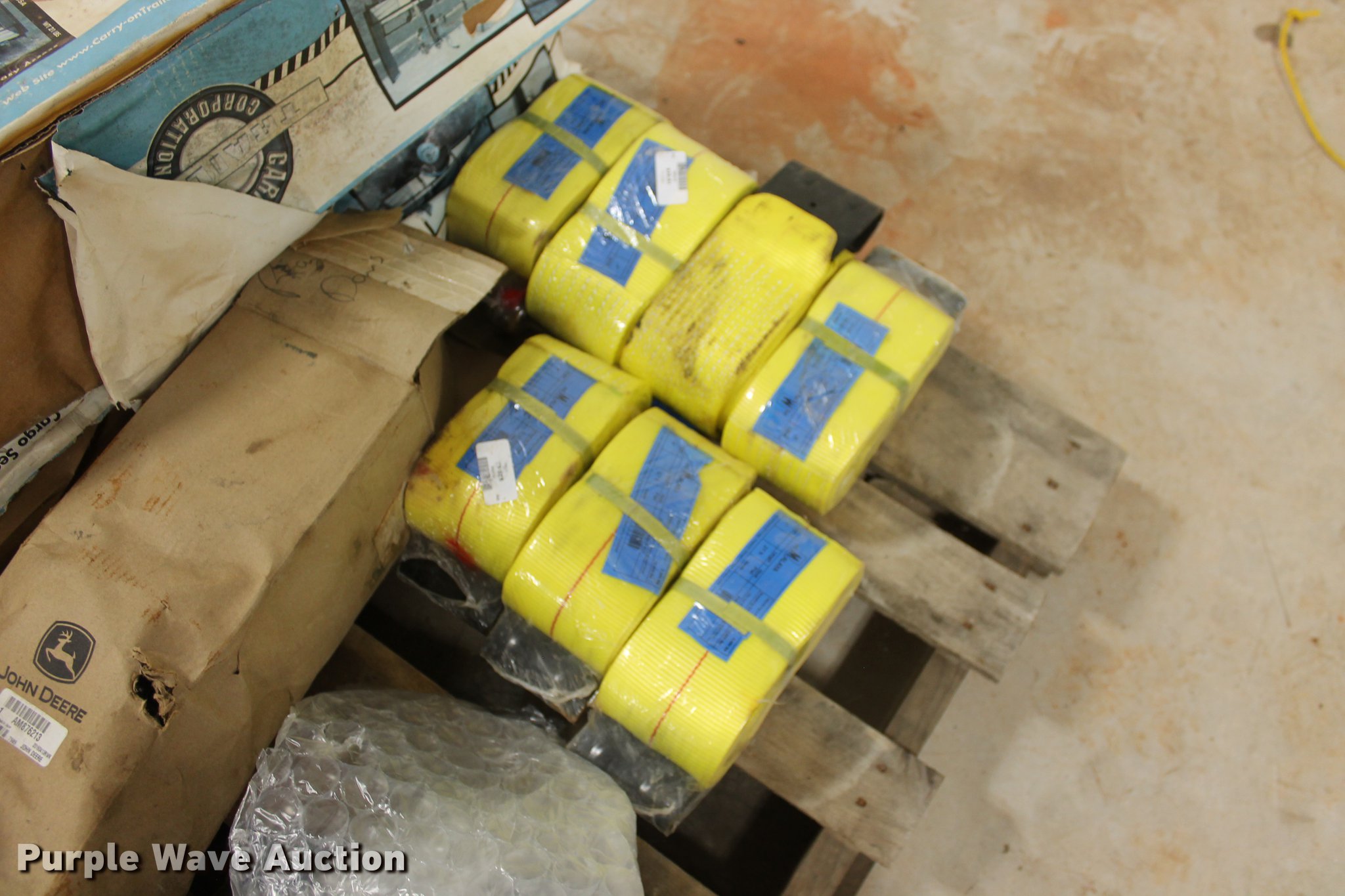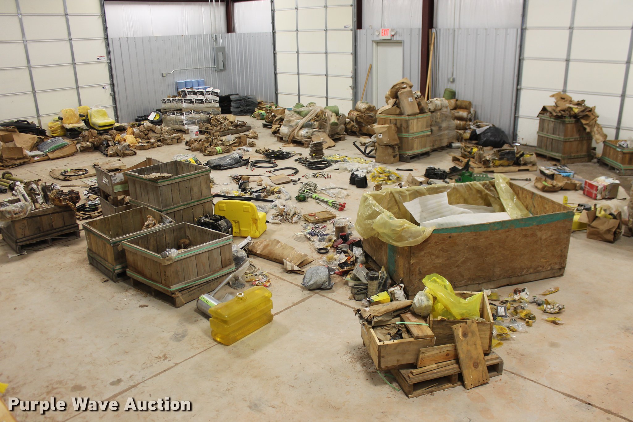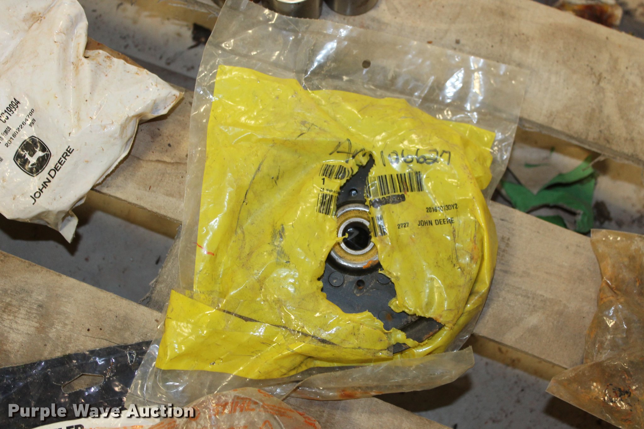 Purple Wave is selling a used Tools in Oklahoma. This item is a John Deere parts and hardware with the following: Drivelines, PTO shafts, Saw blades, Equipment seats, Bale twine, Gears, Pulleys, Bearings, Spindles, Cables and more, Unused