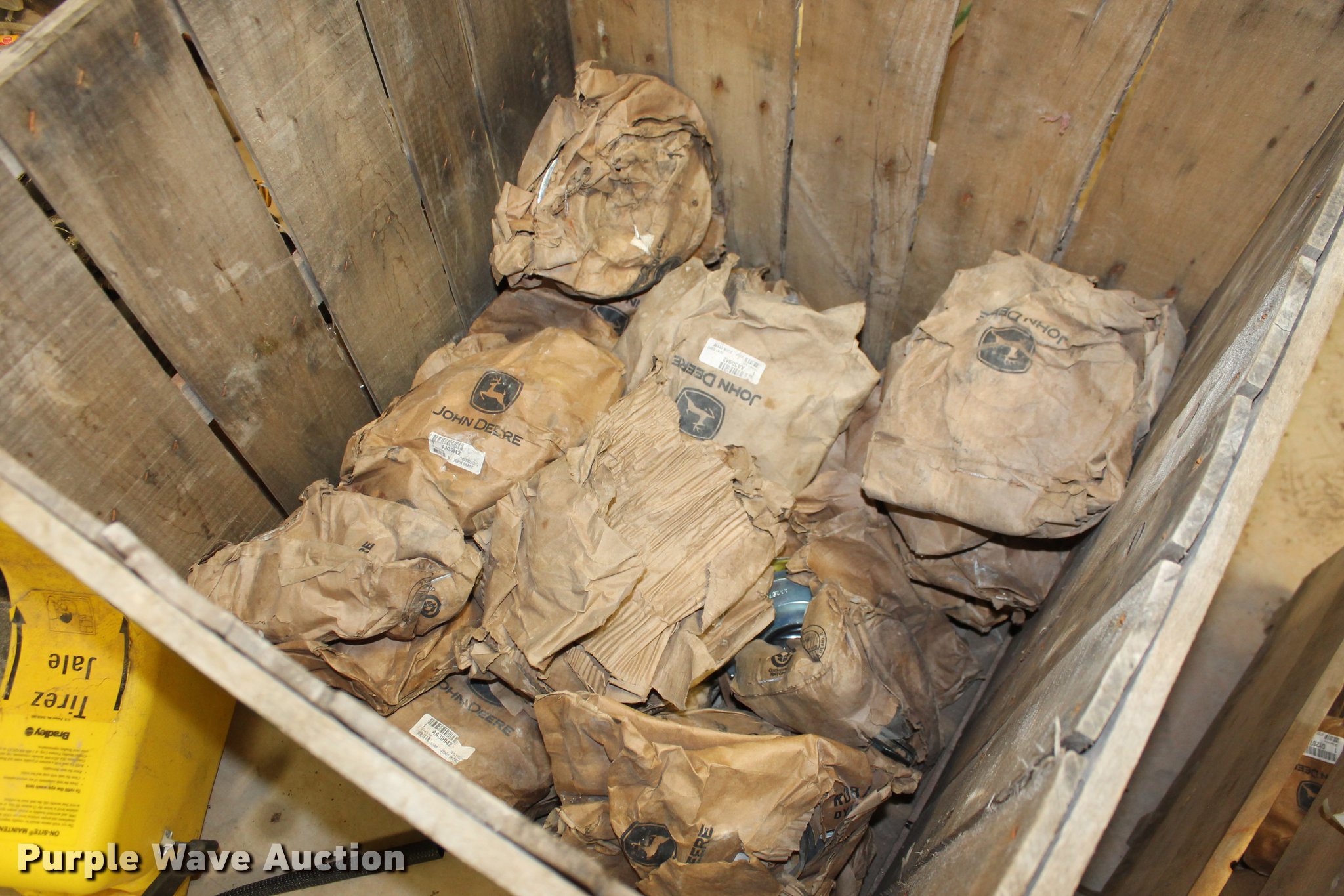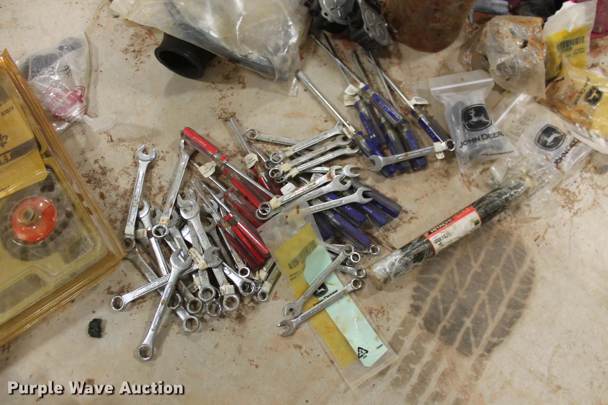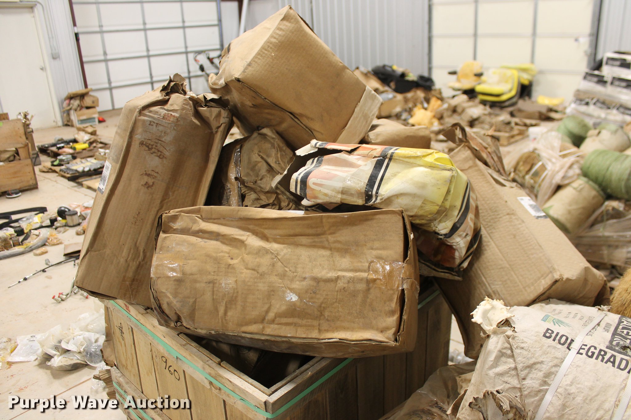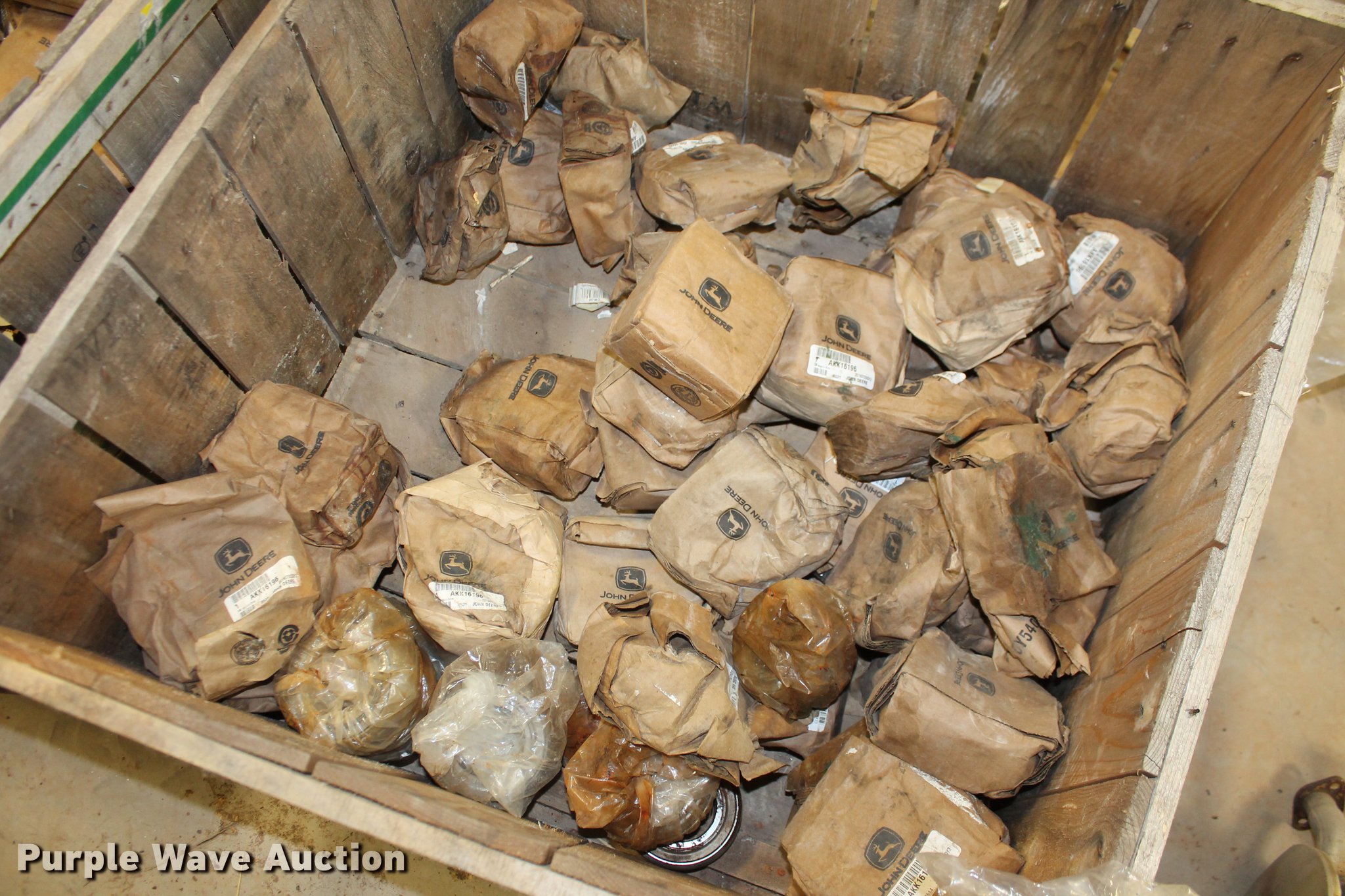 Purple Wave is selling a used Tools in Oklahoma. This item is a John Deere parts and hardware with the following: Drivelines, PTO shafts, Saw blades, Equipment seats, Bale twine, Gears, Pulleys, Bearings, Spindles, Cables and more, Unused
