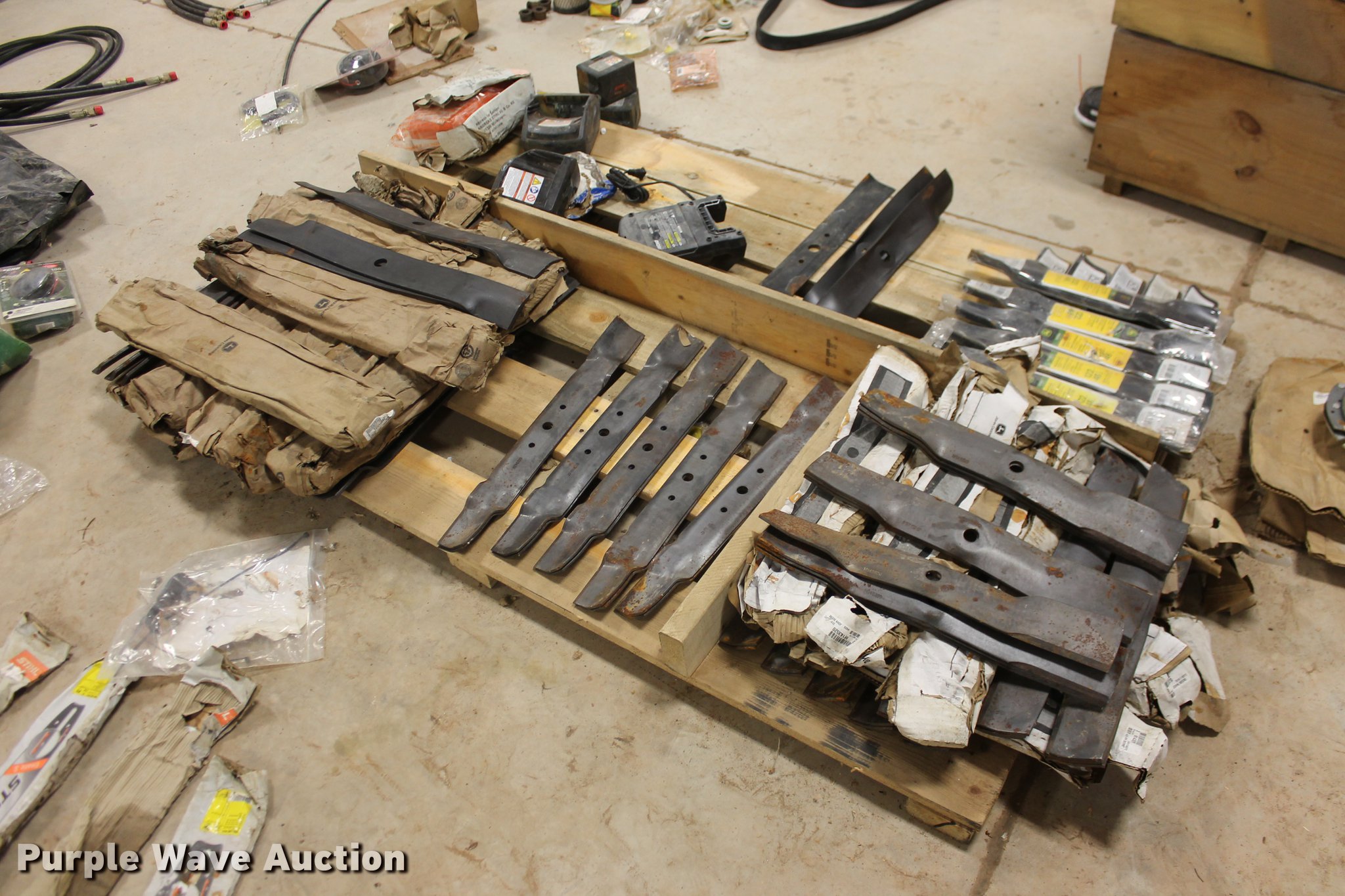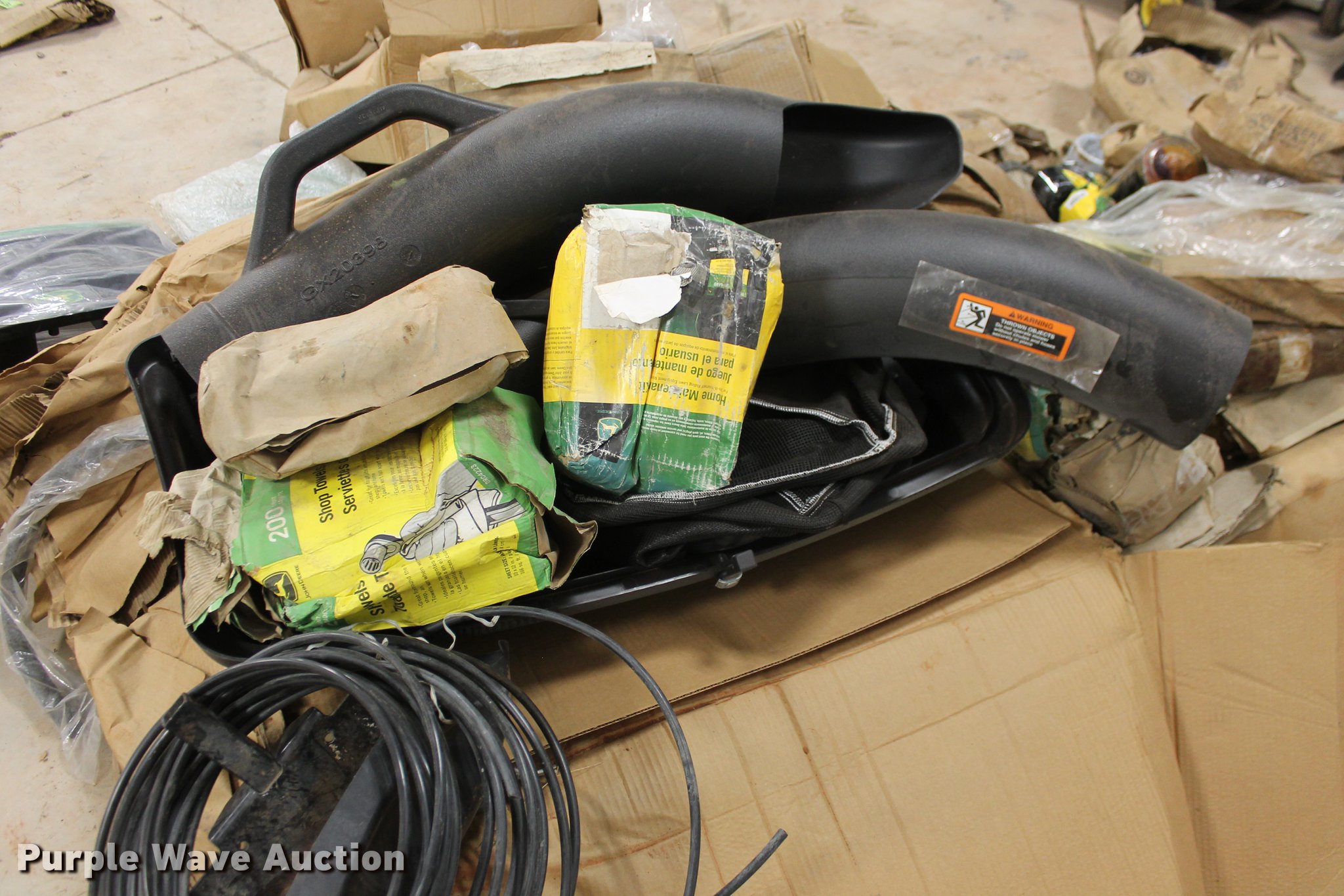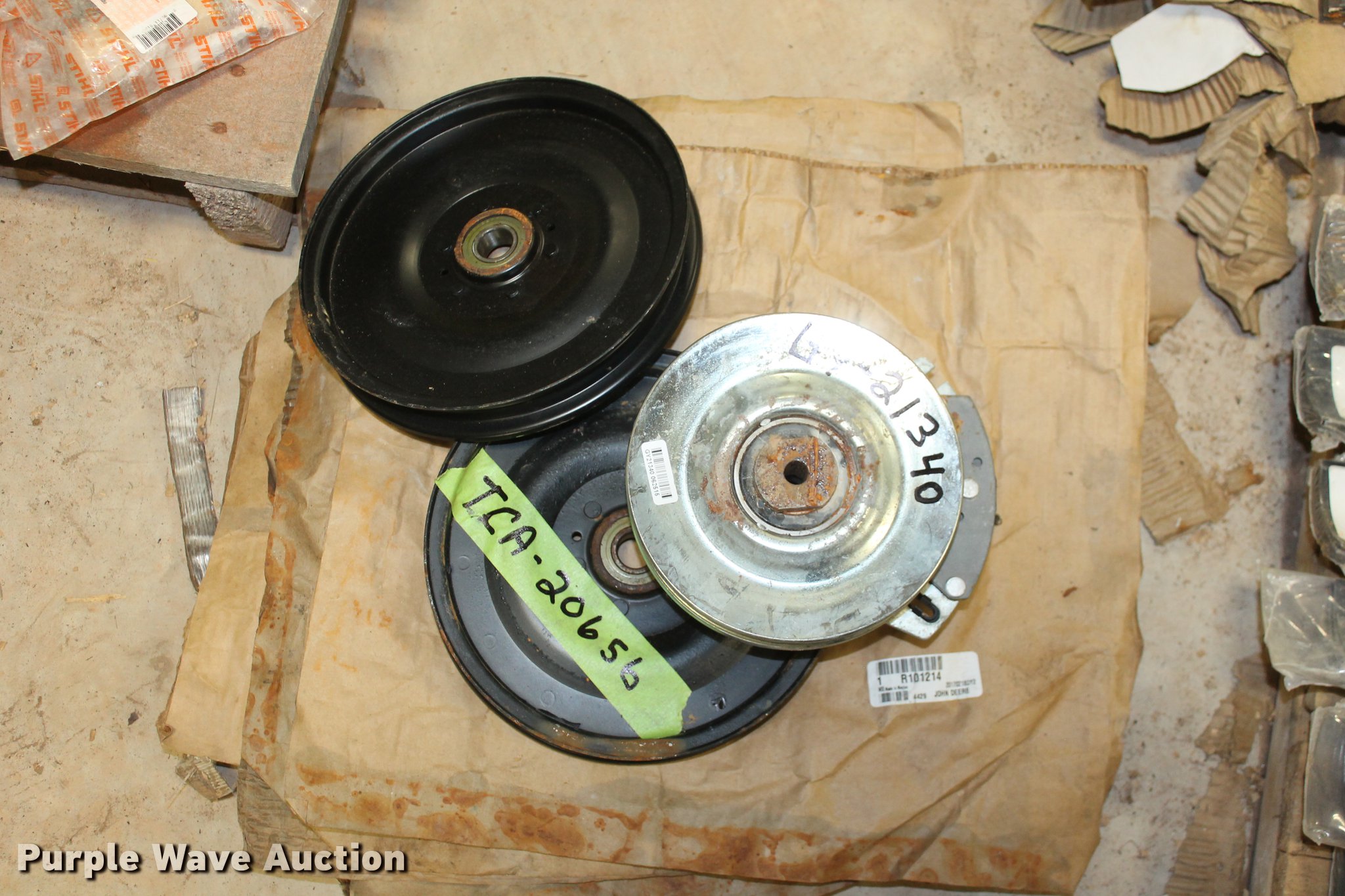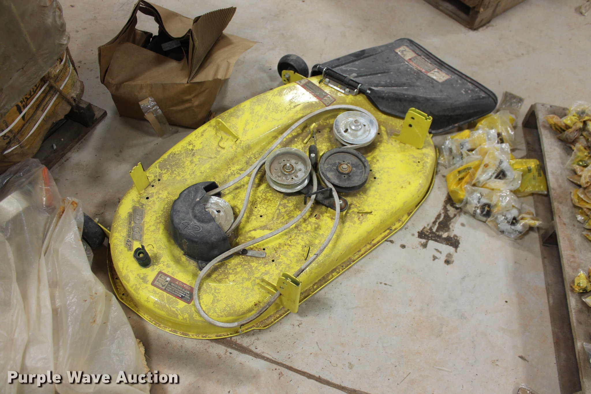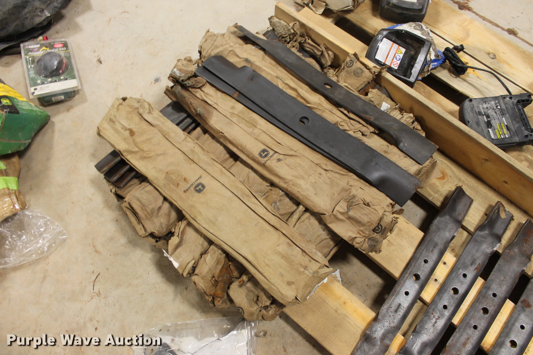 Purple Wave is selling a used Tools in Oklahoma. This item is a John Deere parts and hardware with the following: Drivelines, PTO shafts, Saw blades, Equipment seats, Bale twine, Gears, Pulleys, Bearings, Spindles, Cables and more, Unused