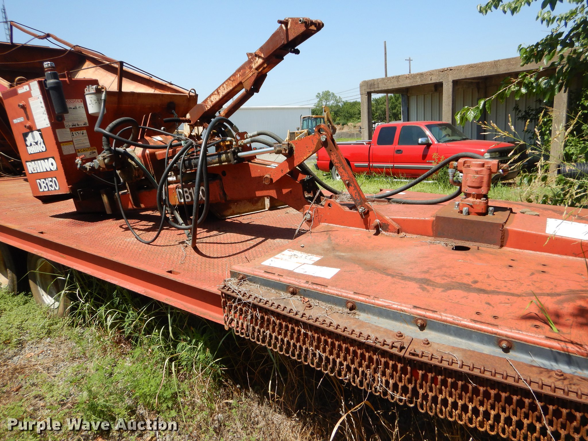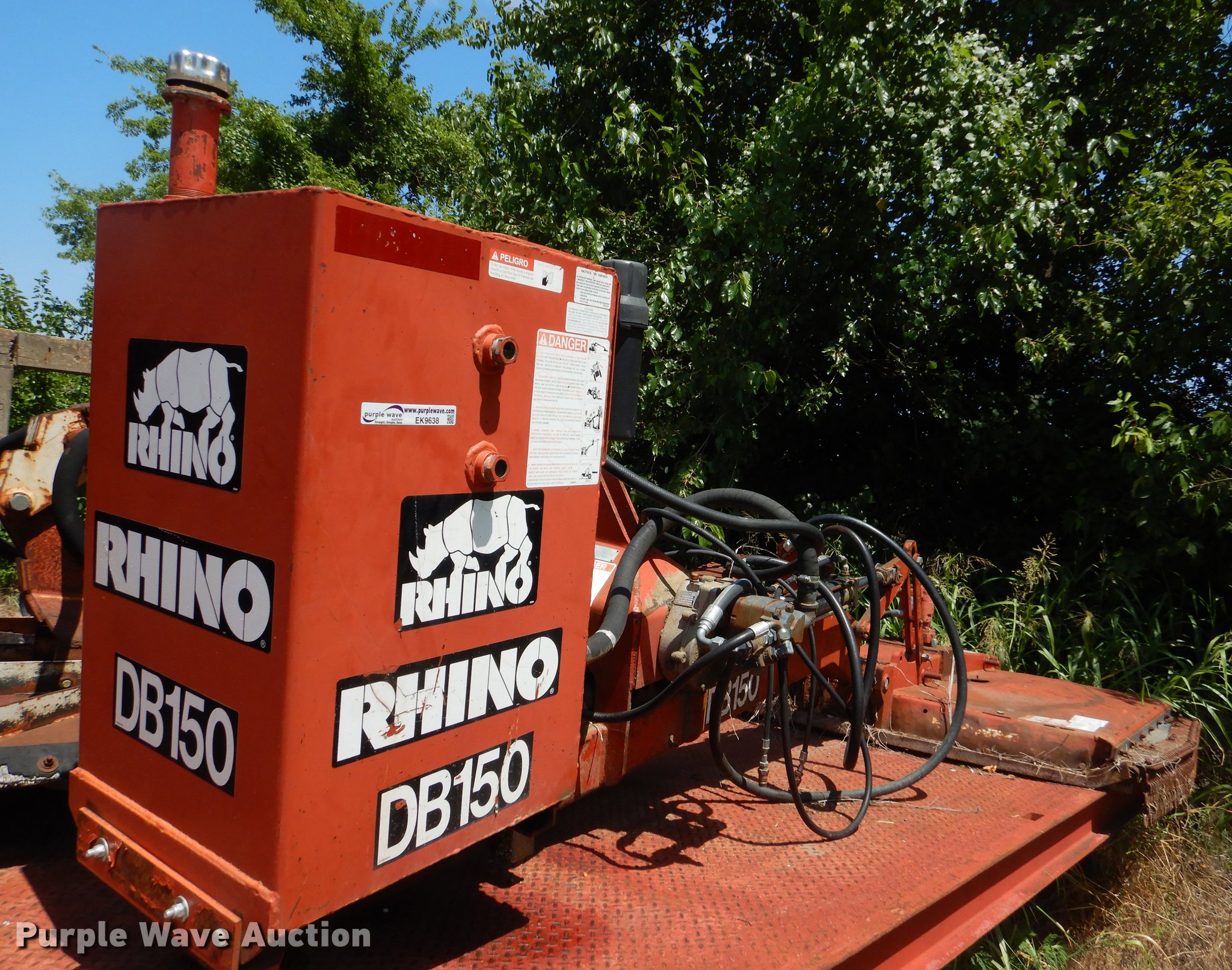 Purple Wave is selling a used Mower, Cutter, Shredder in Oklahoma. This item is a Rhino DB150 side boom mower with the following: 6'W deck, Hydraulic drive, Three point, Unknown operating condition, Serial 11633