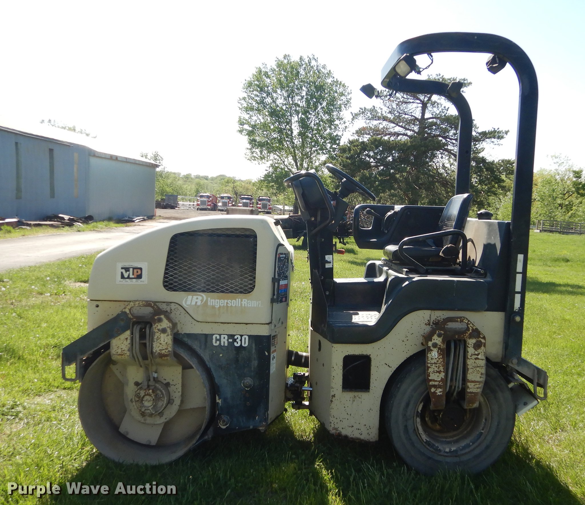 2003 Ingersoll Rand CR30 single drum roller. 5,972 hours on meter, Kubota 1.9L four cylinder diesel engine 31 kW, Hydrostatic transmission, OROPS, Vandal cover, 51.5"W x 28" diameter smooth drum Single vibratory system, Front and rear drum scrapers, Front and rear water application, (4) 7.50-15 tires, Serial 172770. Bonner Springs, KS 66012