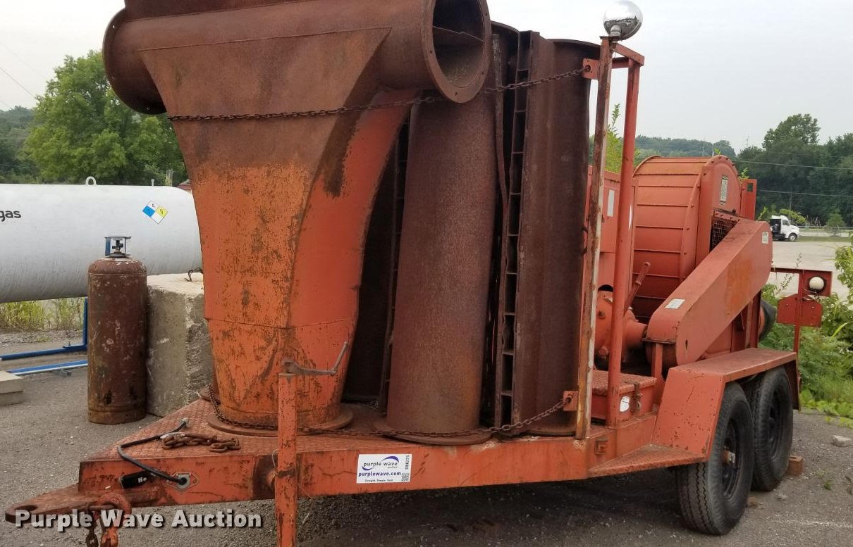 Purple Wave is selling a used Tools in Kansas. This item is a Air burner air curtain with the following: Model T35C, 7,562 hours on meter, John Deere four cylinder diesel engine, 30' curtain length, (3) 8'L x 18" pipes, (5) 5' x 13" curtains, 7.00-15 tires, Serial 758