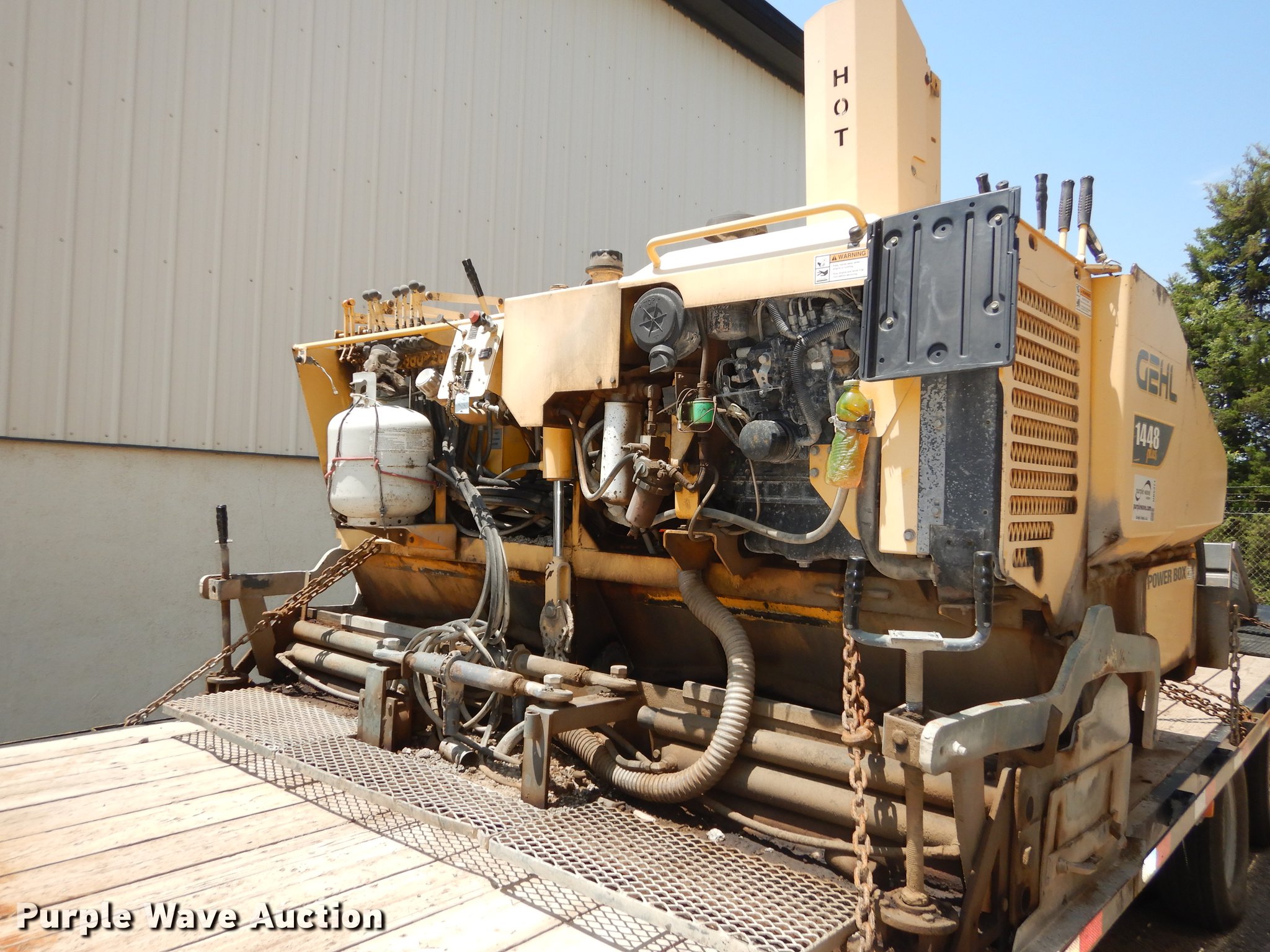 Purple Wave is selling a used Paver or Screed in Kansas. This item is a Gehl 1448 Plus Power Box paver with the following: 1,044 hours on meter, Three cylinder engine, Propane tank, 102"W hopper, Extends to 144"W, 12"W tracks, Serial YZ0818208