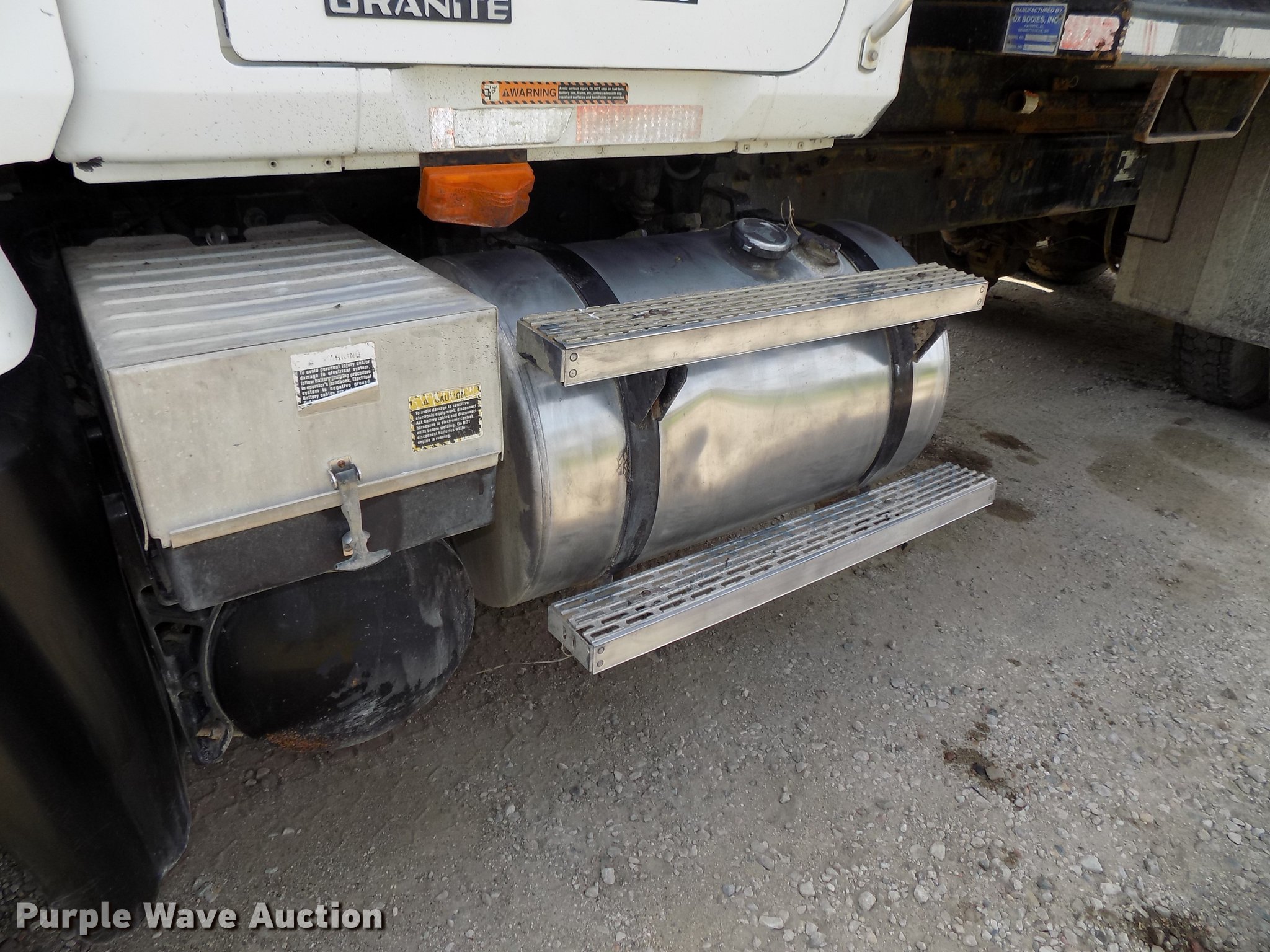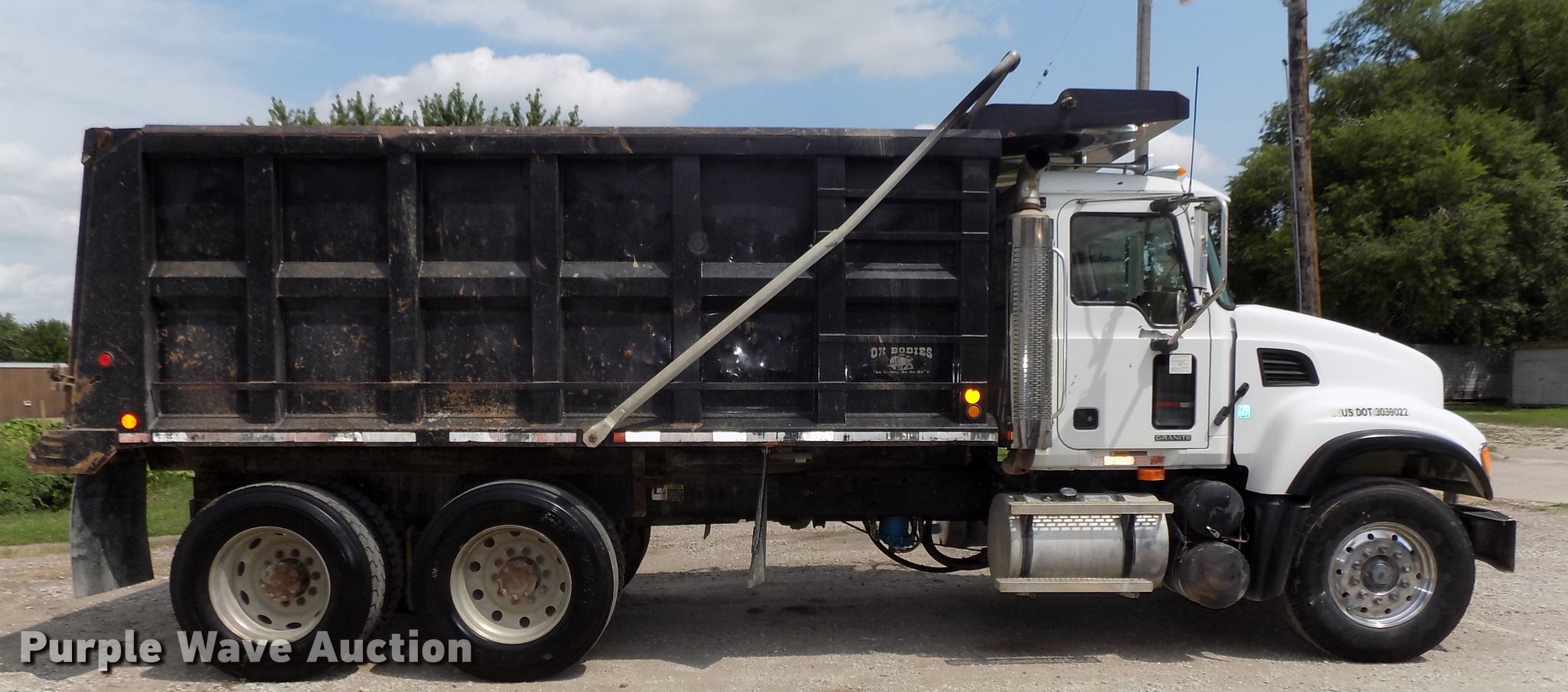 Purple Wave is selling a used Construction Dump Truck in Iowa. This item is a 2004 Mack CV713 Granite dump truck with the following: 220,226 miles on odometer, 10,293 hours on meter, Miles and hours may vary, still in use, Mack AMI 12.0L L6 turbo diesel engine, 400 HP, Serial 3J0222, Maxitorque T310 eight speed manual transmission, Tandem axle, AC and heat, Tilt, Telescoping steering wheel, Cruise, Air suspension seat, Brake controller, PTO, Wet kit, Exterior visor, Chrome bumper, Single rear exhaust stack, Ox Bodies steel dump bed, 16'L x 96"W, 114"H from ground to top of side, 21 yd. capacity, Liner, Roll tarp, Single ram hoist, Air operated end gate, Serial 503701AL, Dual fuel tanks, Trailer wiring, Camelback suspension, Air brakes, 214" wheelbase, Steel inner wheels, Aluminum outer wheels, 385/65R22.5 front tires, 11R24.5 rear tires, Unit# 04