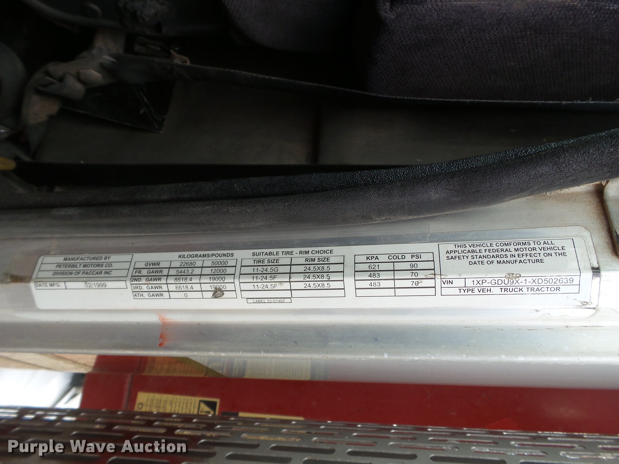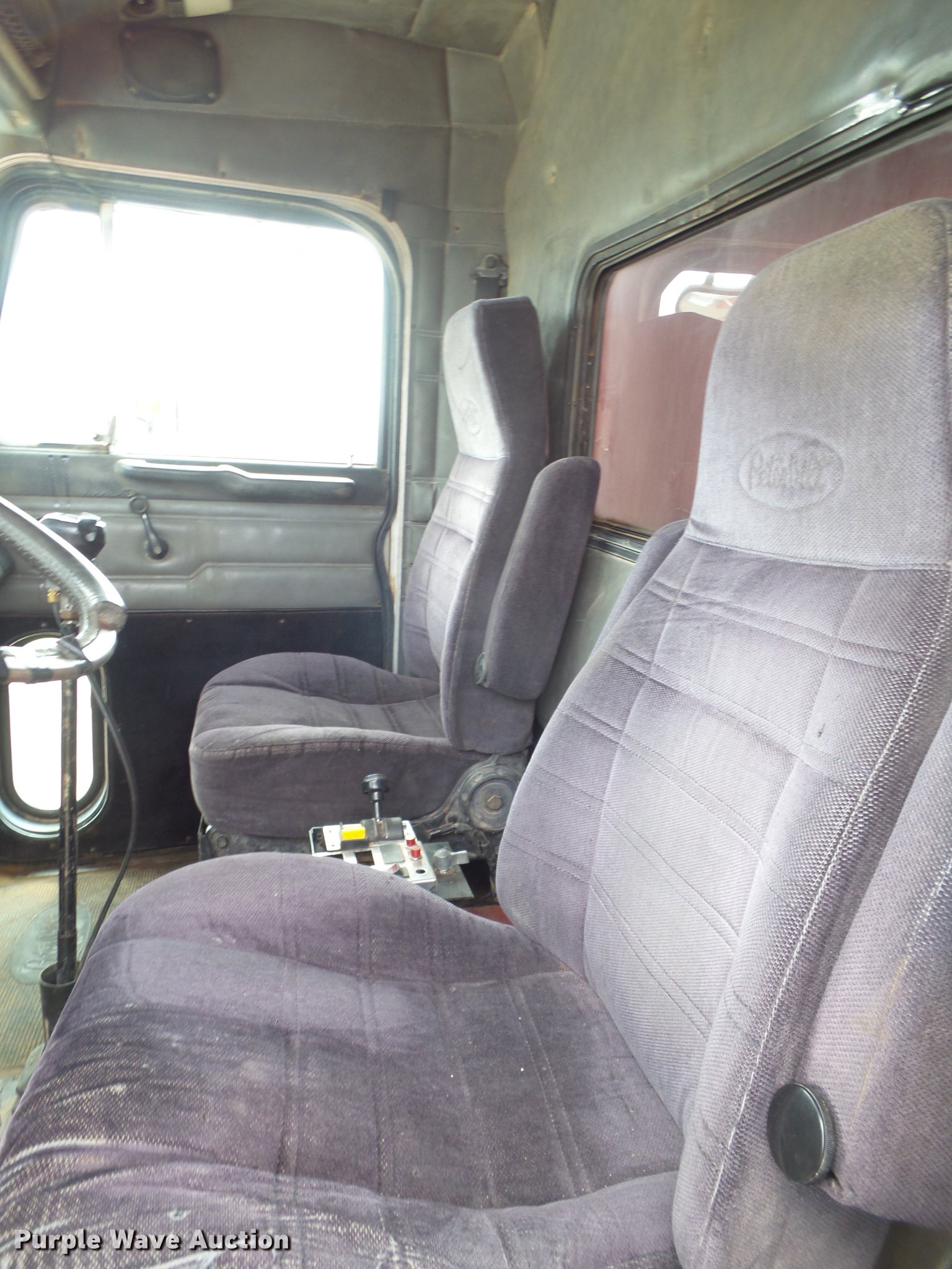 Purple Wave is selling a used Construction Dump Truck in Texas. This item is a 1999 Peterbilt 385 dump truck with the following: 799,995 miles on odometer, Caterpillar C12 six cylinder turbo diesel engine, 395 HP, Serial 2K503707, Eaton Fuller eight speed manual trasnmission, Tandem axle, AC and heat, AM/FM, Air suspension seat, PTO, Exterior visor, 16'L x 96"W steel dump bed, 42" side height, Single ram hoist, Air operated end gate, Roll tarp, Dual fuel tanks, Camelback suspension, Air brakes, 315/80R22.5 front tires, 11R22.5 rear tires, GVWR 50,000 lbs