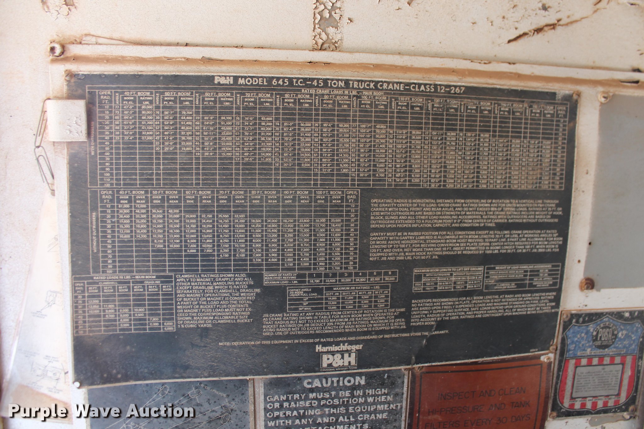 1969 P & H 645TC crane has sold in Oklahoma City, Oklahoma for $2475. Item DD4985 sold on August 30th, 2018.