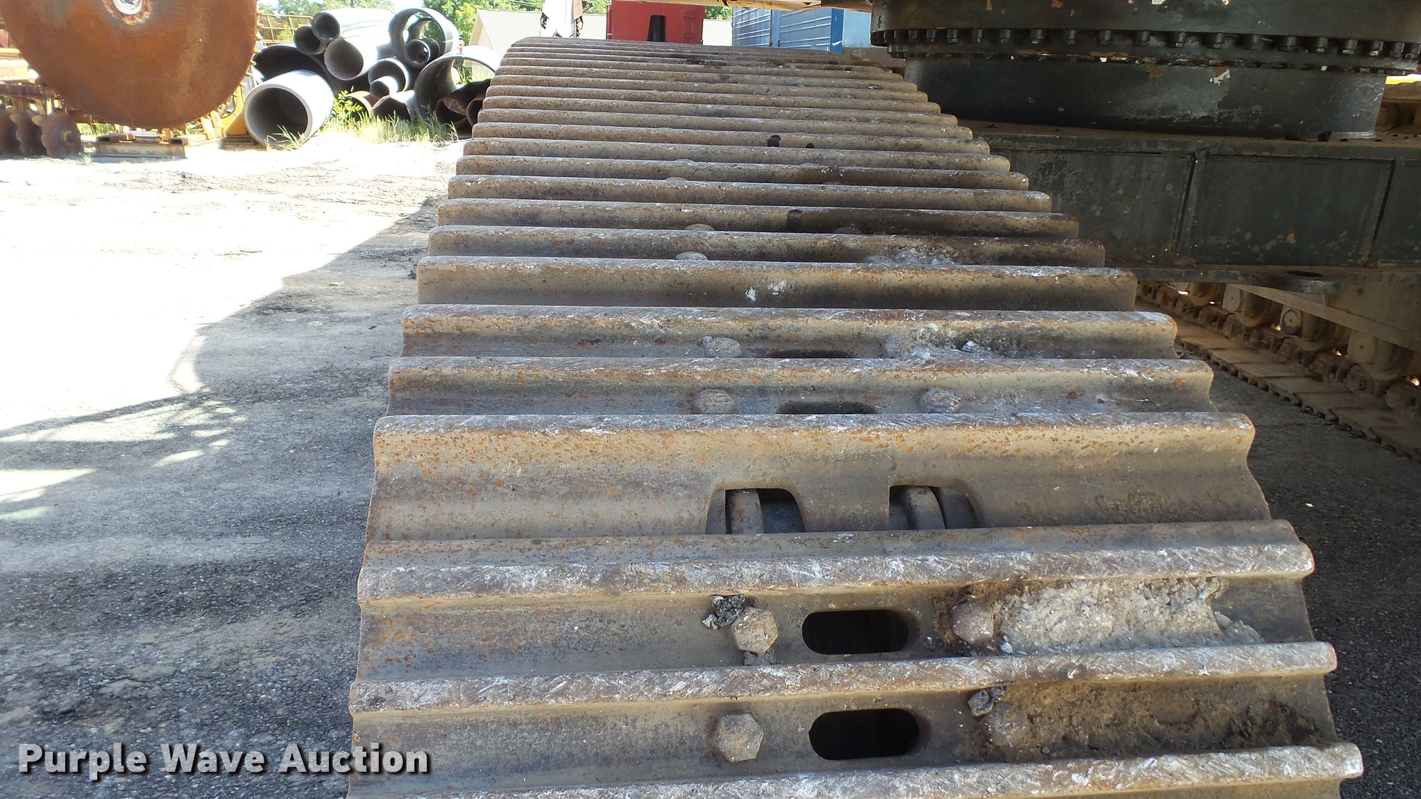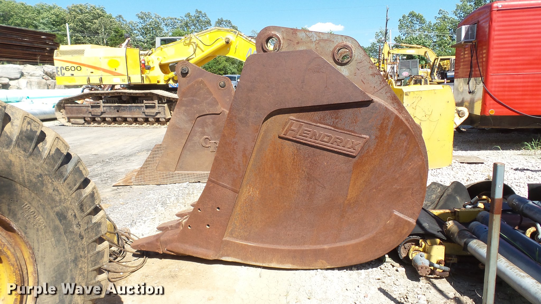 Purple Wave is selling a used Hydraulic Excavator in Missouri. This item is a 1998 New Holland EC600 excavator with the following: 11,136 hours on meter, Cummins N14 six cylinder turbo diesel engine, 400 HP, Two speed hydrostatic transmission, EROPS, AC and heat, Suspension seat, Front work lights, Wipers, Standard boom, 11'3" stick length, Hendrix 72"W bucket, (5) Hensley teeth, Top pin, 5.5 cu. yd. capacity, C&P Enterprises 36"W bucket, (4) teeth, 1.961 cu. yd. capacity, Removable counterweight, 29.5"W steel triple grouser track pads, Remanufactured engine installed at 6,146 hours, Serial 76027, Unit# 182