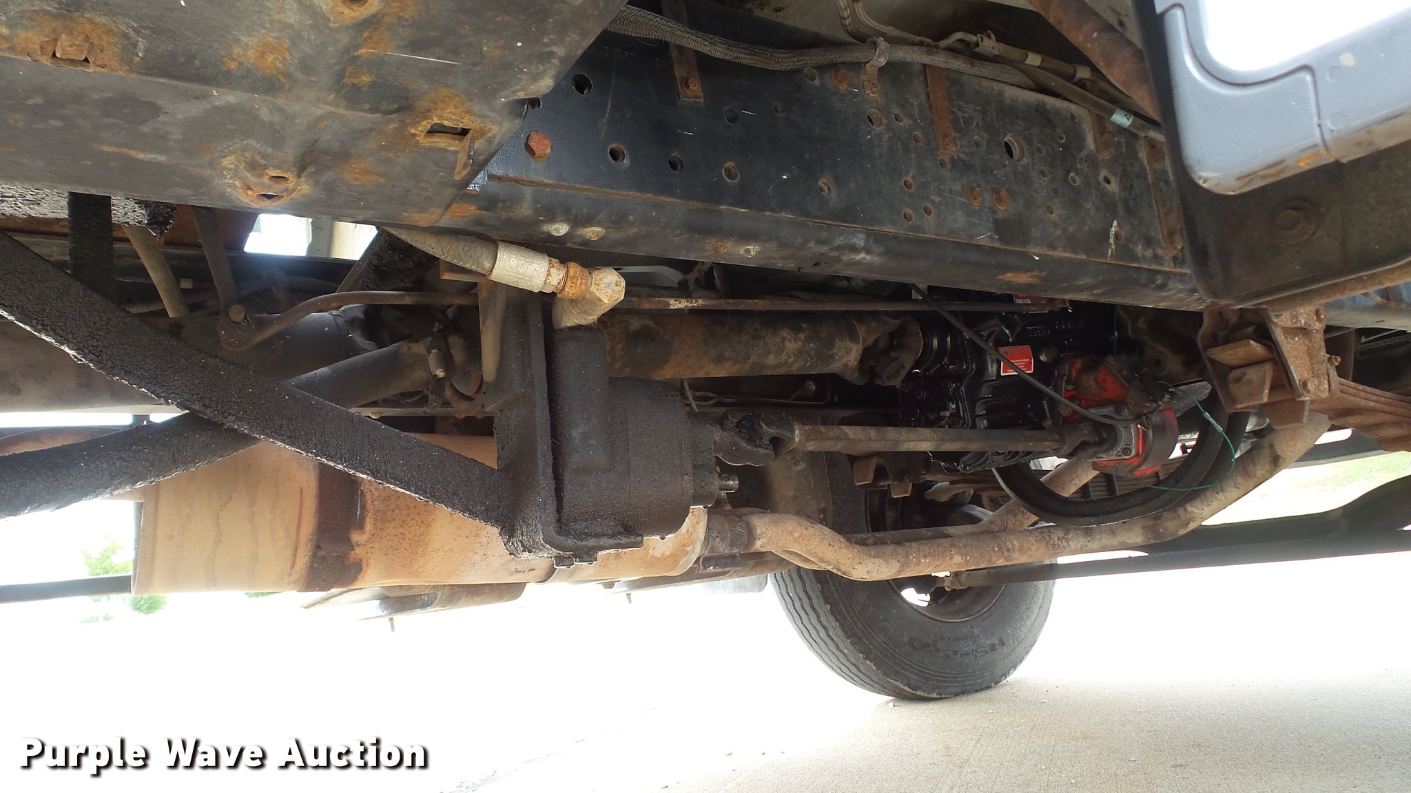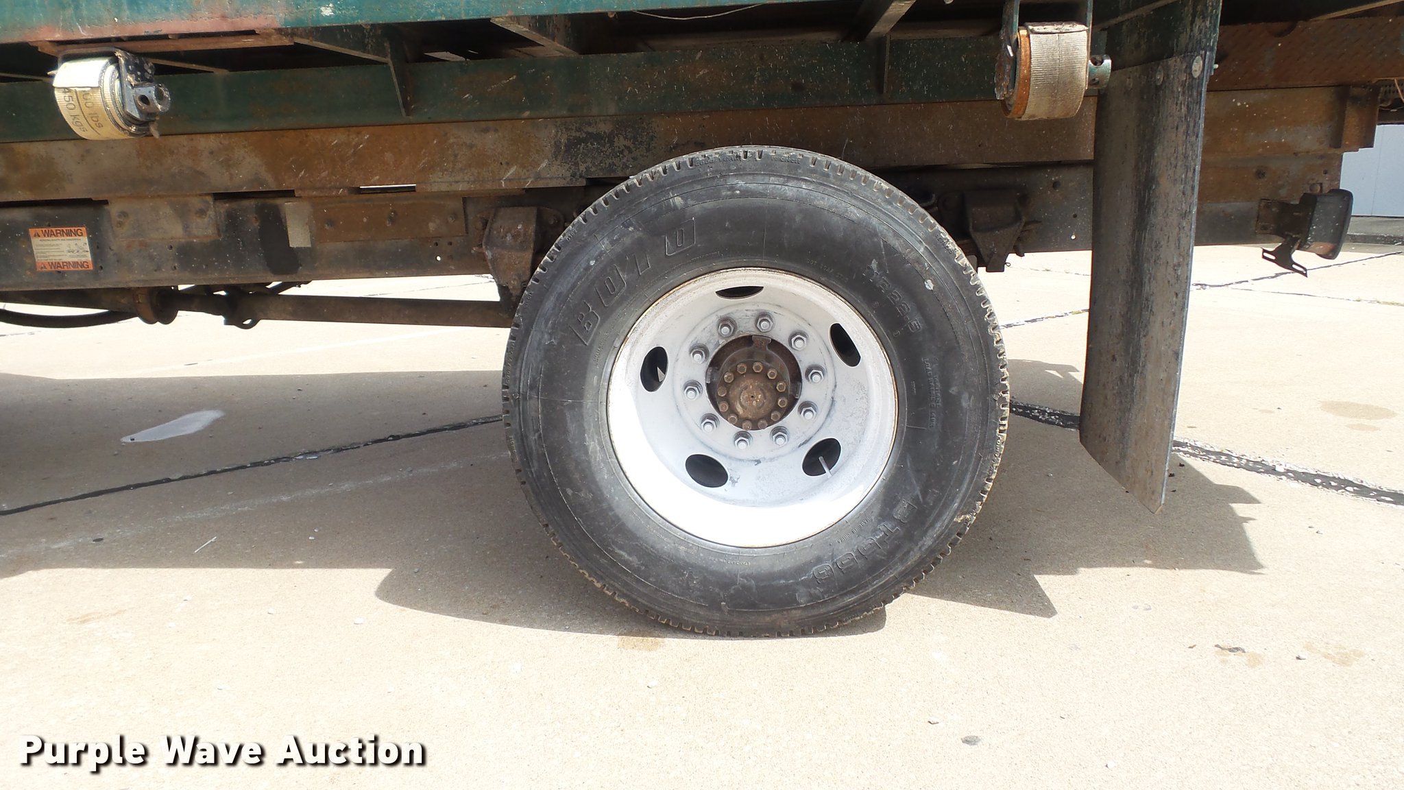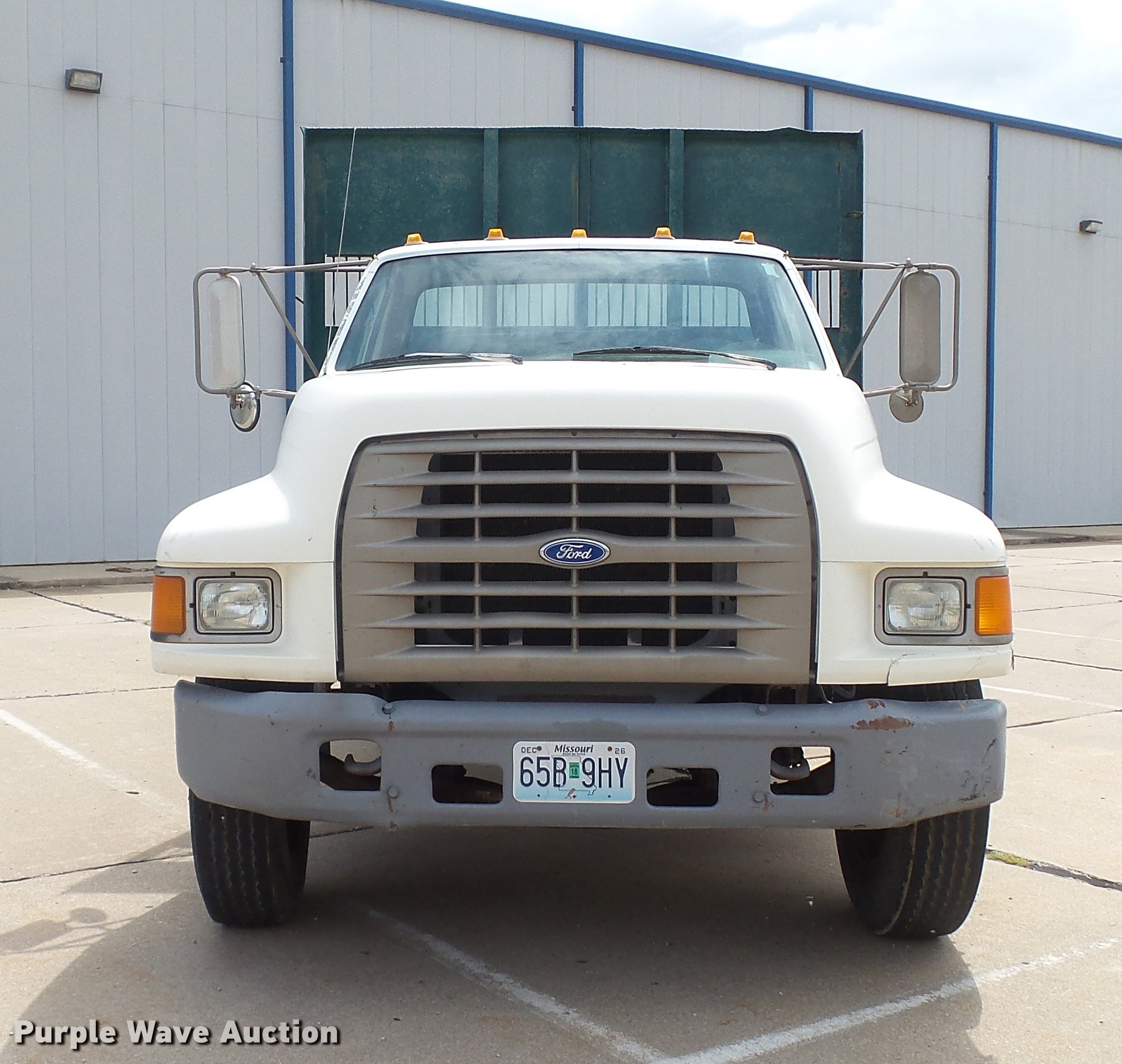 Purple Wave is selling a used Construction Dump Truck in Missouri. This item is a 1995 Ford F700 flat dump bed truck with the following: 67,379 miles on odometer, 7.0L V8 gas engine, Five speed manual transmission, Model FS4205BX, Two speed rear end, Single axle, Heat, AM/FM, PTO, Front tow hooks, 192"L x 95"W steel flatbed, 57" floor height, Dual ram scissor hoist, 13'10" lift height, (4) ratchet tie-downs, Stake side pockets, Rolling tailboard, Single fuel tank, 189" wheelbase, Spring suspension, Hydraulic brakes, 11R22.5 tires, GVWR 24,500 lbs, FAWR 7,000 lbs, RAWR 17,500 lbs, Hydraulic tank leaks, Non-operational radio, Unit# T-510