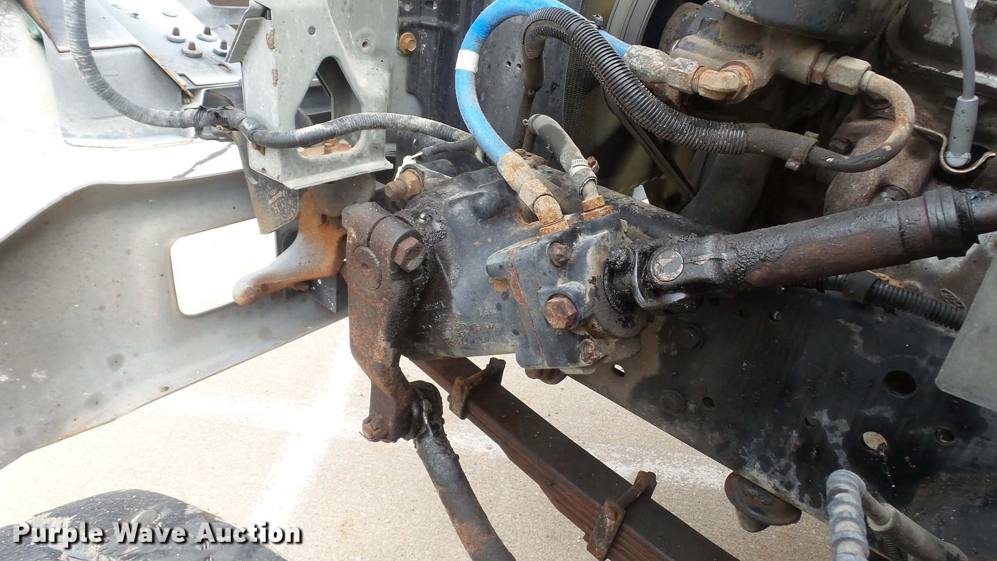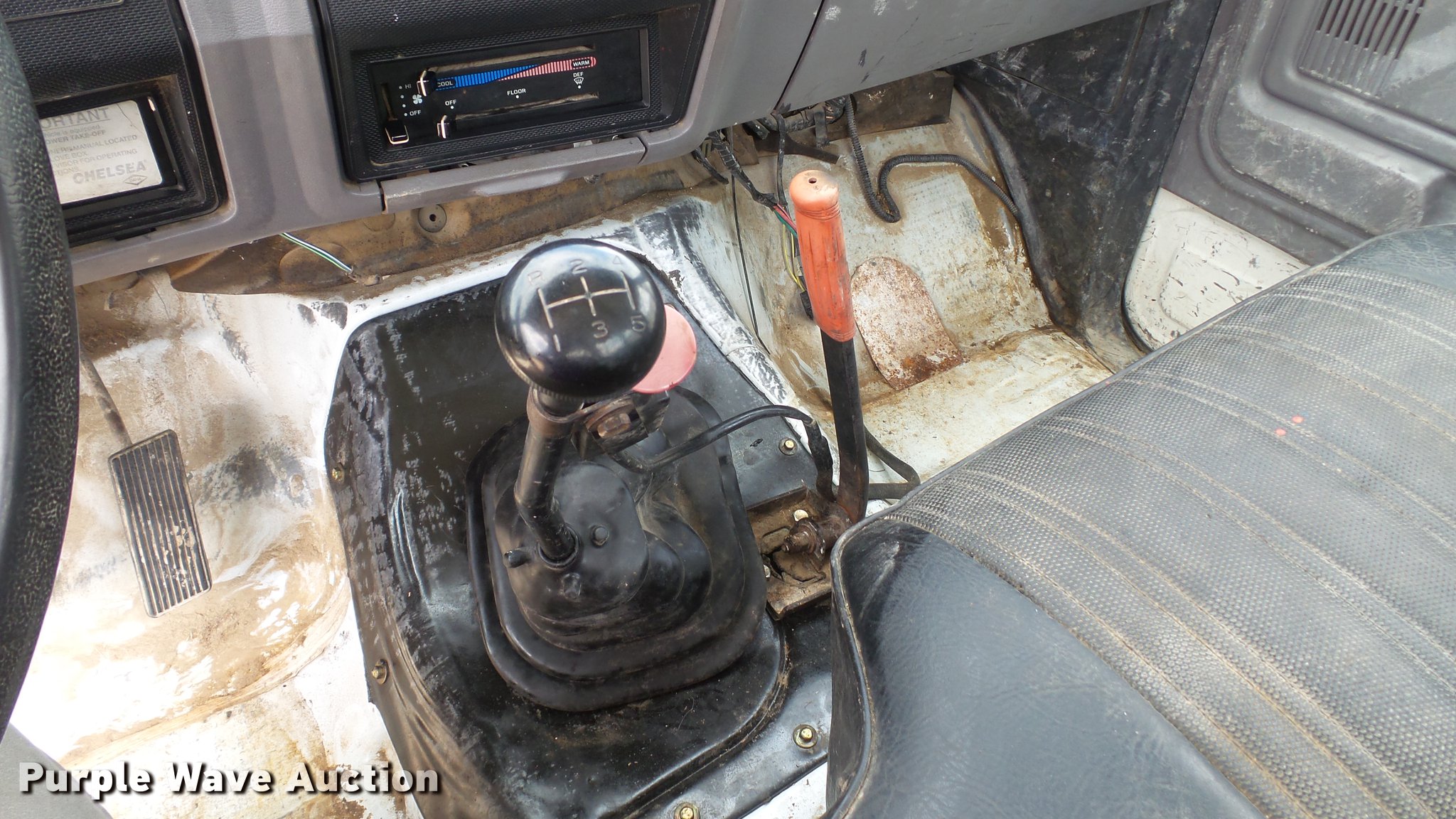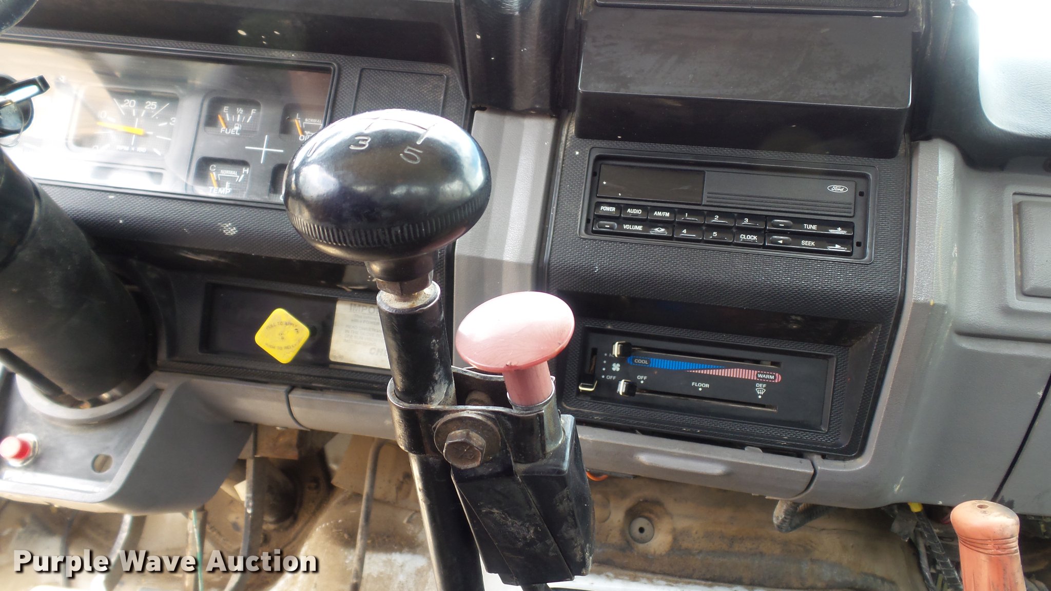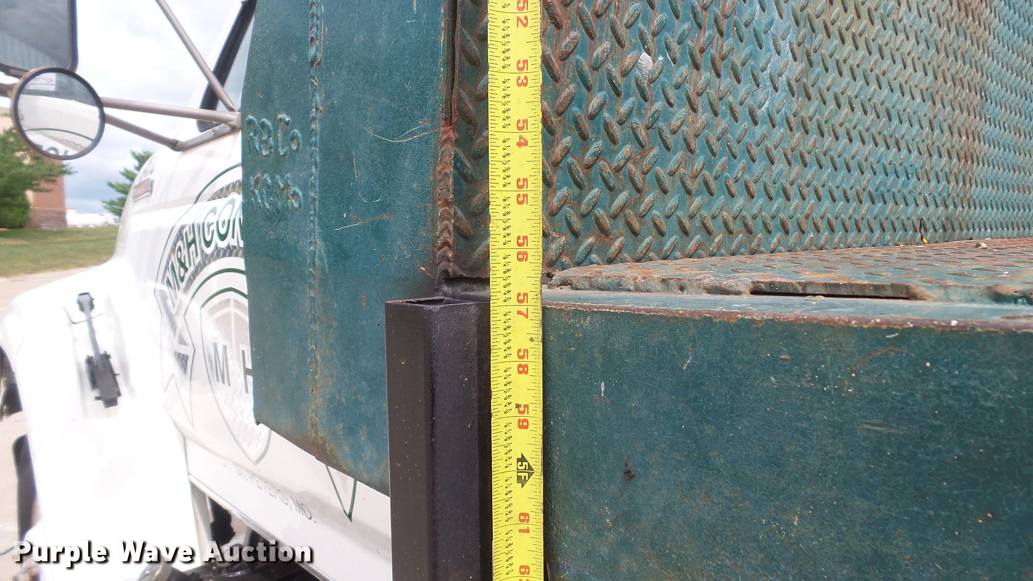 Purple Wave is selling a used Construction Dump Truck in Missouri. This item is a 1995 Ford F700 flat dump bed truck with the following: 67,379 miles on odometer, 7.0L V8 gas engine, Five speed manual transmission, Model FS4205BX, Two speed rear end, Single axle, Heat, AM/FM, PTO, Front tow hooks, 192"L x 95"W steel flatbed, 57" floor height, Dual ram scissor hoist, 13'10" lift height, (4) ratchet tie-downs, Stake side pockets, Rolling tailboard, Single fuel tank, 189" wheelbase, Spring suspension, Hydraulic brakes, 11R22.5 tires, GVWR 24,500 lbs, FAWR 7,000 lbs, RAWR 17,500 lbs, Hydraulic tank leaks, Non-operational radio, Unit# T-510