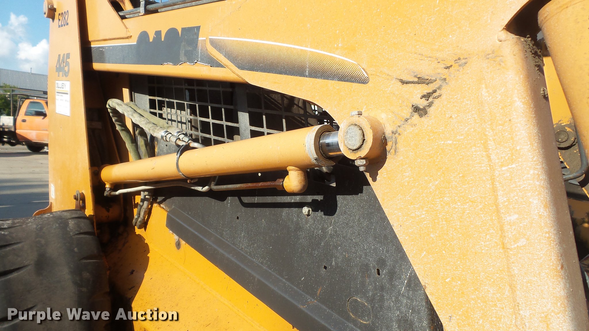 Purple Wave is selling a used Skid Steer Loader in Missouri. This item is a Case 445 skid steer with the following: 2,568 hours on meter, Case 445/M2 4.5L four cylinder diesel engine, 80 HP, Two speed hydrostatic transmission, Open station/canopy, Joystick controls, Front and rear work lights, Manual quick coupler, Auxiliary hydraulics, 12-16.5 tires, Non-operational unit, Parts missing, Serial N5M401767, Unit# E282