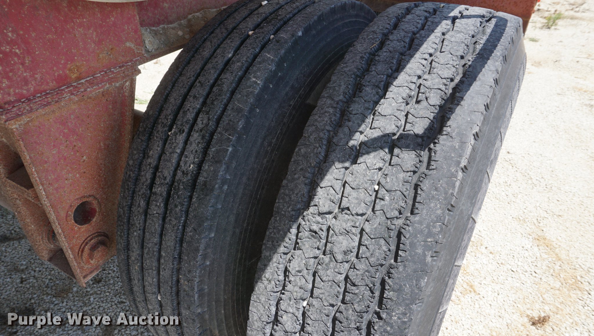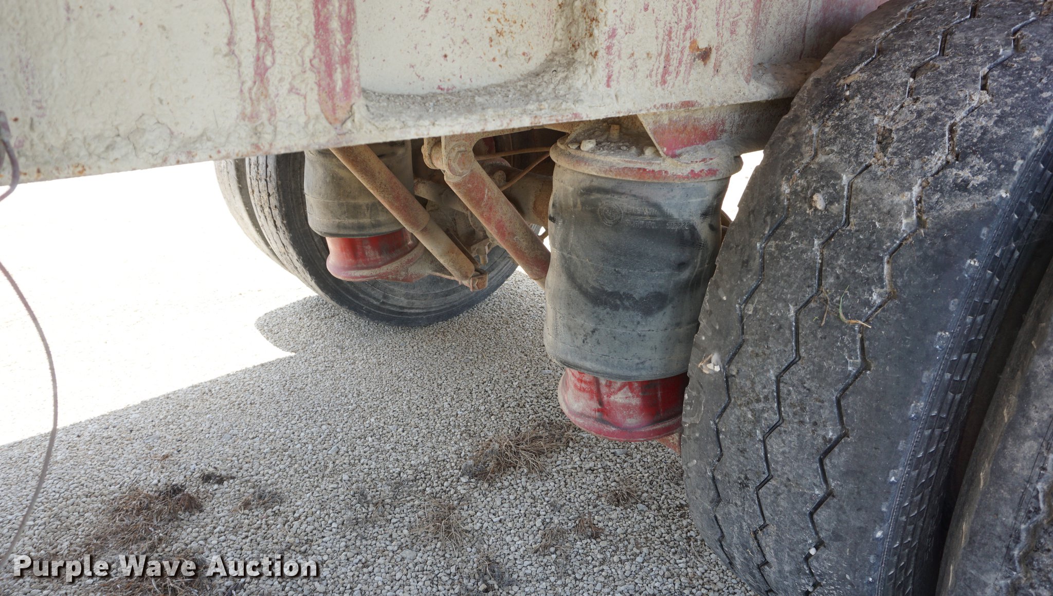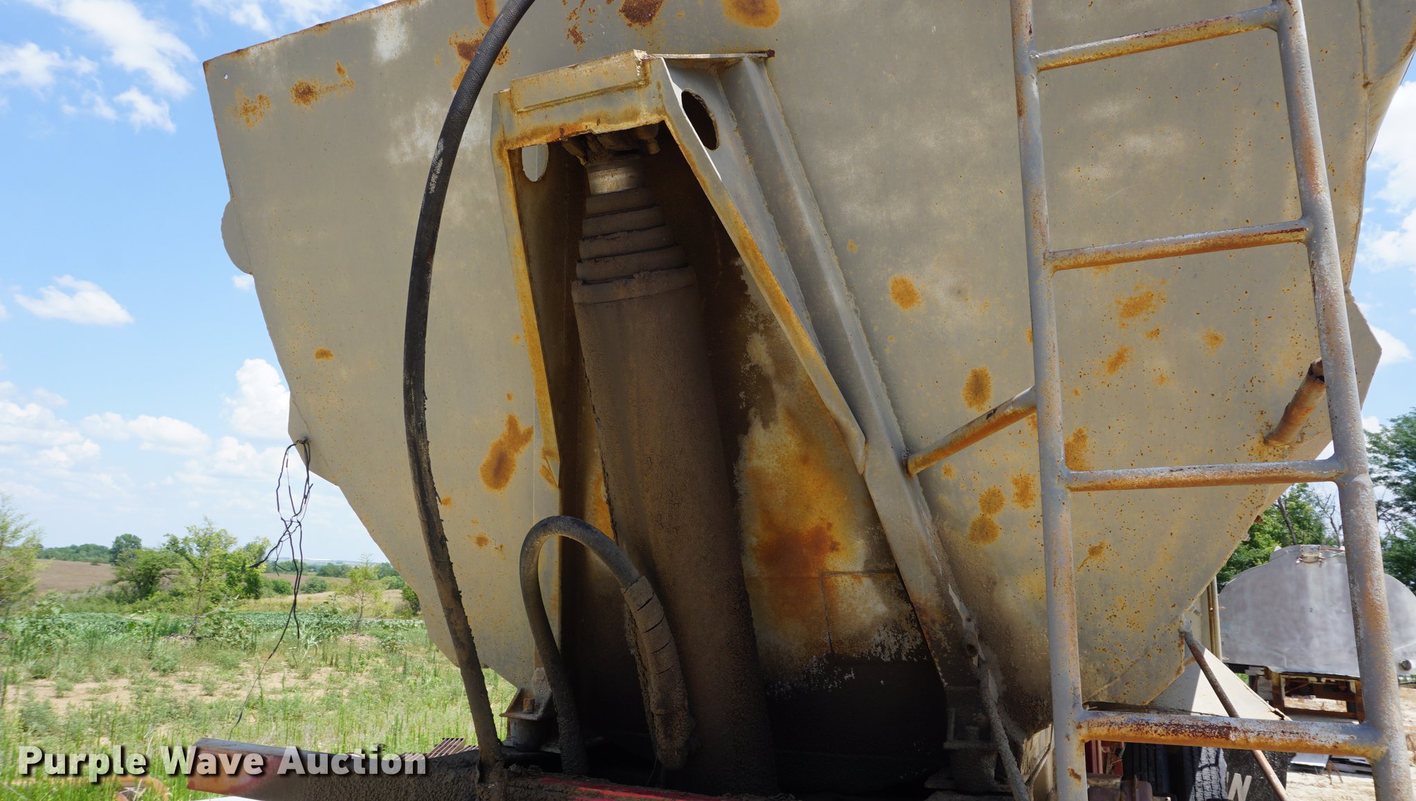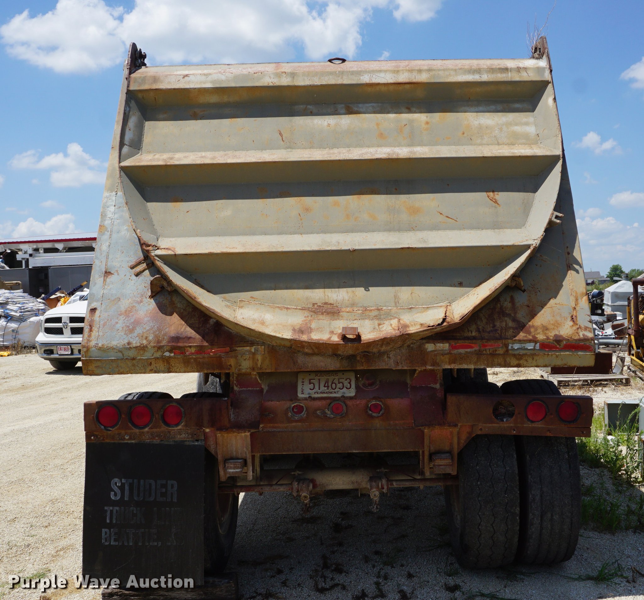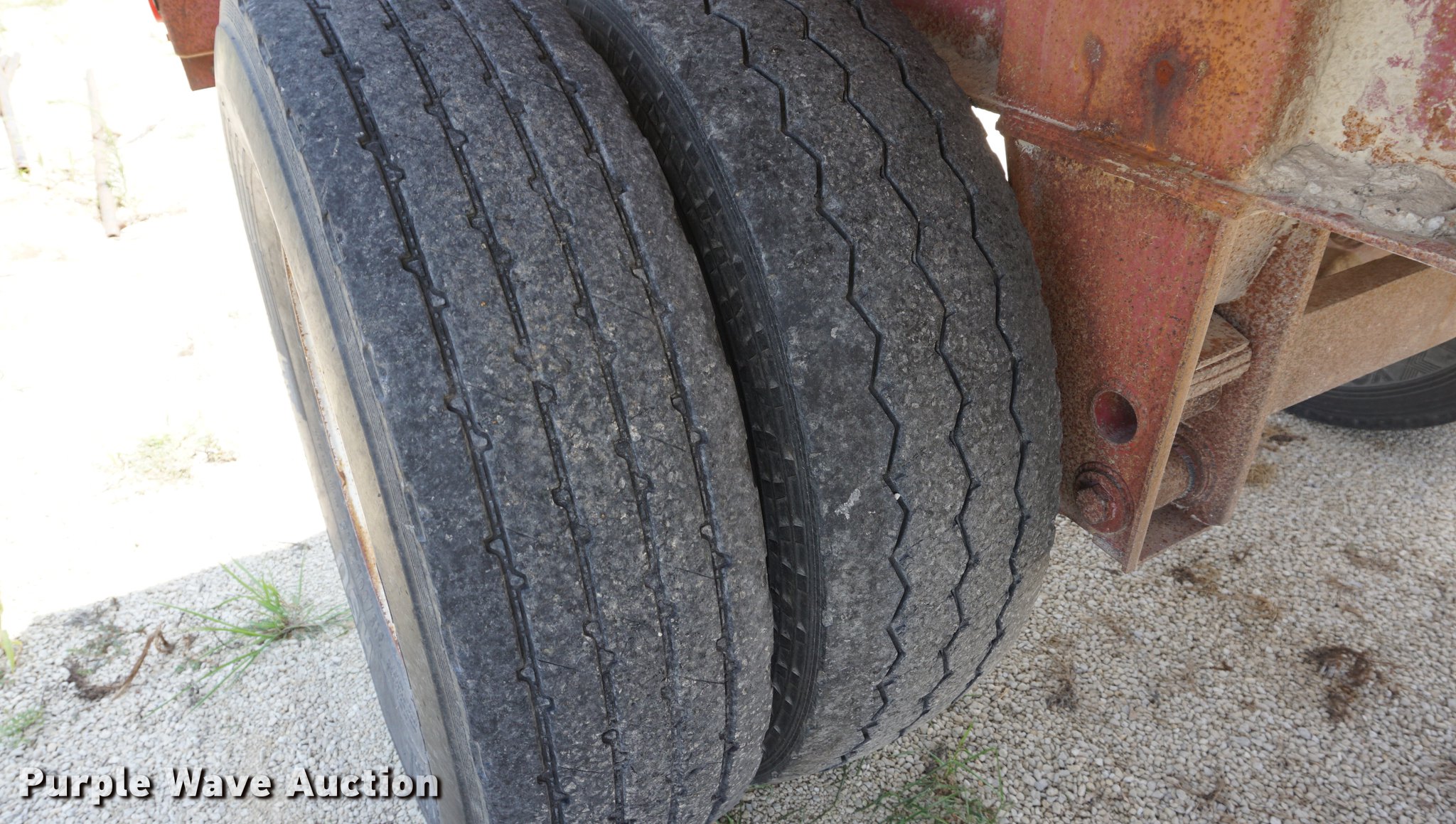 Purple Wave is selling a used End Dump Rock Trailer in Kansas. This item is a 1985 Raylan end dump trailer with the following: 20'L x 102"W, Steel barrel bed, Single cylinder hoist, Air operated end gate, Poly liner, Fifth wheel plate, Dual leg landing gear, Air suspension, Air brakes, Spread axle, 315/80R22.5 tires