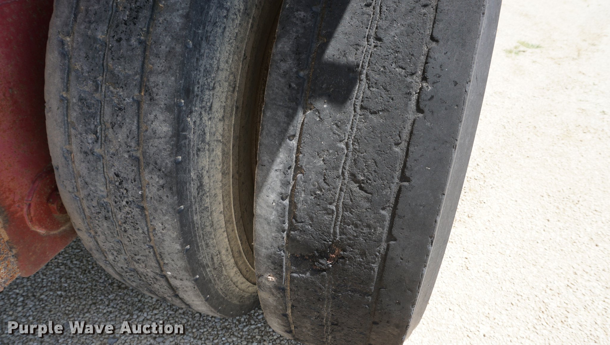 1985 Raylan end dump trailer. 20'L x 102"W, Steel barrel bed, Single cylinder hoist, Air operated end gate, Poly liner, Fifth wheel plate, Dual leg landing gear, Air suspension, Air brakes, Spread axle, 315/80R22.5 tires. Kansas title. Title distribution may be delayed up to 14 days from verification of funds. 2R9A3S7B2F1011993. J-Six. Corning, KS 66417