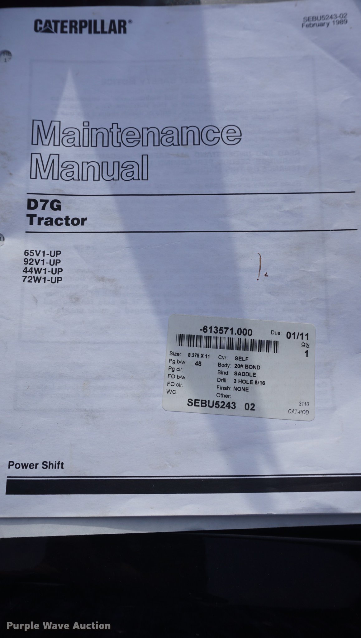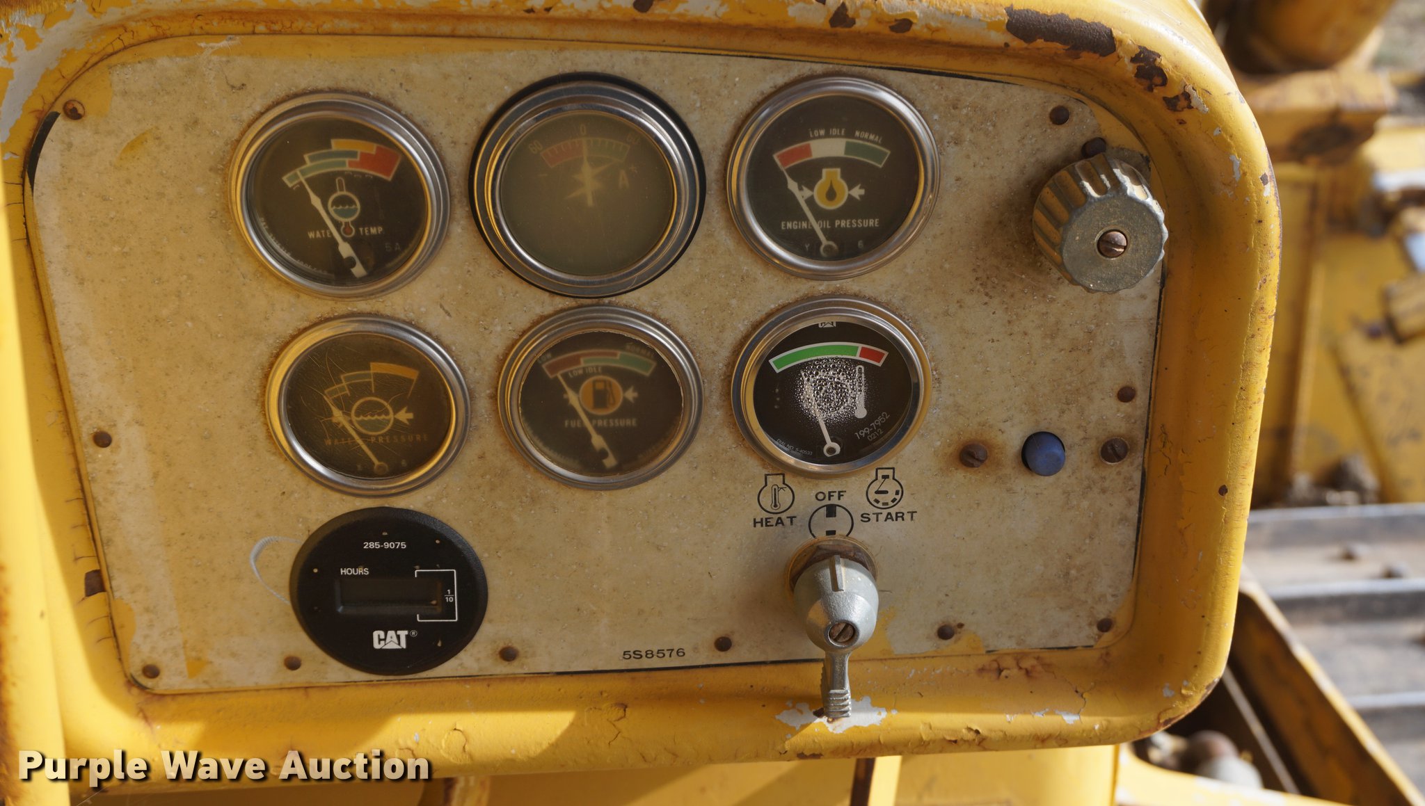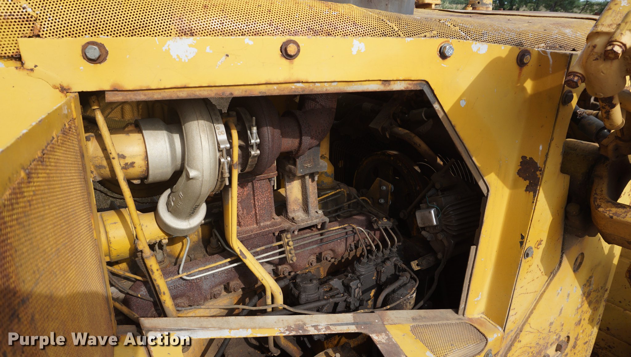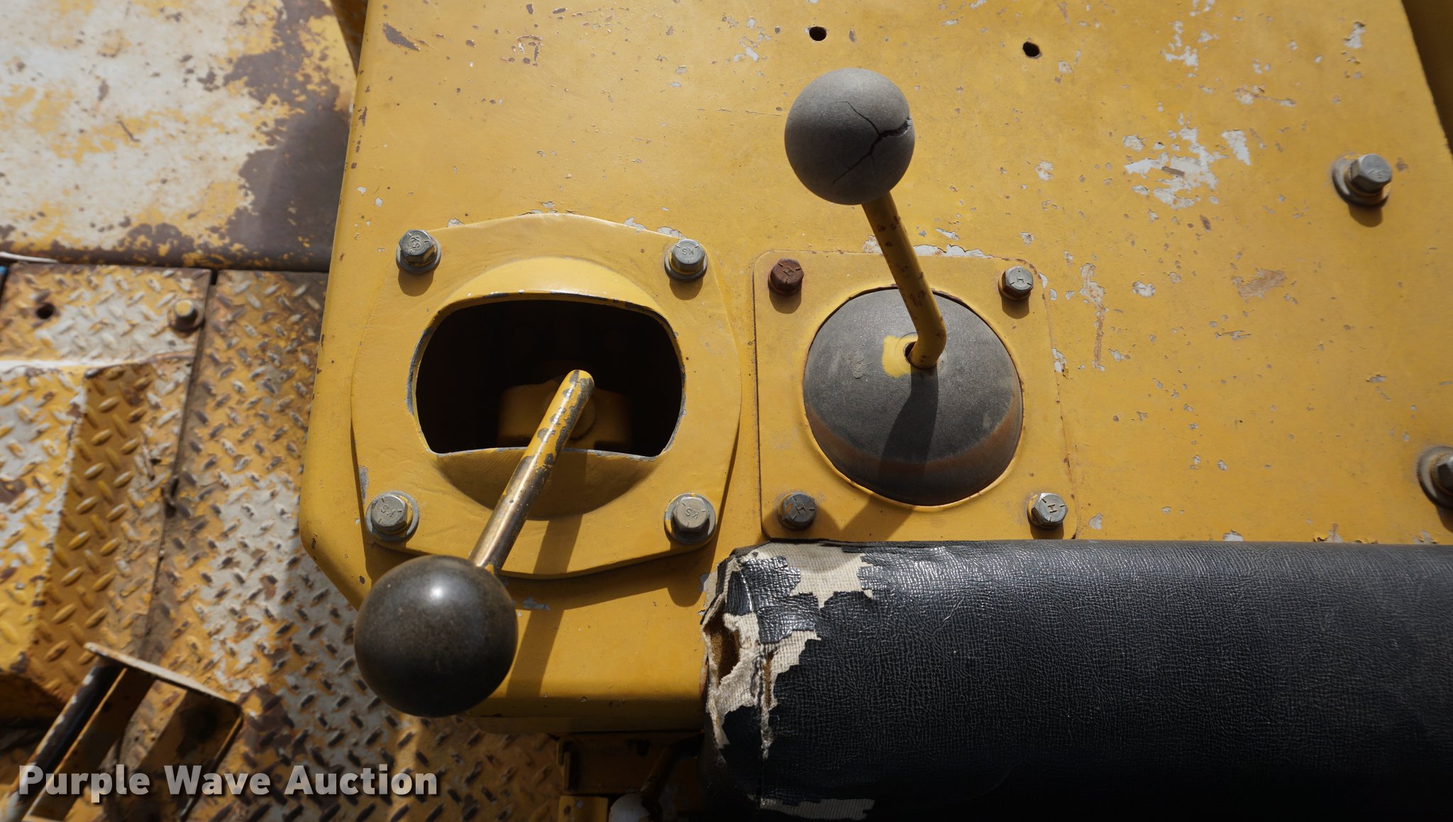 Purple Wave is selling a used Crawler Dozer in Kansas. This item is a 1975 Caterpillar D7G dozer with the following: 421 hours on meter, Caterpillar 3306 10.5L six cylinder turbo diesel engine, 200 HP, Powershift transmission, 3F-3R gears, Canopy, Clutch brake steering, Sweeps, 11.5'W straight dozer blade, Ripper, (1) shanks, Six bottom rollers, 24"W single grouser track pads, Non-operational left side track tightener, Transmission rebuilt 421 hours ago in 06/2012, Serial 92V902