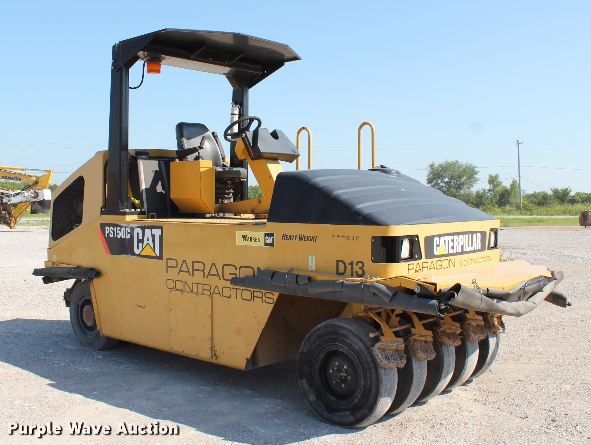 2010 Caterpillar PS150C pneumatic roller. 2,003 hours on meter, Caterpillar 4.4L six cylinder turbo diesel engine, Hydrostatic transmission, OROPS canopy, Tilt steering wheel, Vandal cover, Work lights, Dust curtains, 7.50R15 tires, Serial CATPS150TFPS00946, Unit# D13. Paragon Contractors LLC - Open inspection Aug. 29. 2108 N 129th E Ave. Tulsa, OK 74116