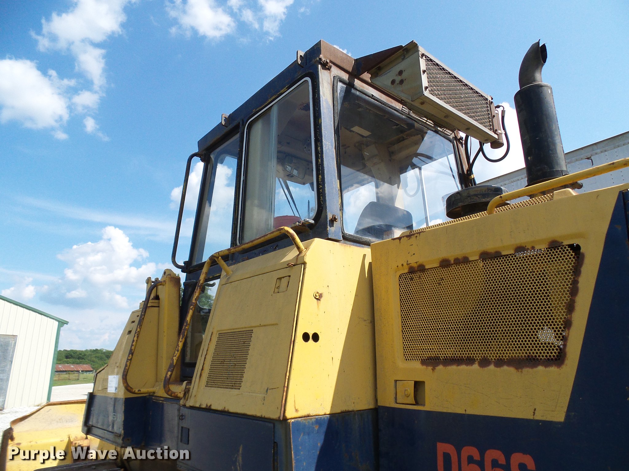 Komatsu D66S-1 track loader. 3,747 hours on meter, Six cylinder turbo diesel engine, Hydrostatic transmission, Enclosed cab, Suspension seat, Front work lights, 8'W bucket Weld-on cutting edge, (8) bolt-on teeth, (6) bottom rollers, 20"W single grouser track pads, Final drives inoperable on right side, Serial 1516. Vitt Truck and Auto Repair. 24511 US-24. Paris, MO 65275