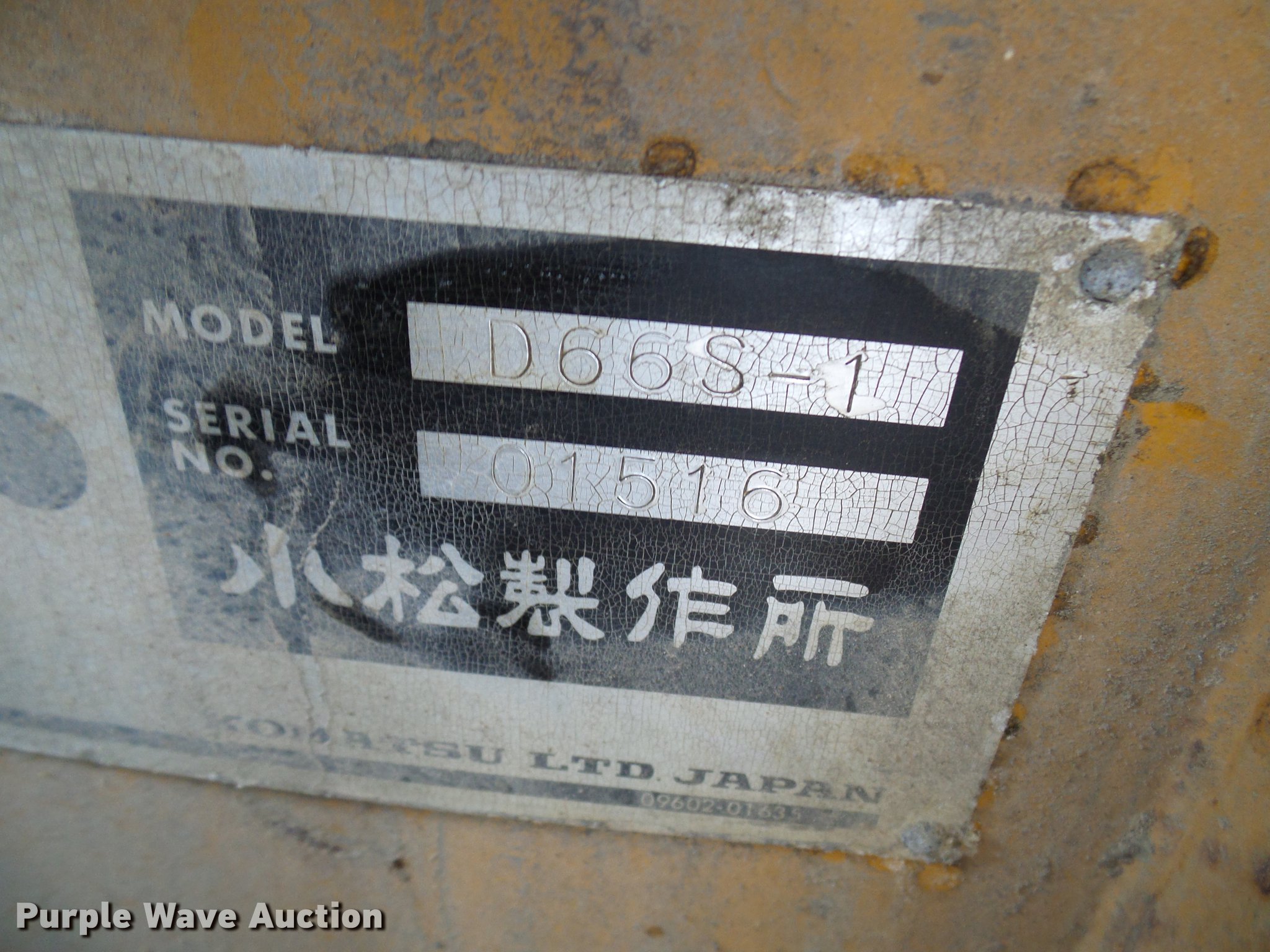 Purple Wave is selling a used Crawler Loader in Missouri. This item is a Komatsu D66S-1 track loader with the following: 3,747 hours on meter, Six cylinder turbo diesel engine, Hydrostatic transmission, Enclosed cab, Suspension seat, Front work lights, 8'W bucket, Weld-on cutting edge, (8) bolt-on teeth, (6) bottom rollers, 20"W single grouser track pads, Final drives inoperable on right side, Serial 1516