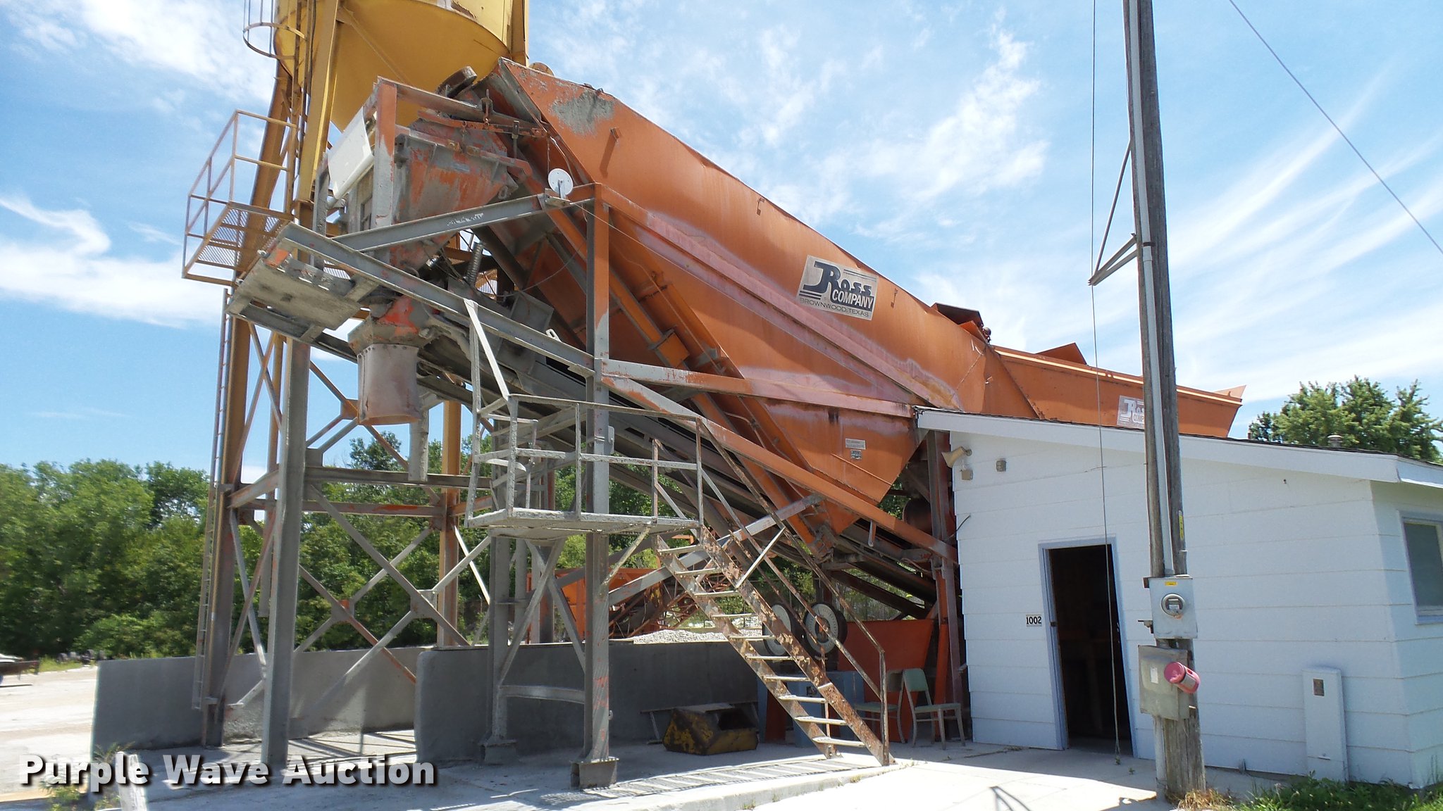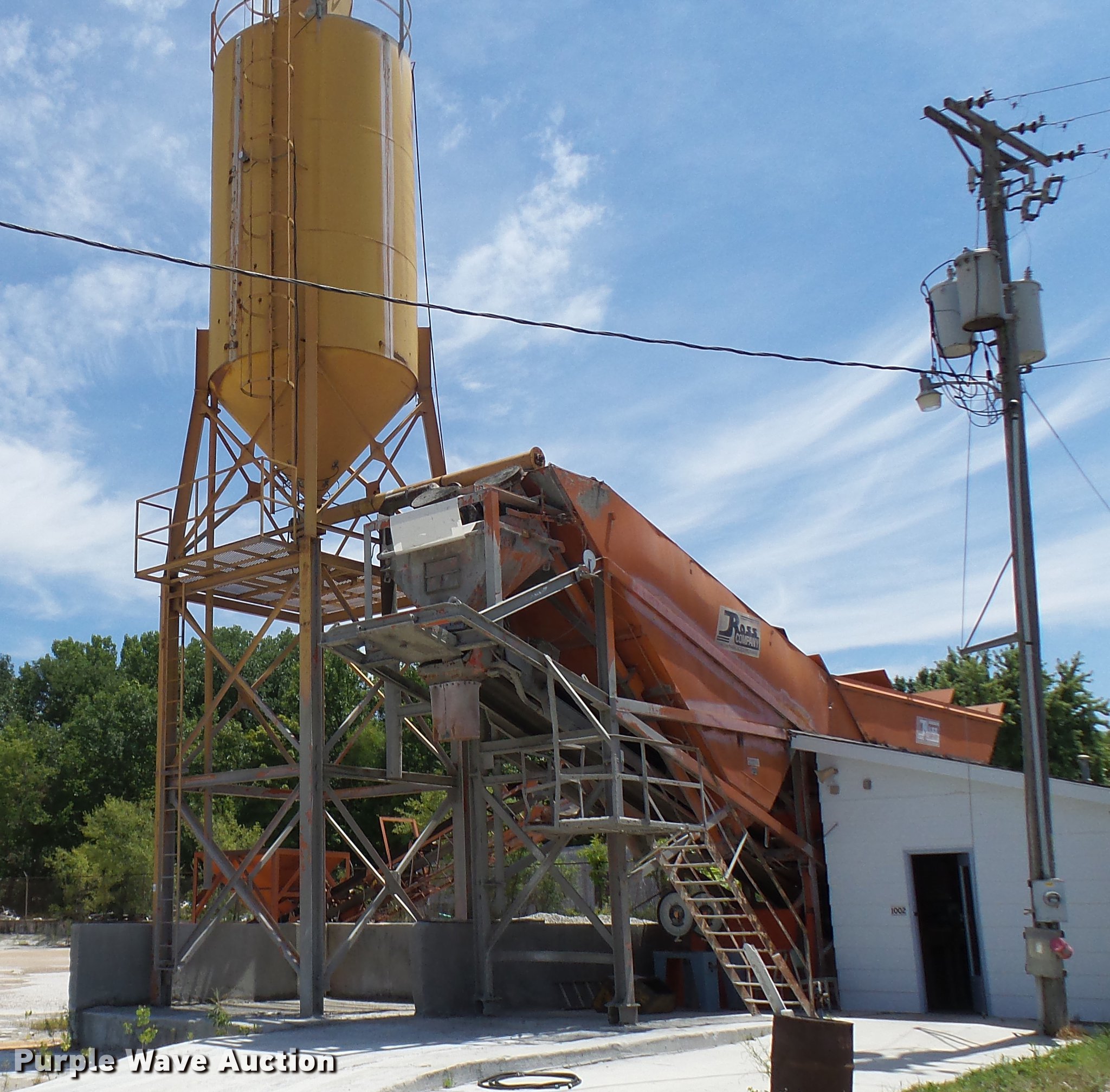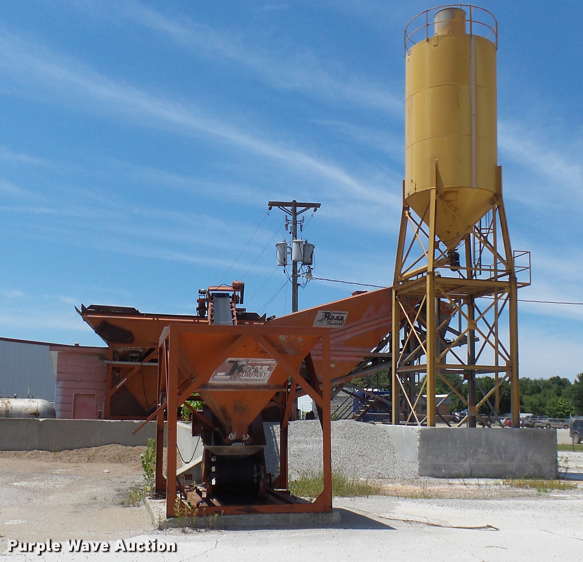 Purple Wave is selling a used Concrete Plant in Missouri. This item is a 1979 Ross Rustler ready mix plant with the following: 450 barrel silo, Stand, Radial stacker conveyors, 220V, Three phase, (4) scales, (2) attached, (2) unattached, 1,000 gallon propane tank, Has been converted to hot water tank, Ross control box, Five yard batch capacity, Operational when last used in 2017