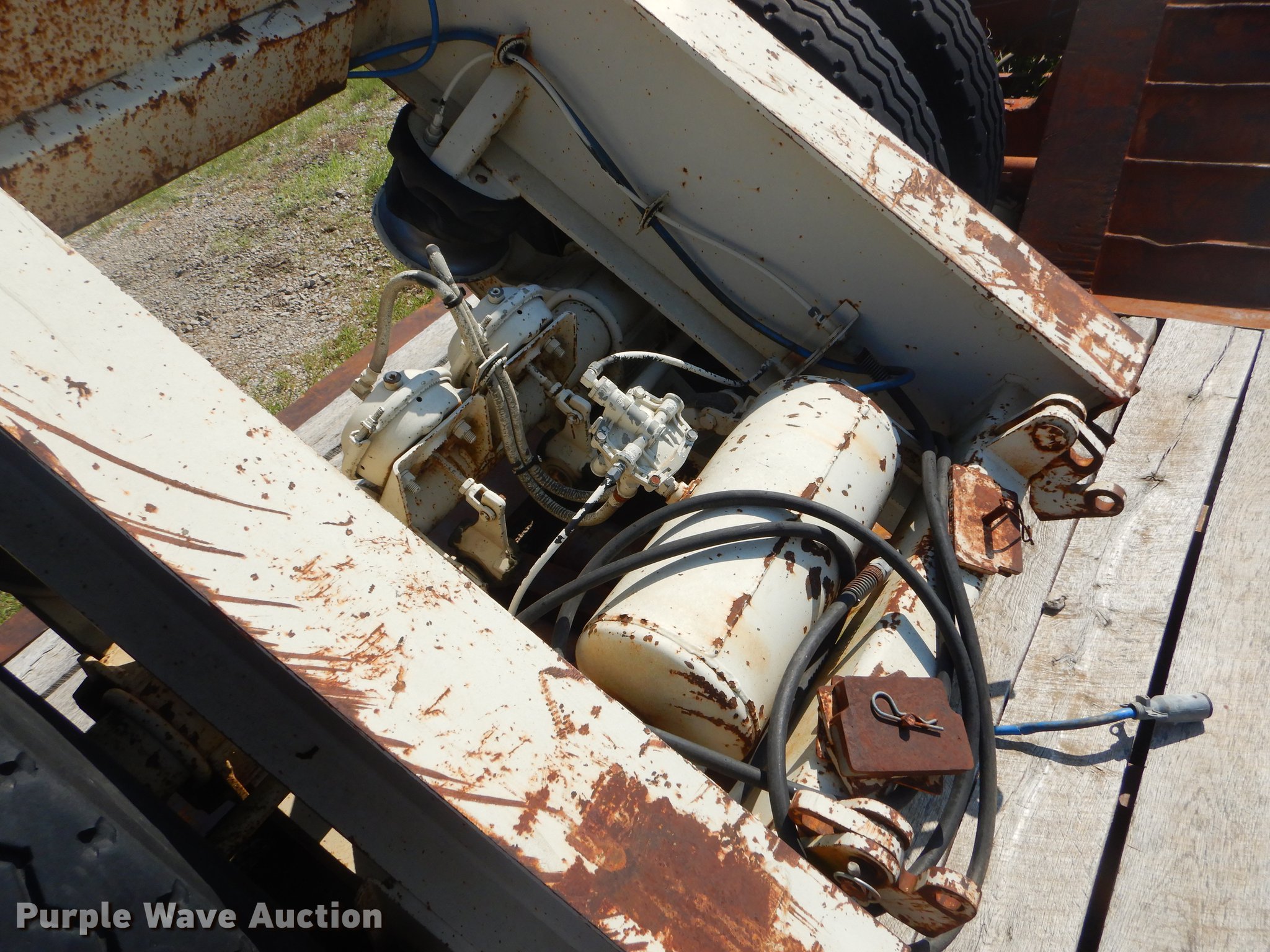 Purple Wave is selling a used Equip. Trailer in Oklahoma. This item is a 1994 Trail King TK120HDG-553 low boy equipment trailer with the following: 56' overall length, 28'L x 102"W main steel and wood deck, 12'L rear deck, 24" floor height, D-ring tie downs, Detachable neck, Manual hydraulic controls, Fifth wheel plate, Air suspension, Air brakes, Triple axle, Detachable tag axle, Steel wheels, 11R22.5 tires, GVWR 148,040 lbs